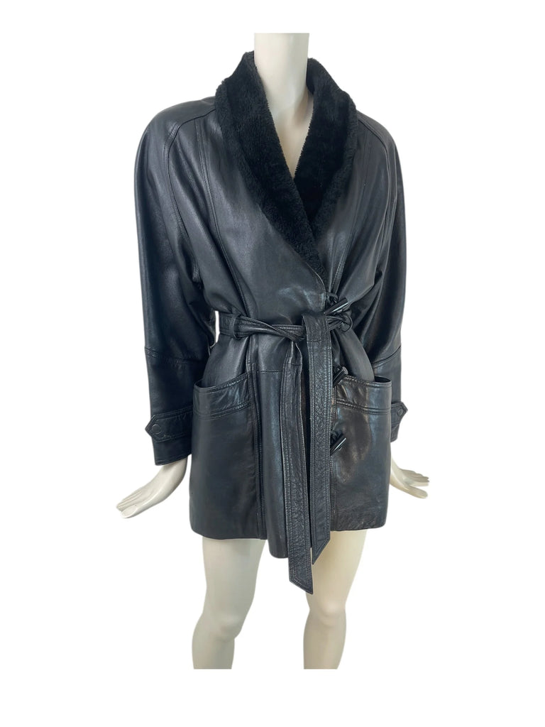Vintage 80s/90s Leather & Shearling Belted Jacket
