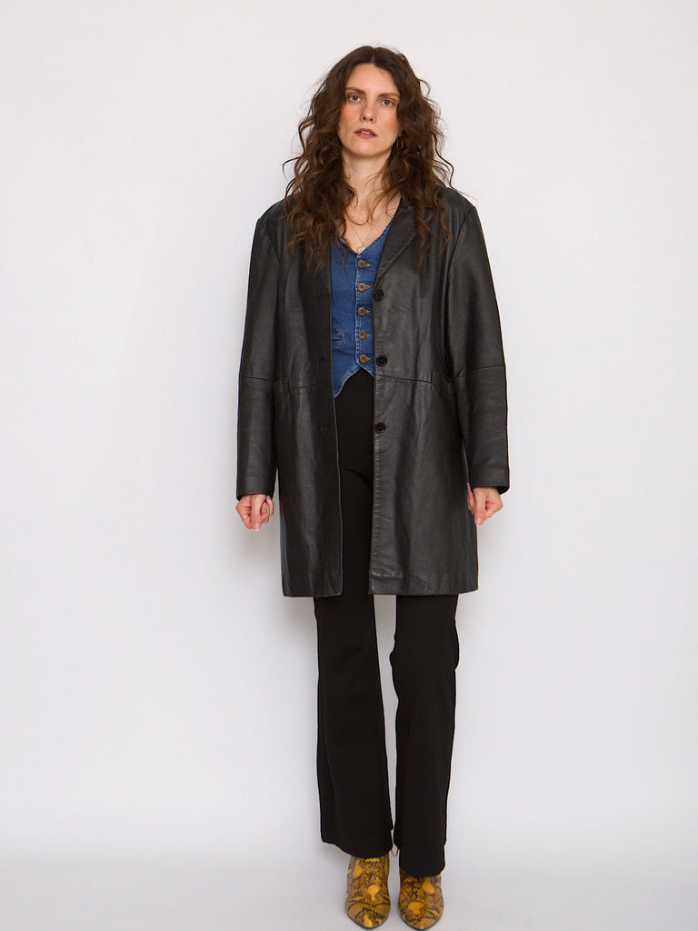 Vintage 1980s Concealed Placket Leather Jacket - L/XL
