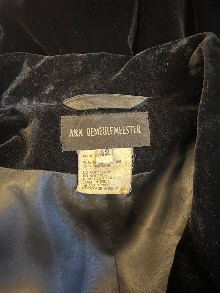 Ann Demeulemeester graduated from the Royal Academy of Fine Arts in Antwerp in 1981. In 1986, Demeulemeester and six fellow Belgian graduates - including Dries Van Noten - showcased their collections in London. This group went on to be known as the Antwerp Six, known in fashion circles for their deconstructivist tailoring and avant-garde aesthetics; their work is highly collectable from this period.