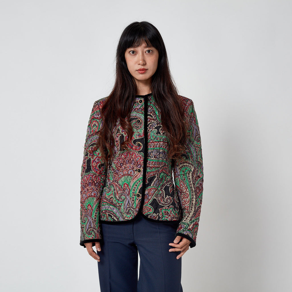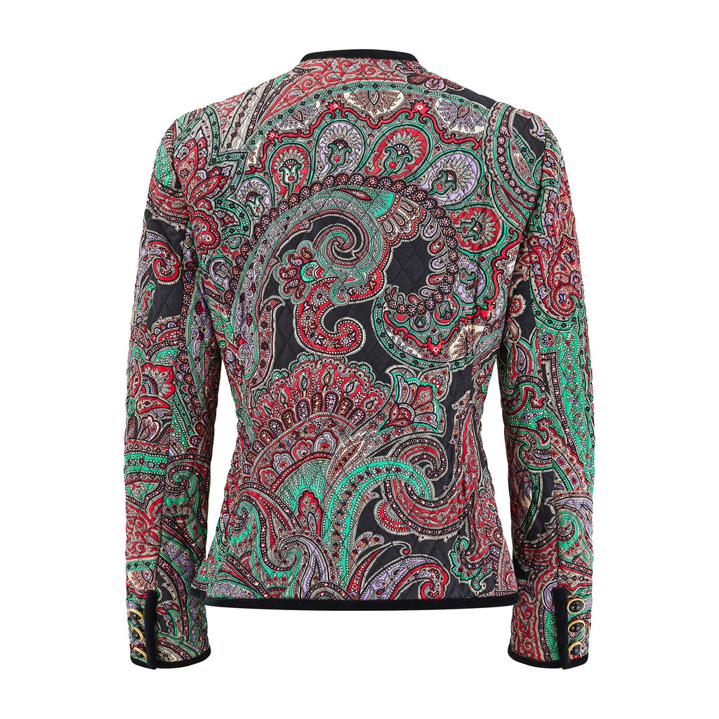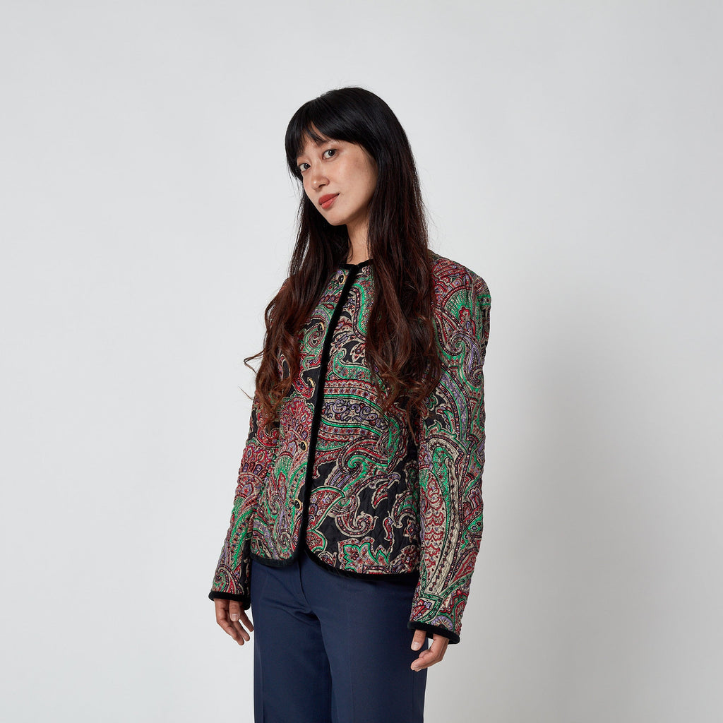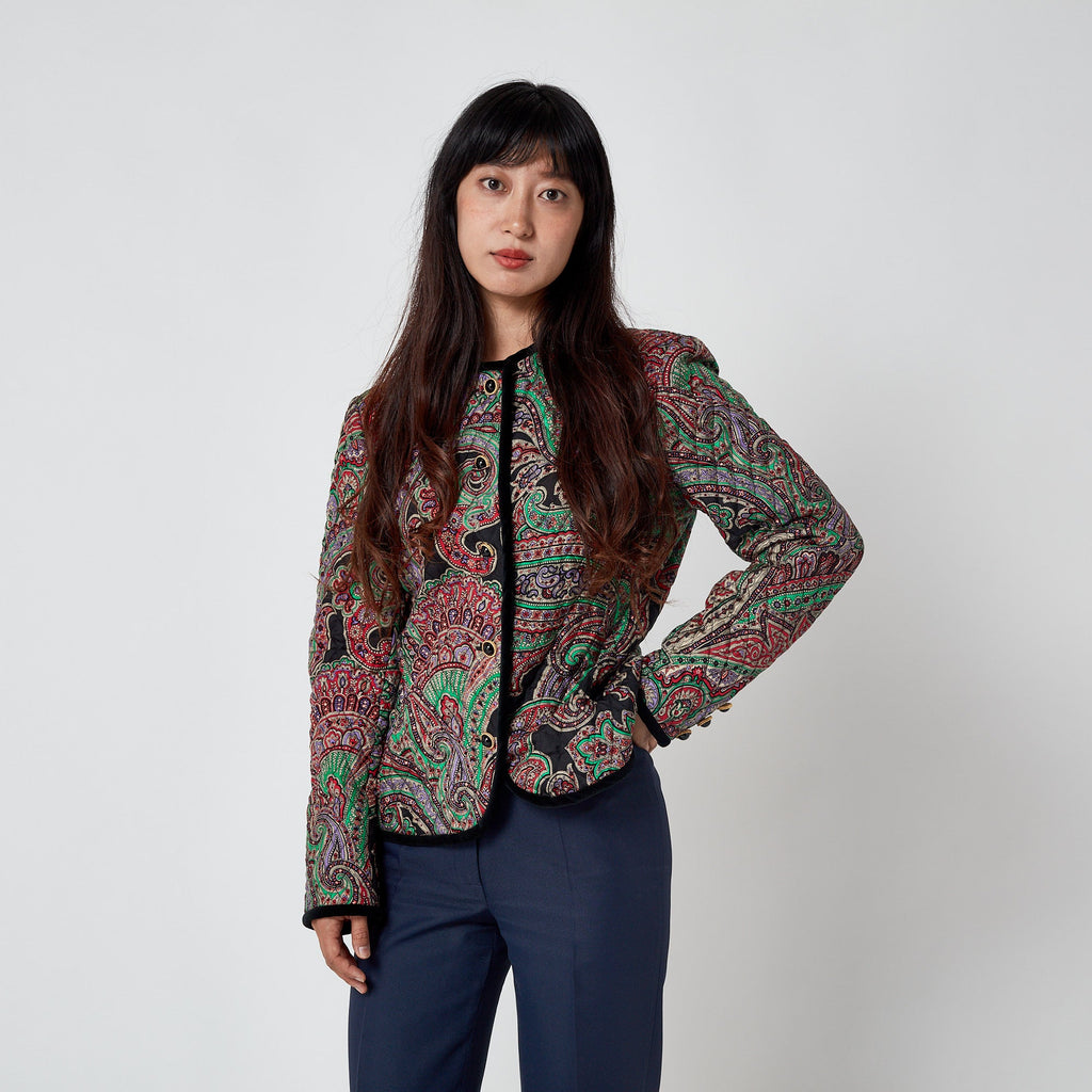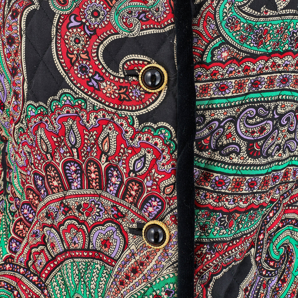 1990s Carlisle Silk Paisley Quilted Jacket with Velvet Trim