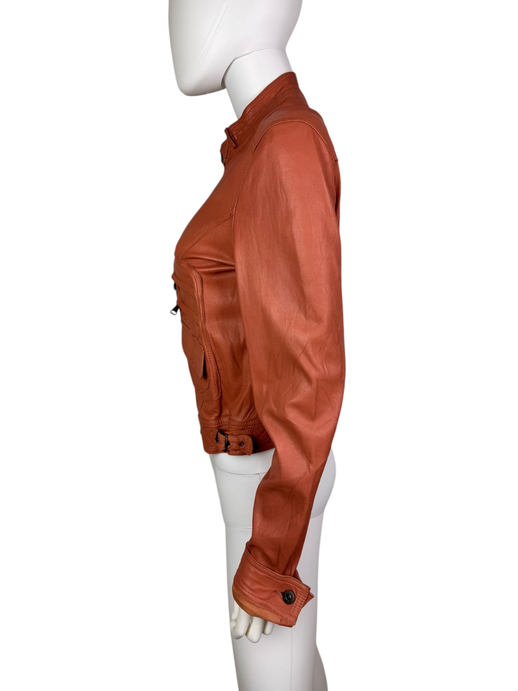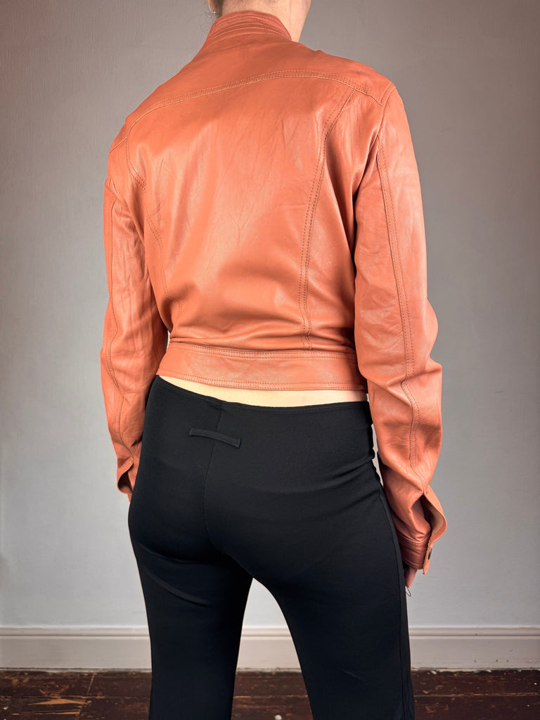 🐥 Condition is gold - no major signs of wear other than some light scuffing to all the edges and a few small spot marks as shown. Armpits clean and stain-free inside and out. Zip functional. 100% leather, unlined. Dry clean only.