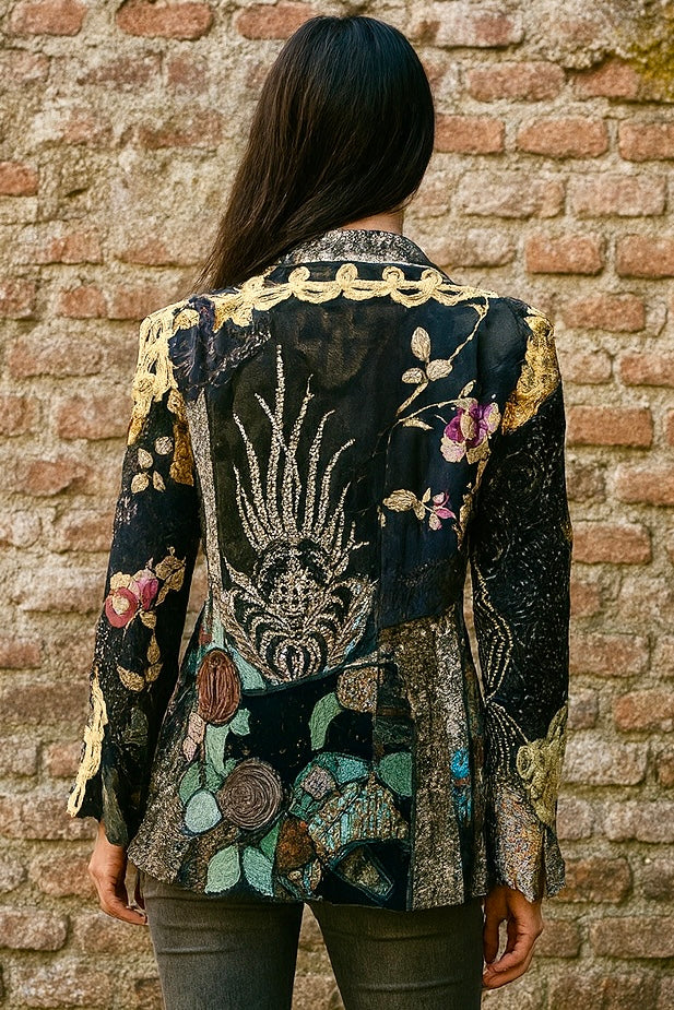 Eros, reworked patchwork and beaded 70s single breasted blazer