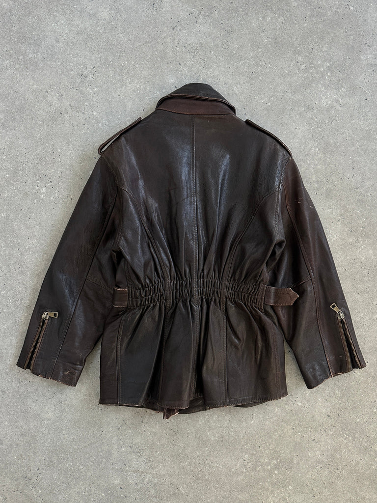 Italian Vintage 1990s Aged Belted Leather Jacket - M