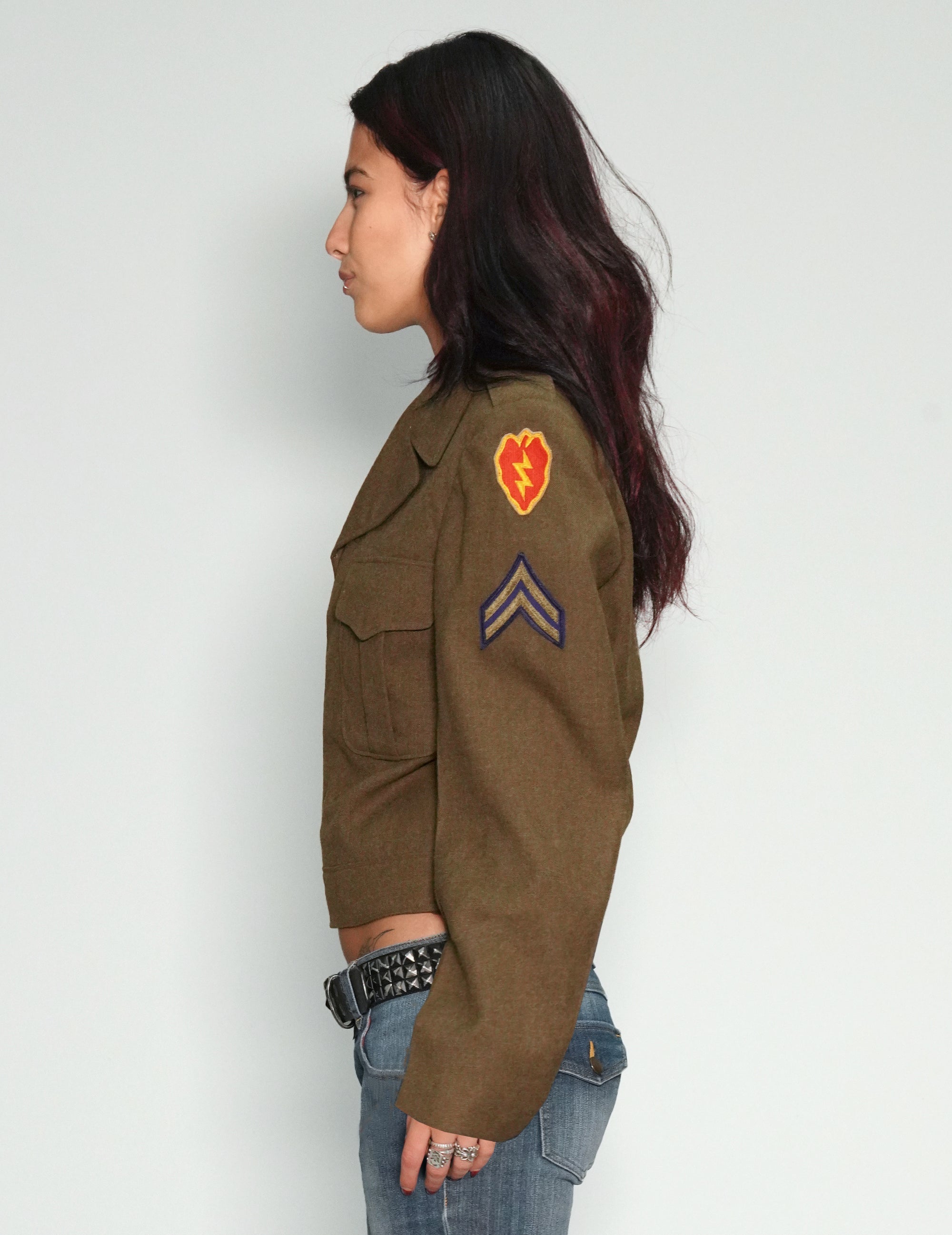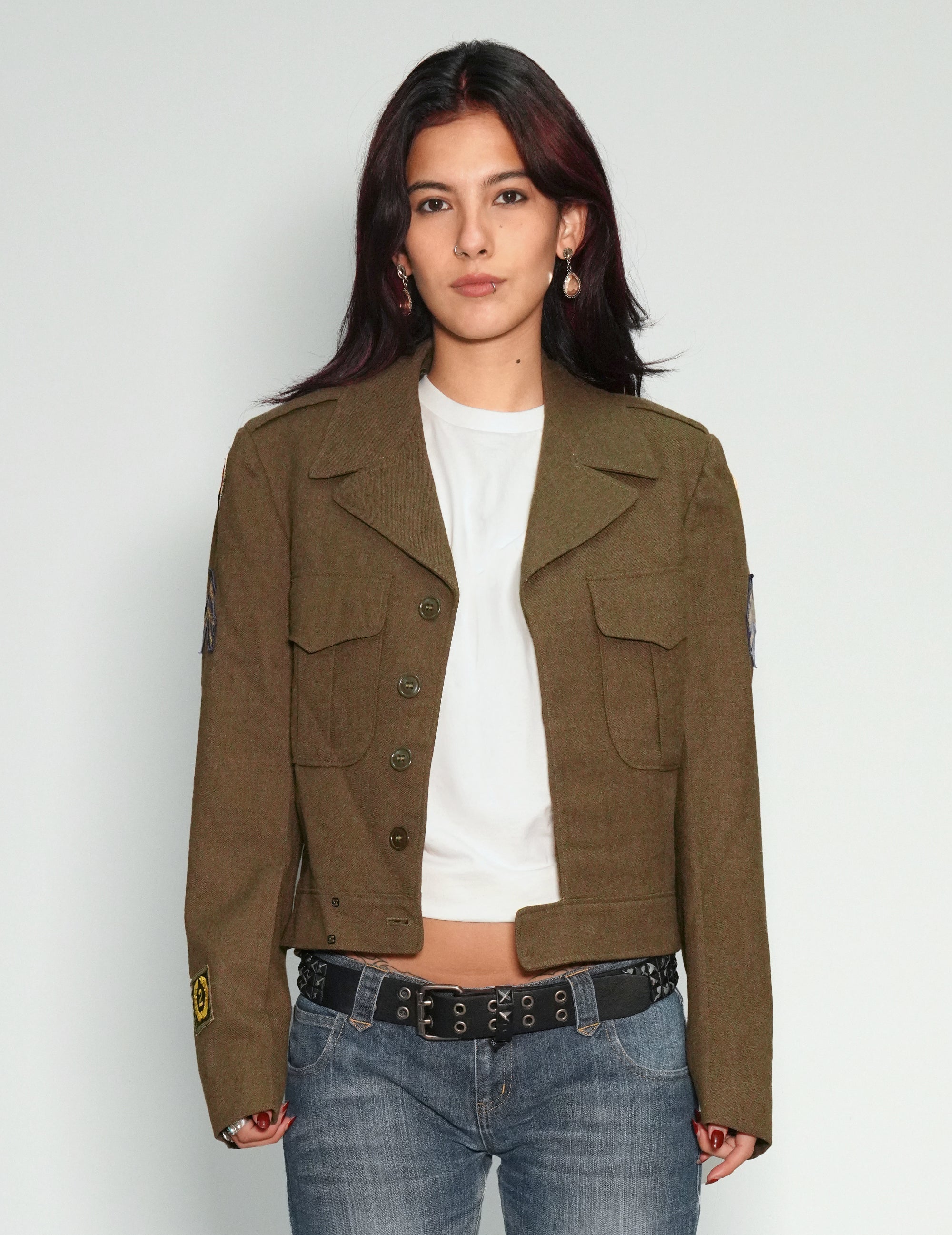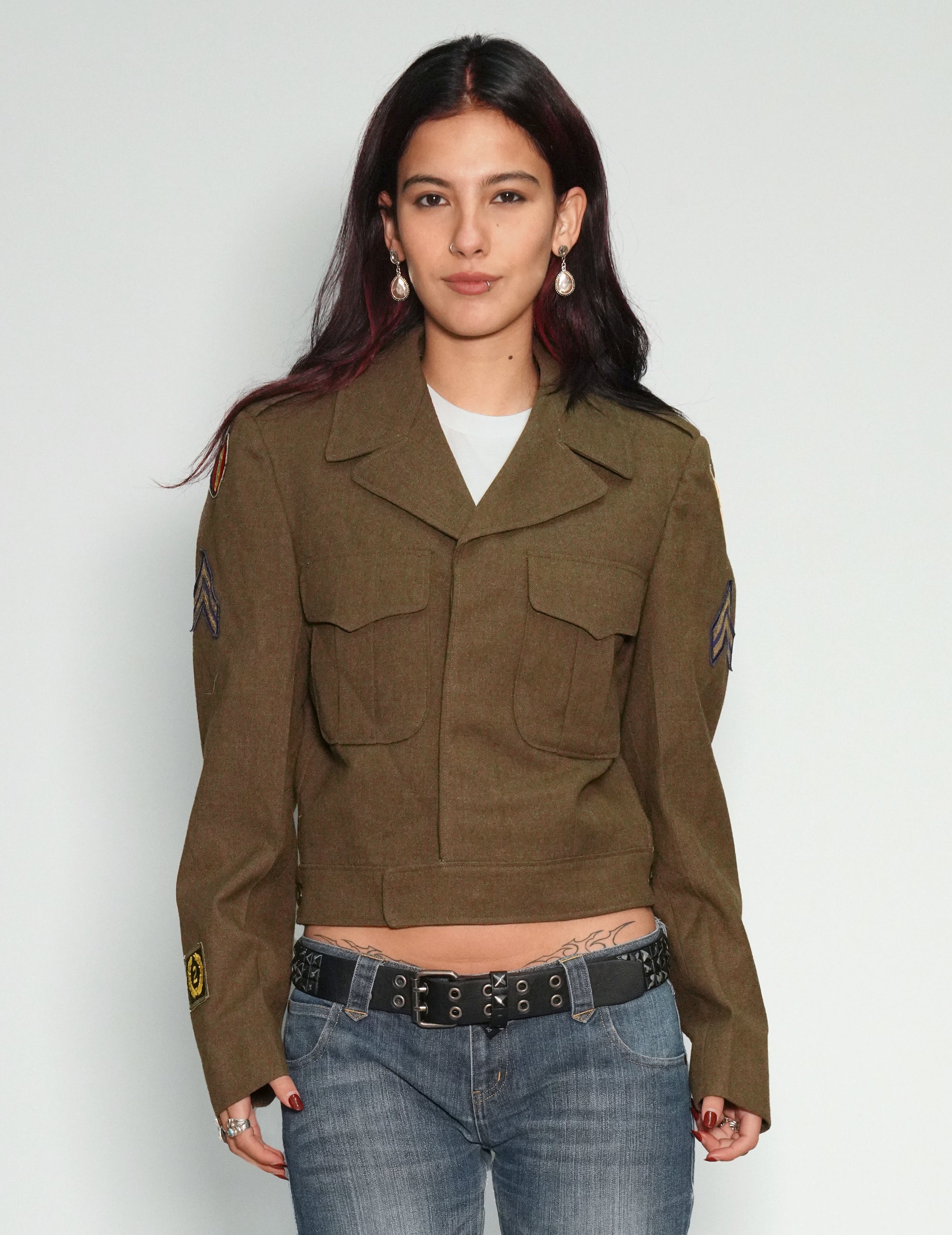 Vintage super rare WW2 Ike Eisenhower Wool Field Jacket, US Army. 100% Wool. Features button fastened front, flap breast pockets and inside breast pockets.