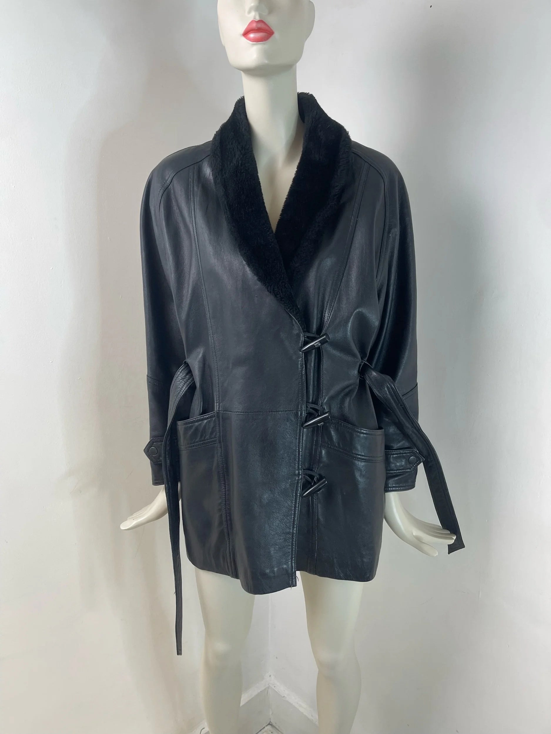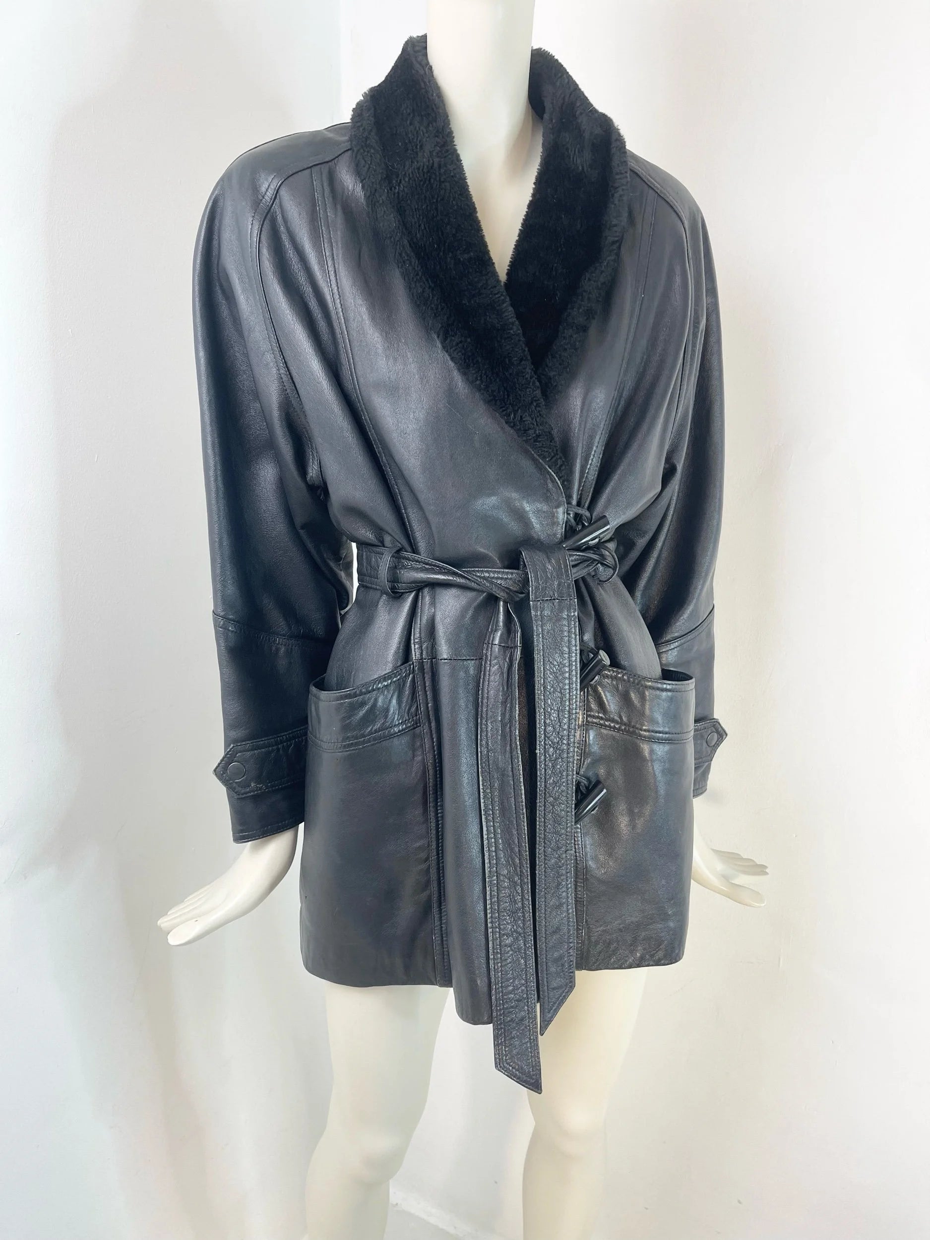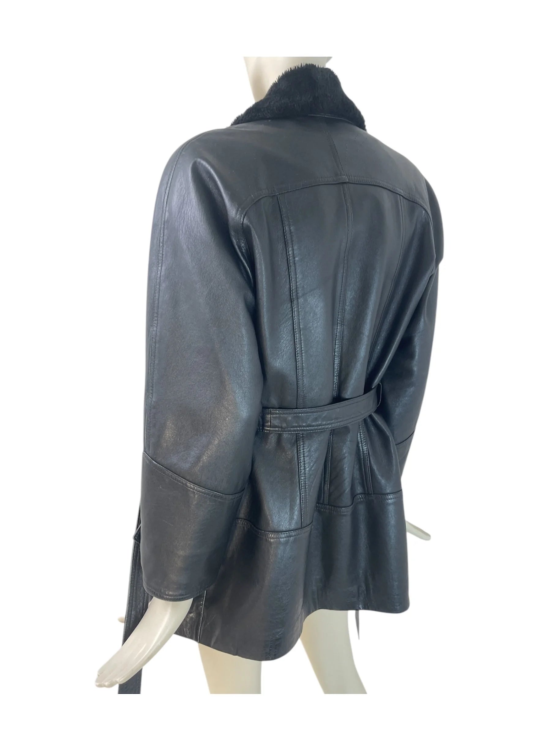 Vintage 80s/90s Leather & Shearling Belted Jacket