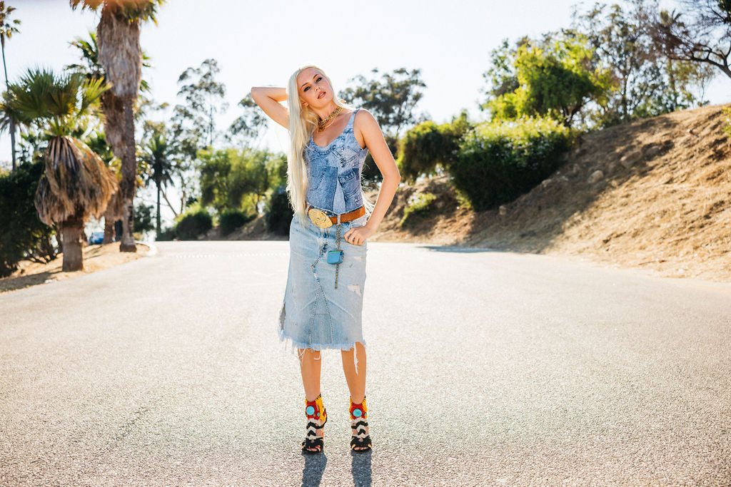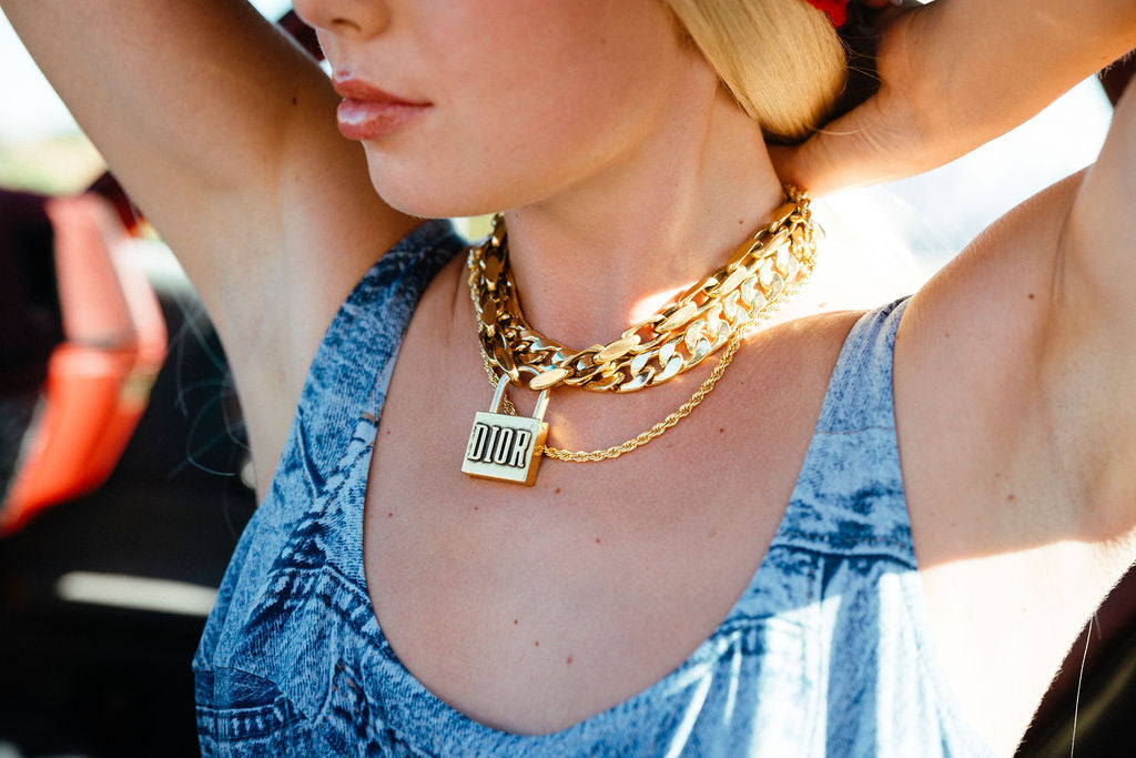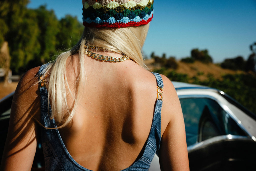 This archival piece from Dior’s Y2K era, designed by John Galliano. This one-piece swimsuit features a trompe l’oeil denim print, gold-tone “CD” hardware at the straps, and signature logo detailing. Can be styled as a bodysuit or swimwear—either way, it’s peak 2000s Galliano energy.
