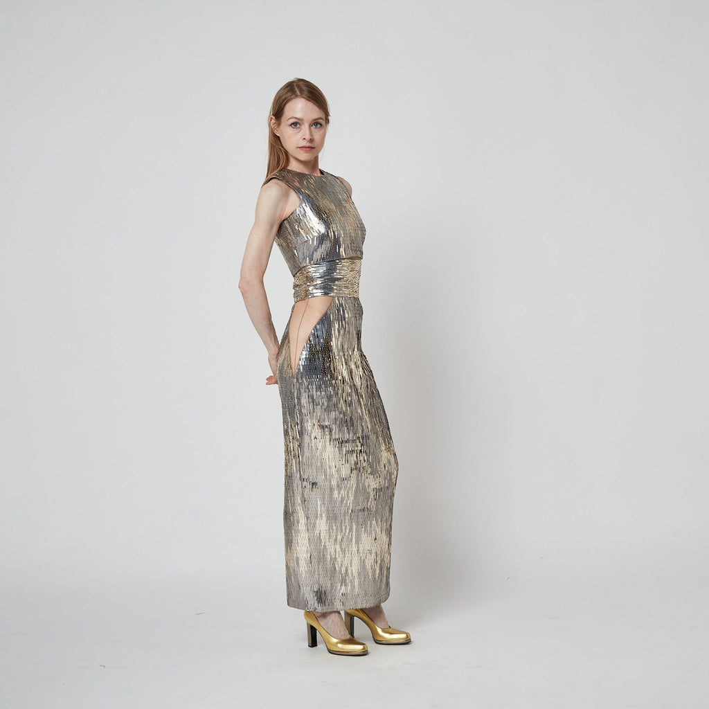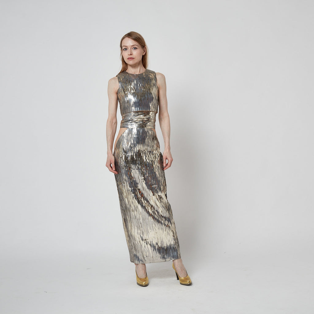 2016 Julien Macdonald Runway Silver and Gold Paillette Top and Skirt