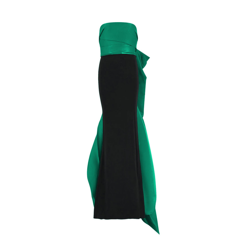 2015 Lanvin Emerald Green and Black Evening Dress with Train