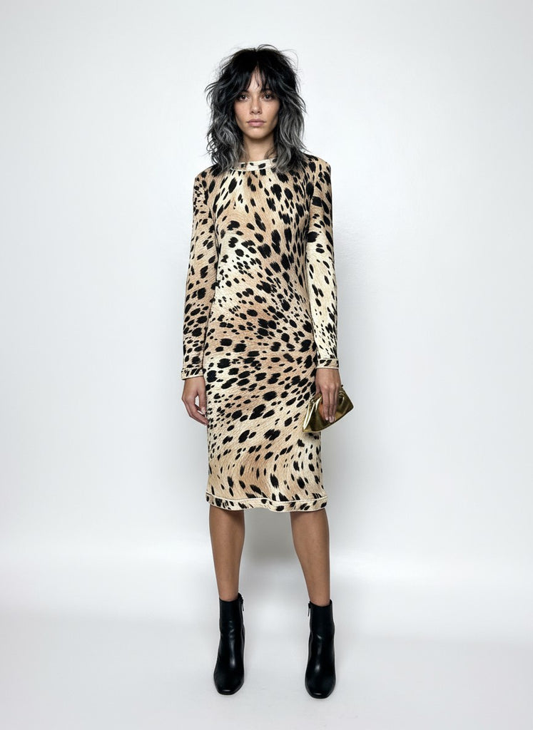 Original 1970's Vintage Leonard - Paris 100% Wool Leopard Print Dress UK 12 - 14