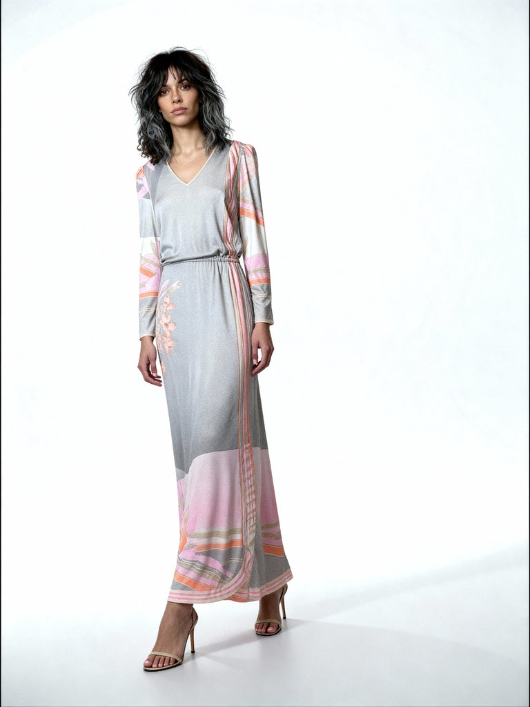 1970's Original Vintage Grey Leonard Floral Maxi Dress UK 10 -12