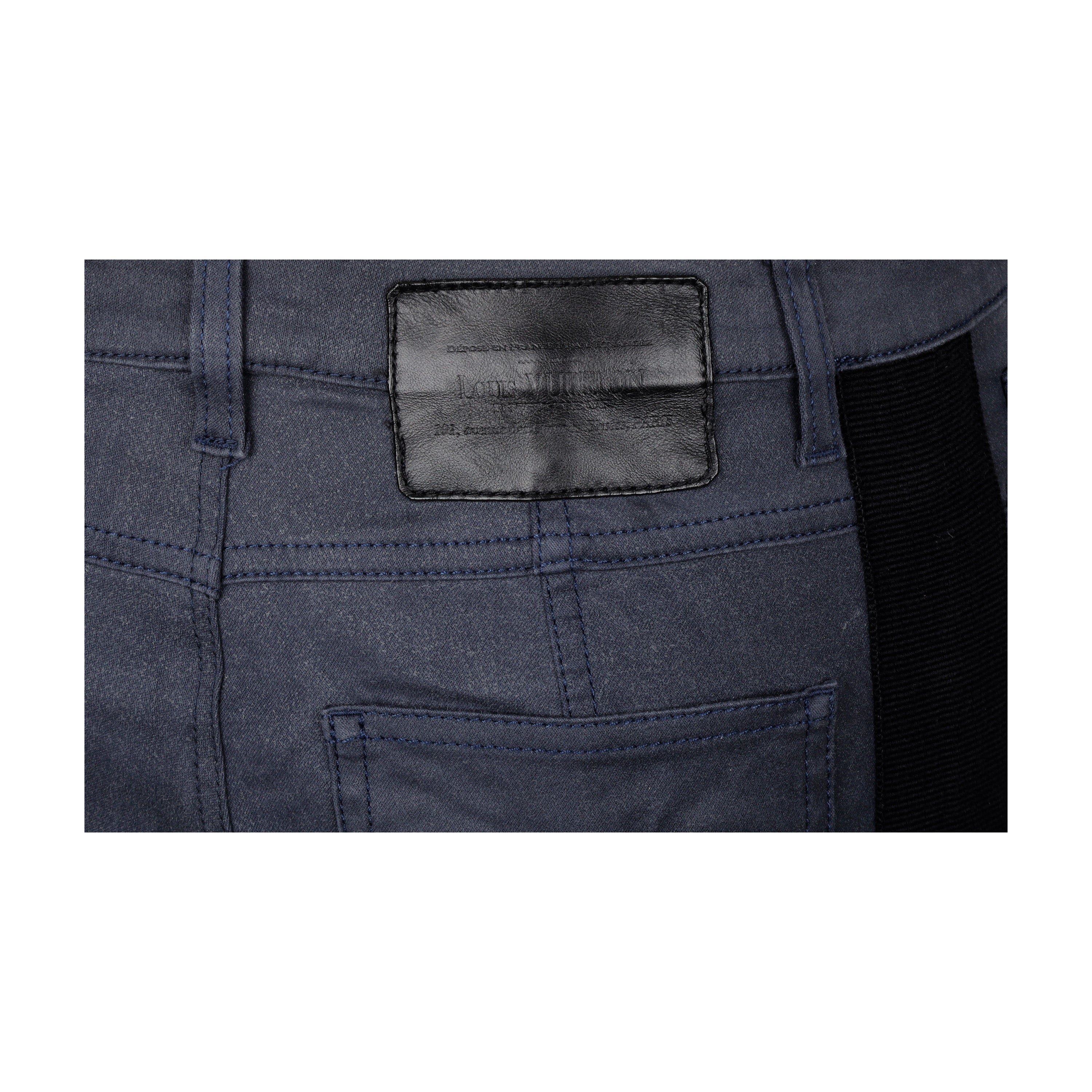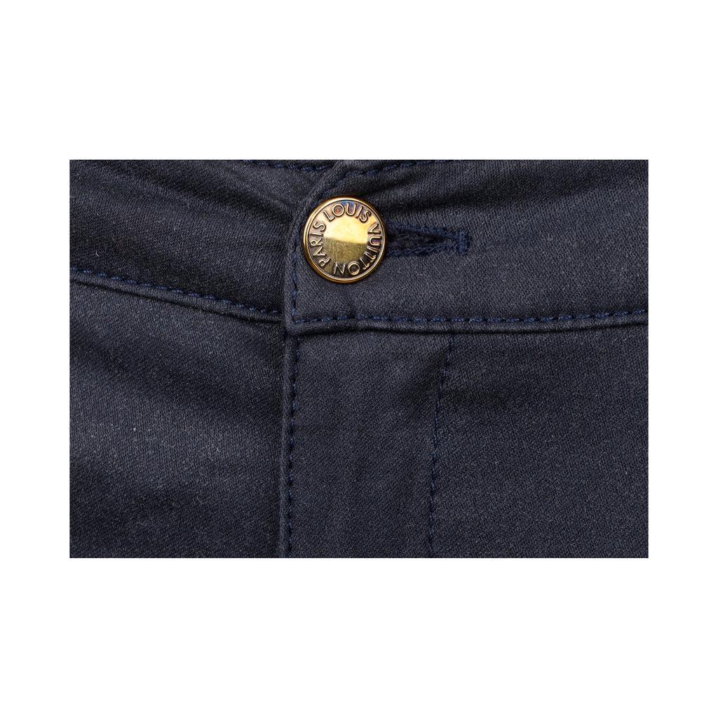 The Louis Vuitton Jeans with Black Stripe consists of a black panel on both sides of the pant with branded flair being highlighted by the Louis Vuitton Paris engraved on the buttons and the black patch stitched on the back embossed with the brand logo. Offering just the right amount of stretch, these mid-rise jeans provide a perfect fit and lasting comfort.