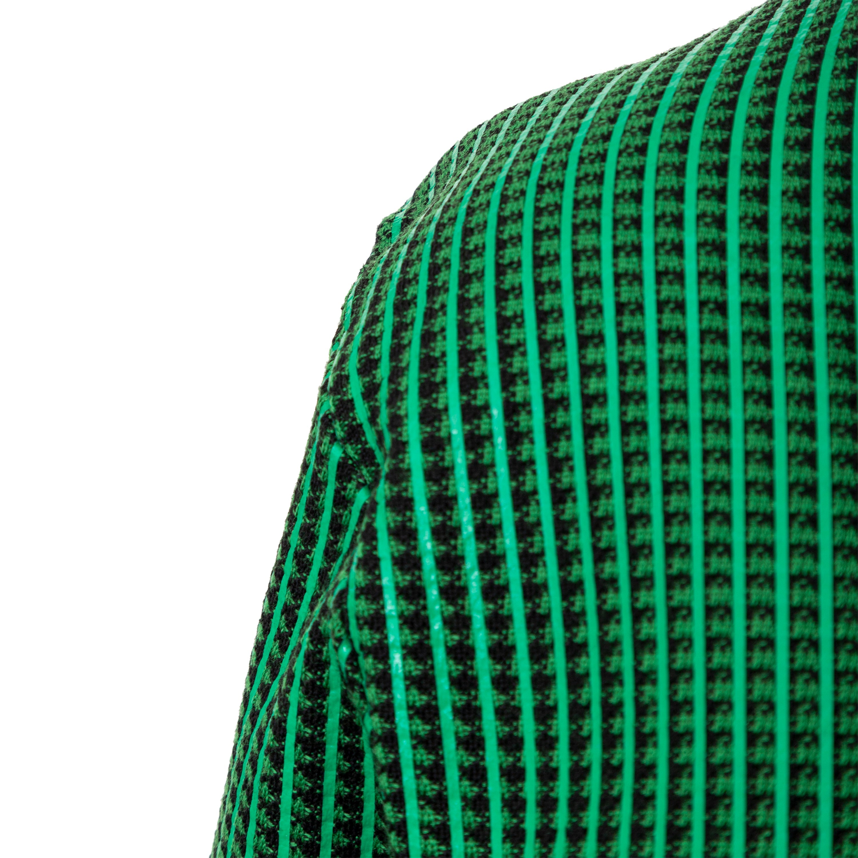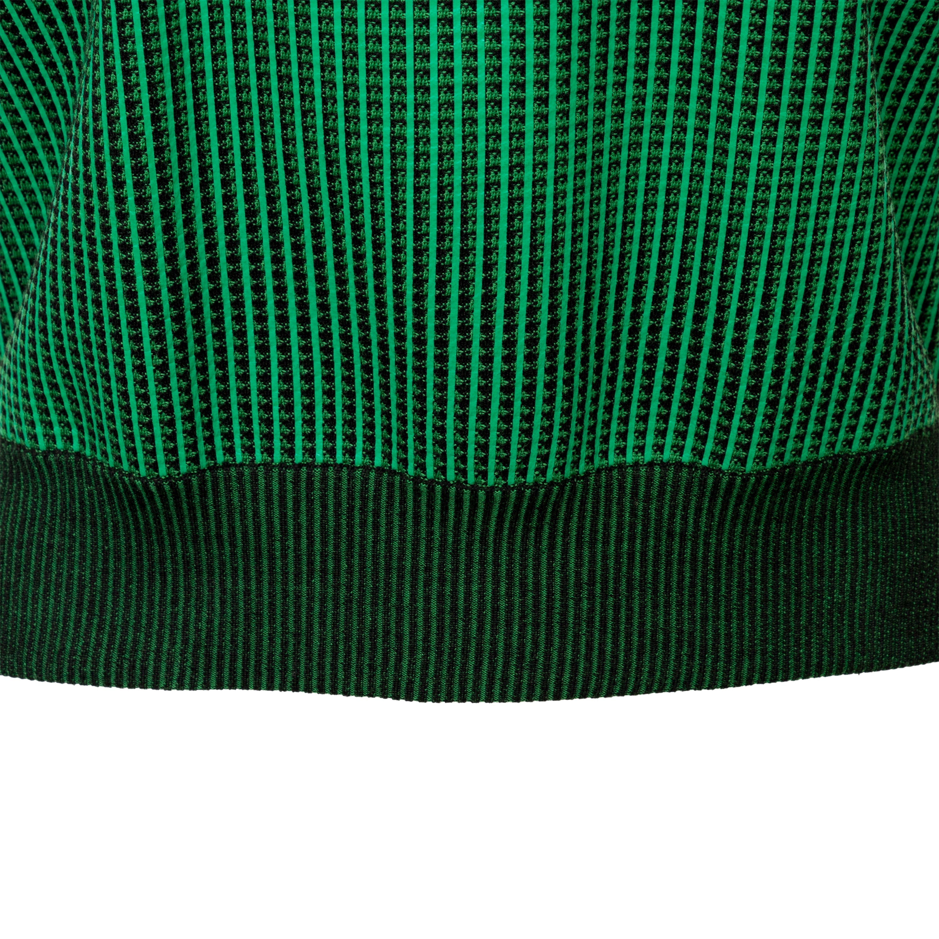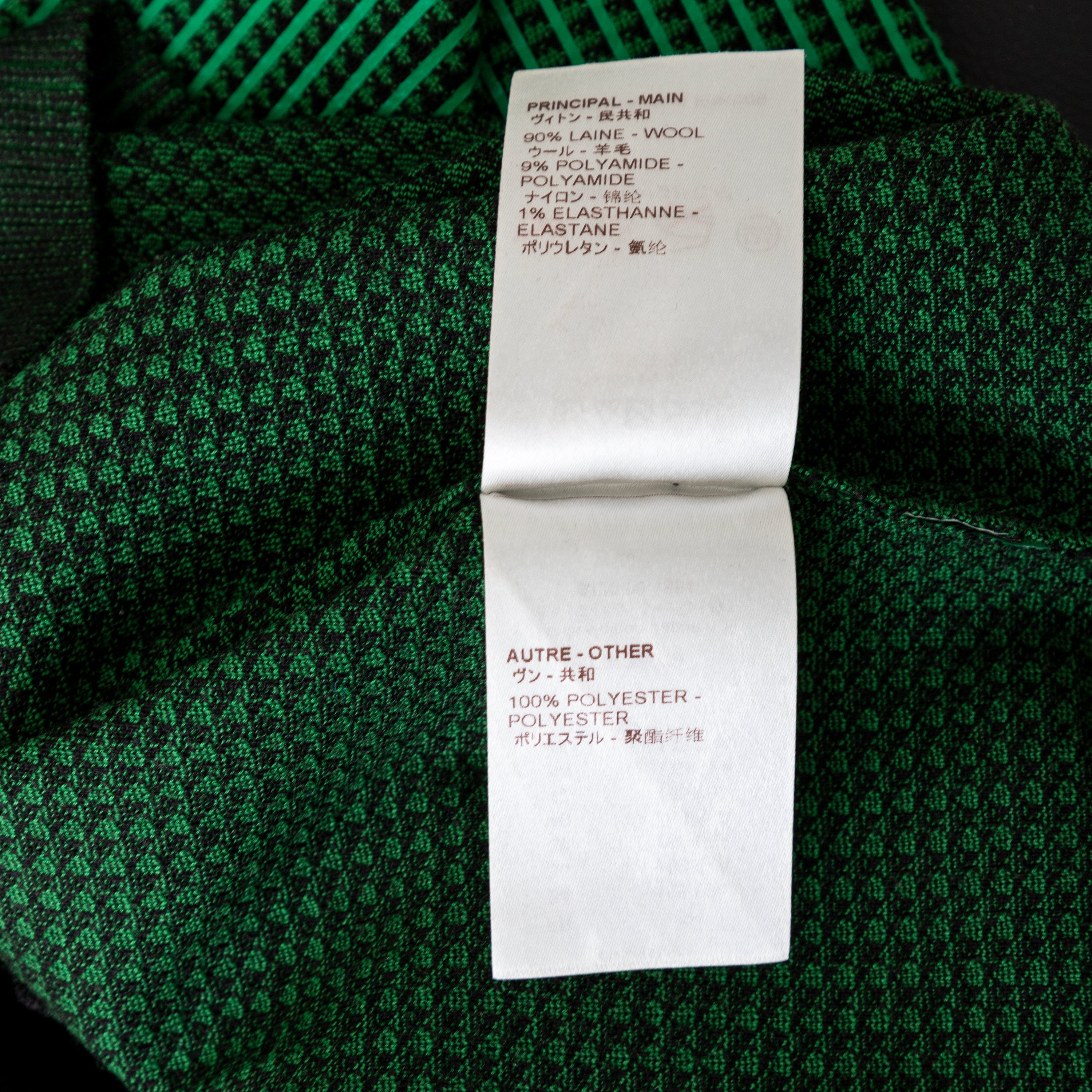 The Louis Vuitton V-neck top lends an elevated finish to street-casual vibes. This piece features a classic V-neck, ribbed hem and a distinctive green stripe running along the knitted body. Composed of a combination of wool and elastane, this top is suitable for both formal and casual occasions.