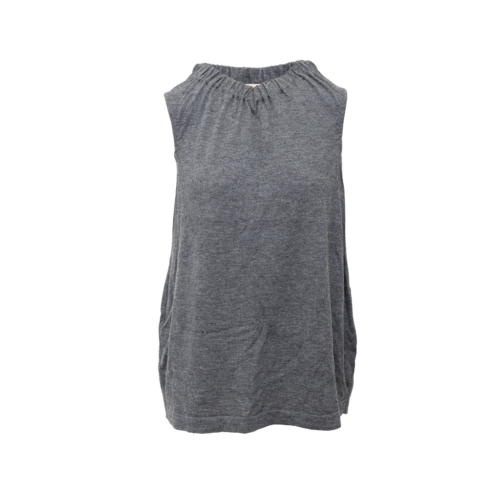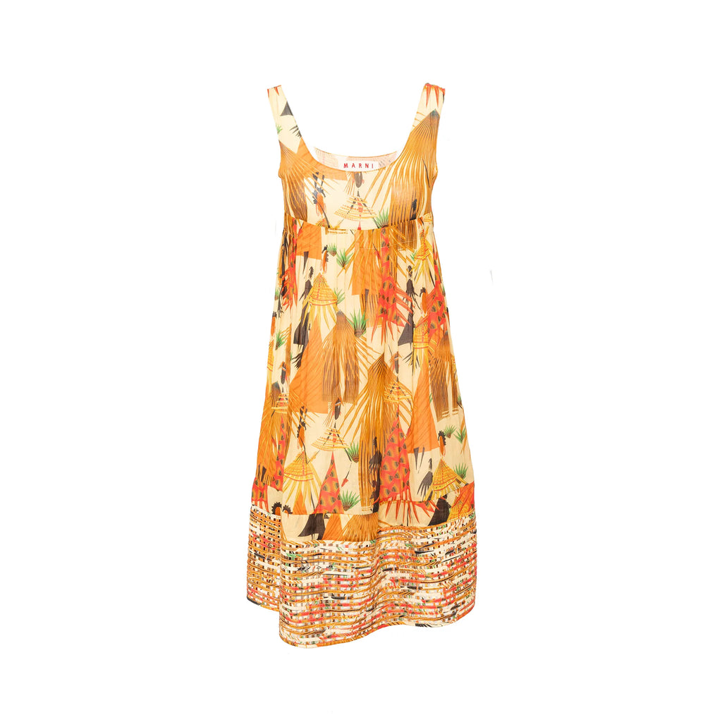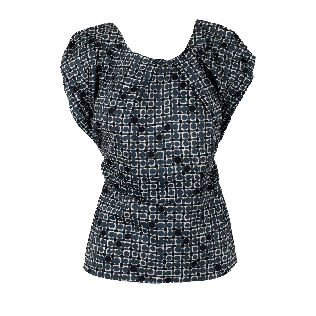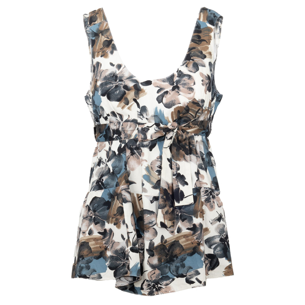 Marni Sleeveless Ruffle Top in Blue and Pink Print Silk, UK14