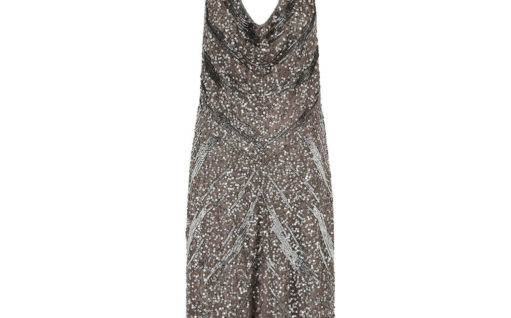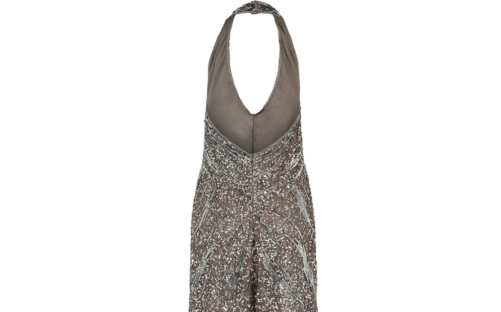 2000s Max Mara Silver Sequin Halter Neck Dress