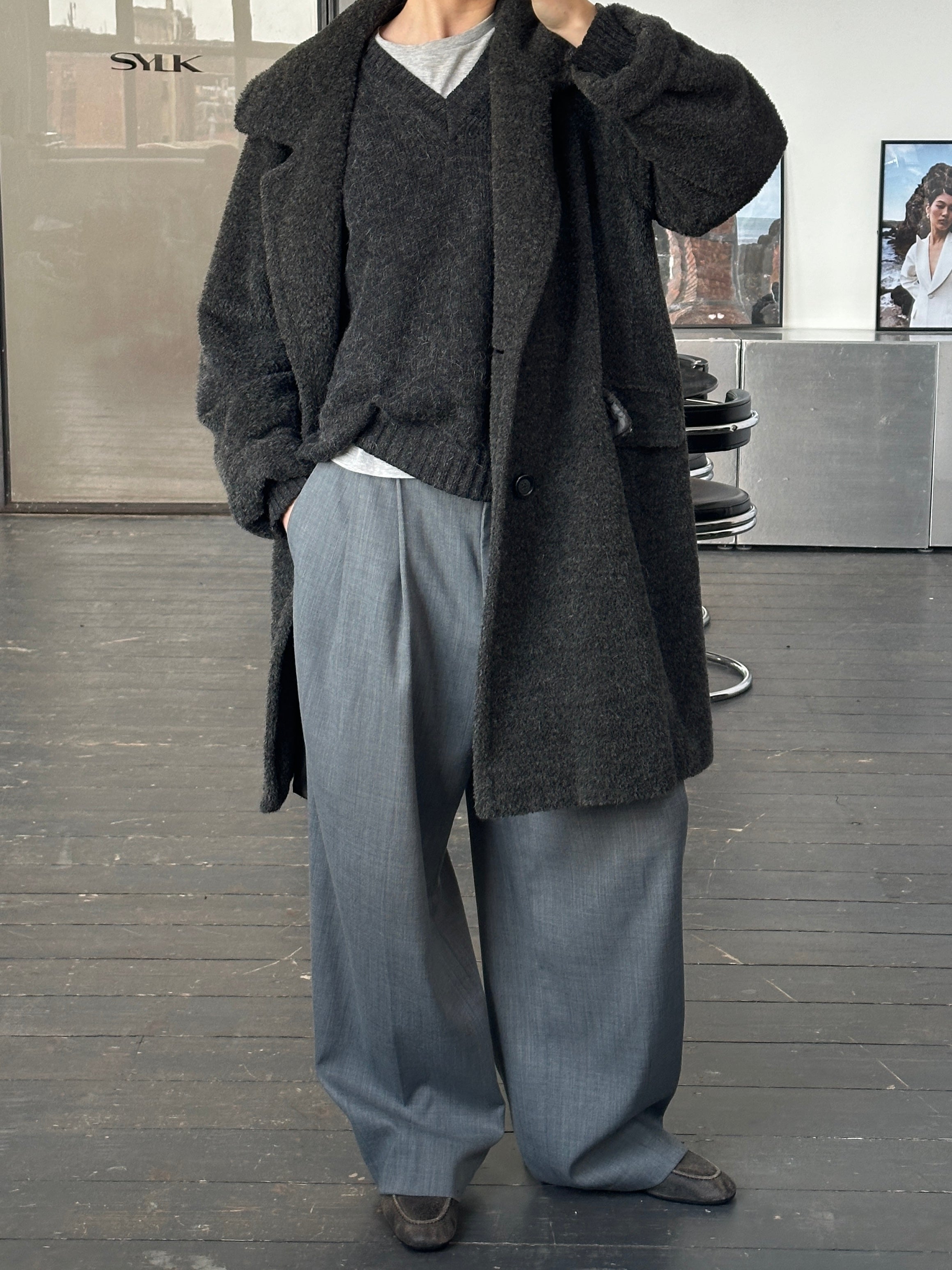 ~ Double breasted front with relaxed silhouette