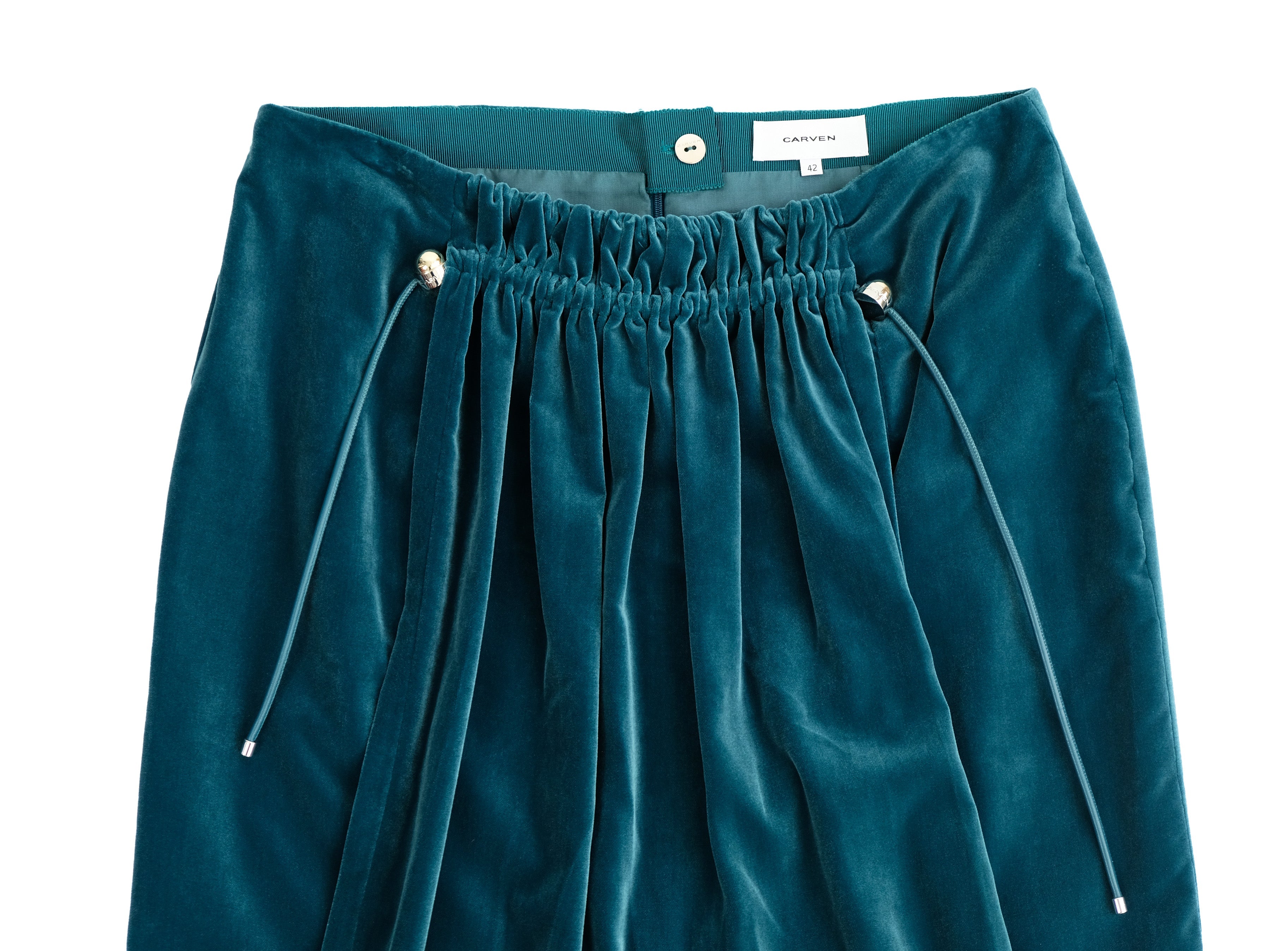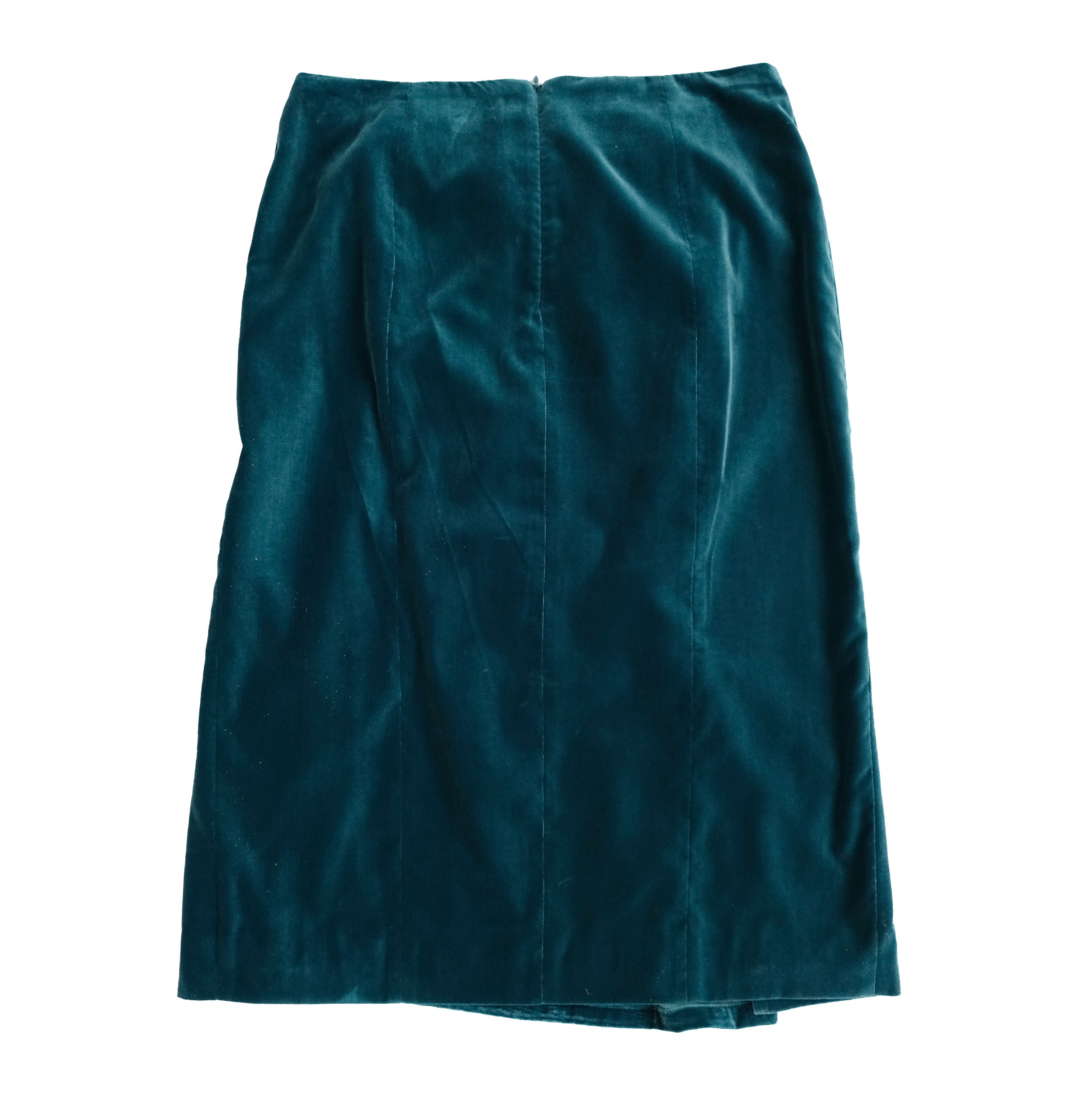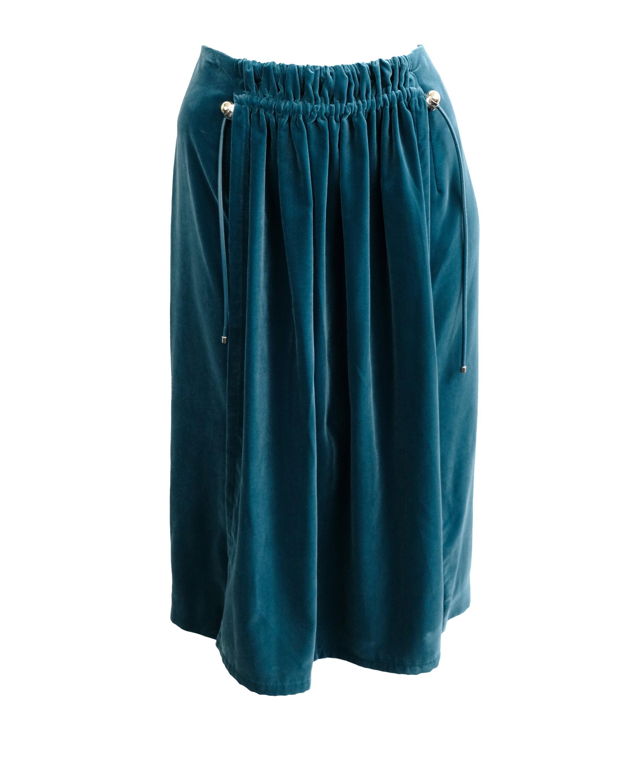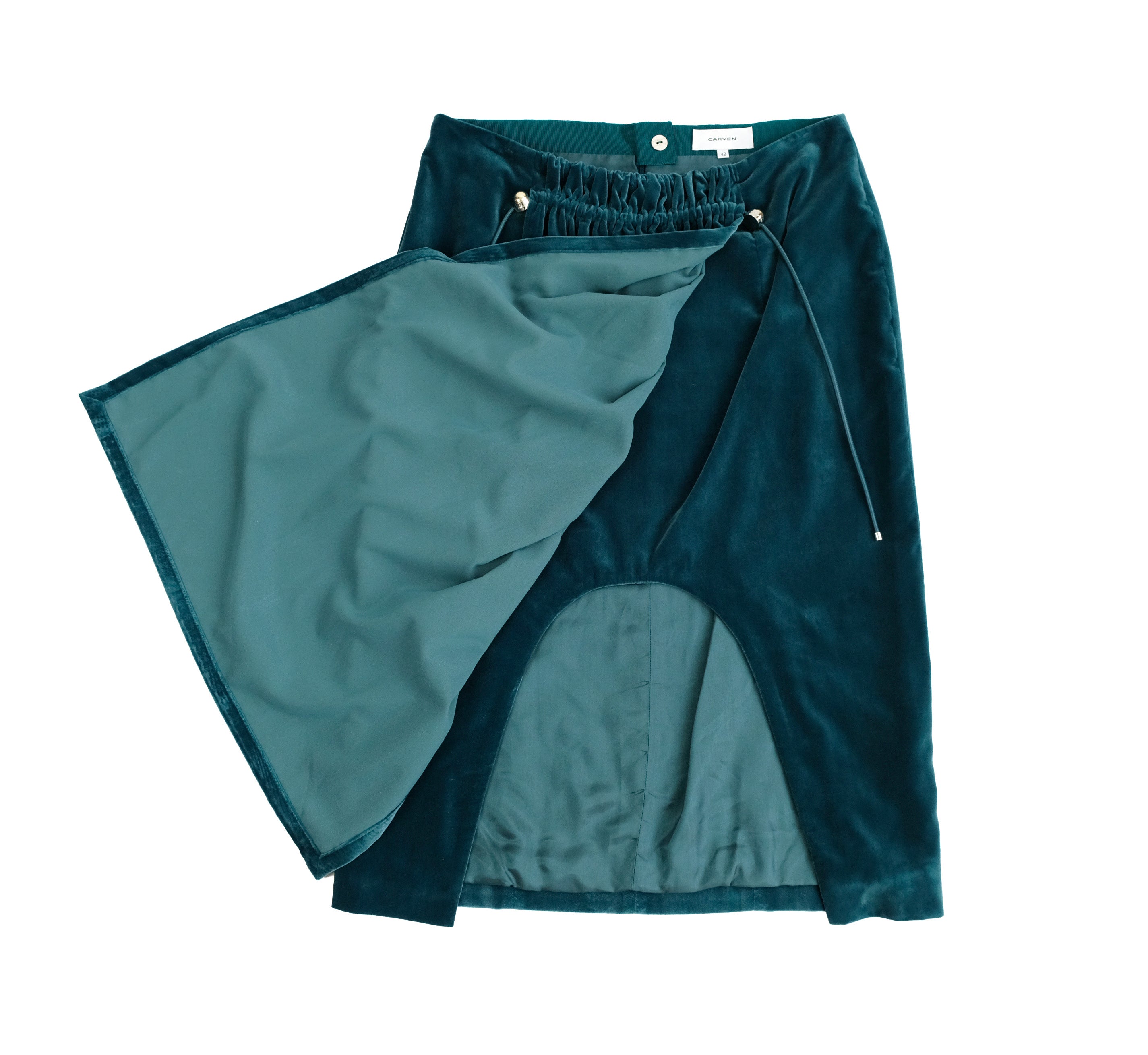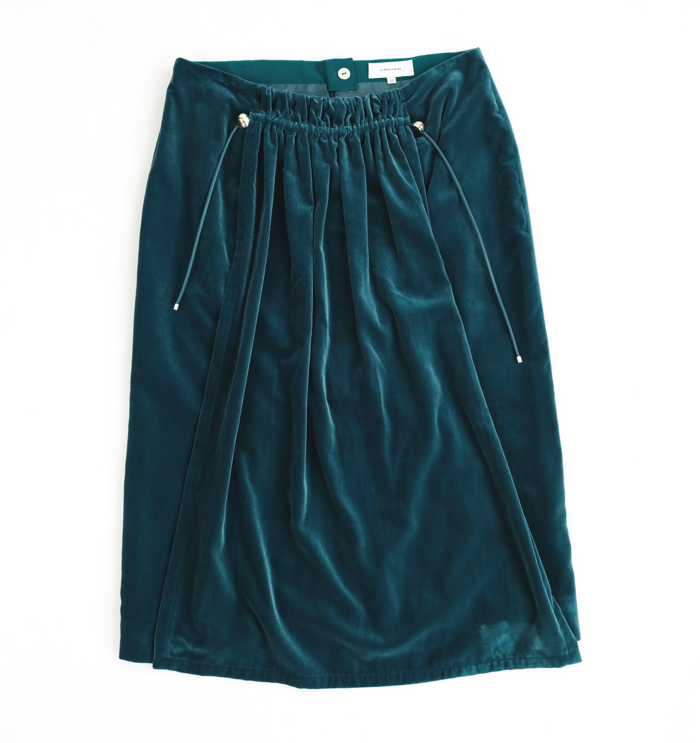 An unusual skirt by Carven in fabulously soft teal velvet.