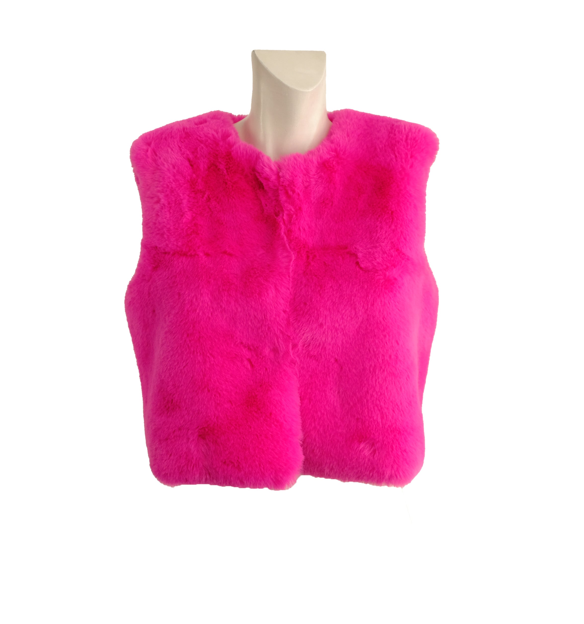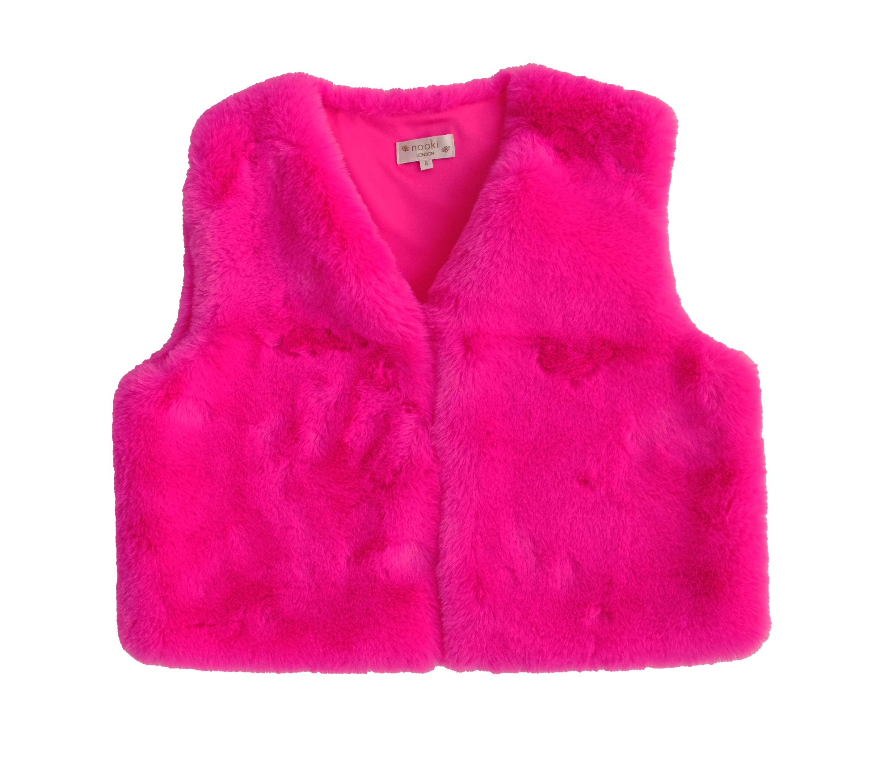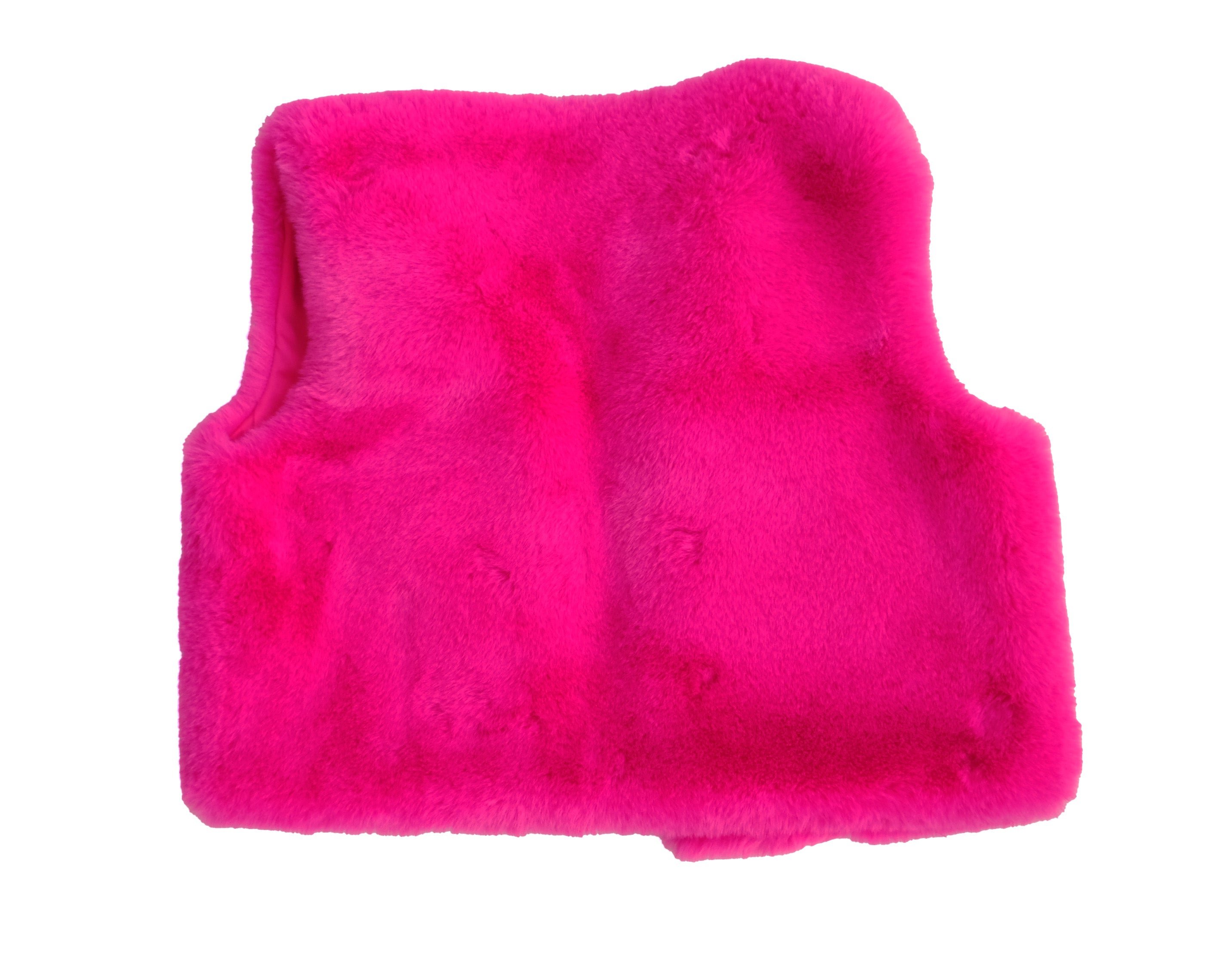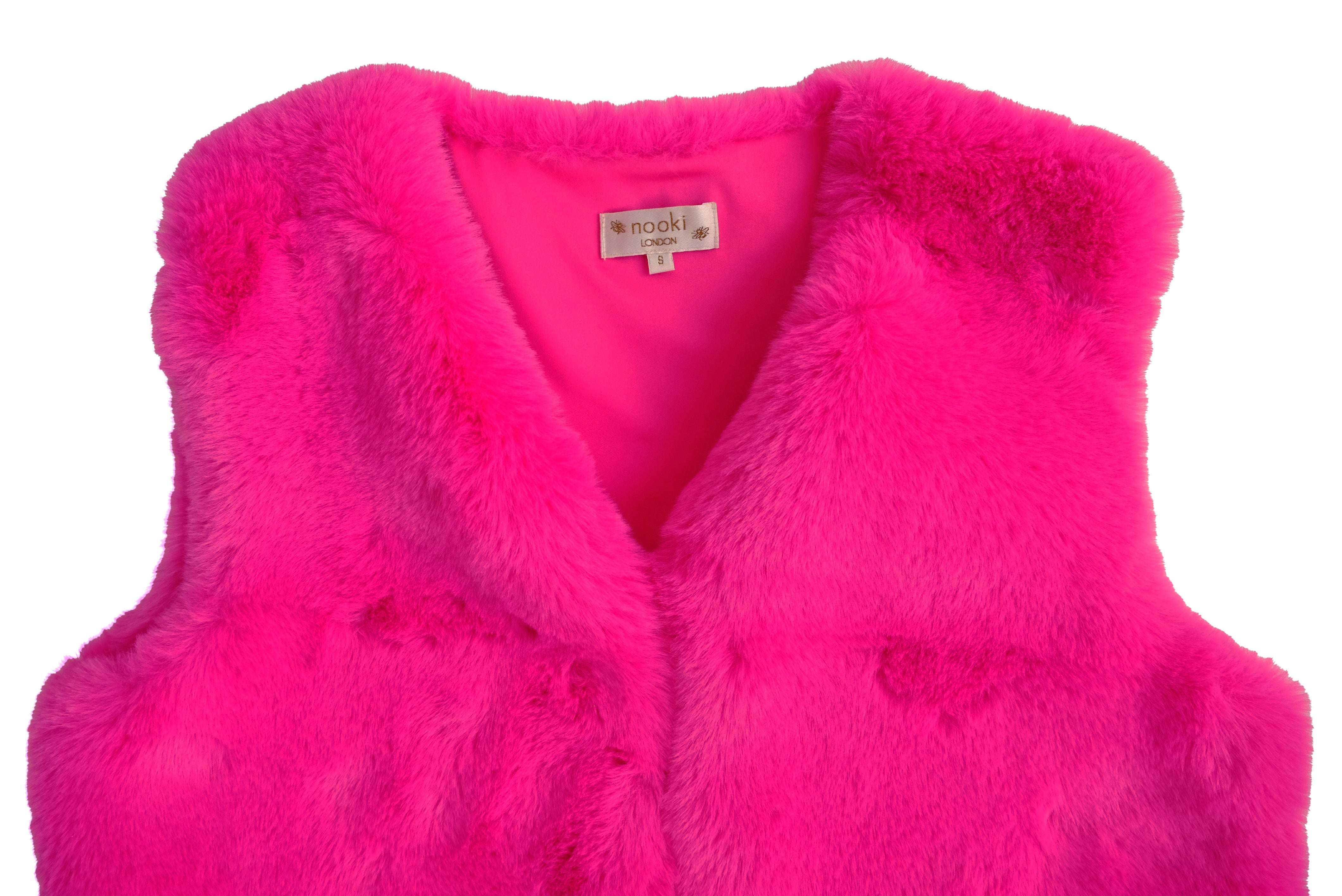 A super cute cropped gilet by Nooki of London in softest luxurious shocking pink faux fur.