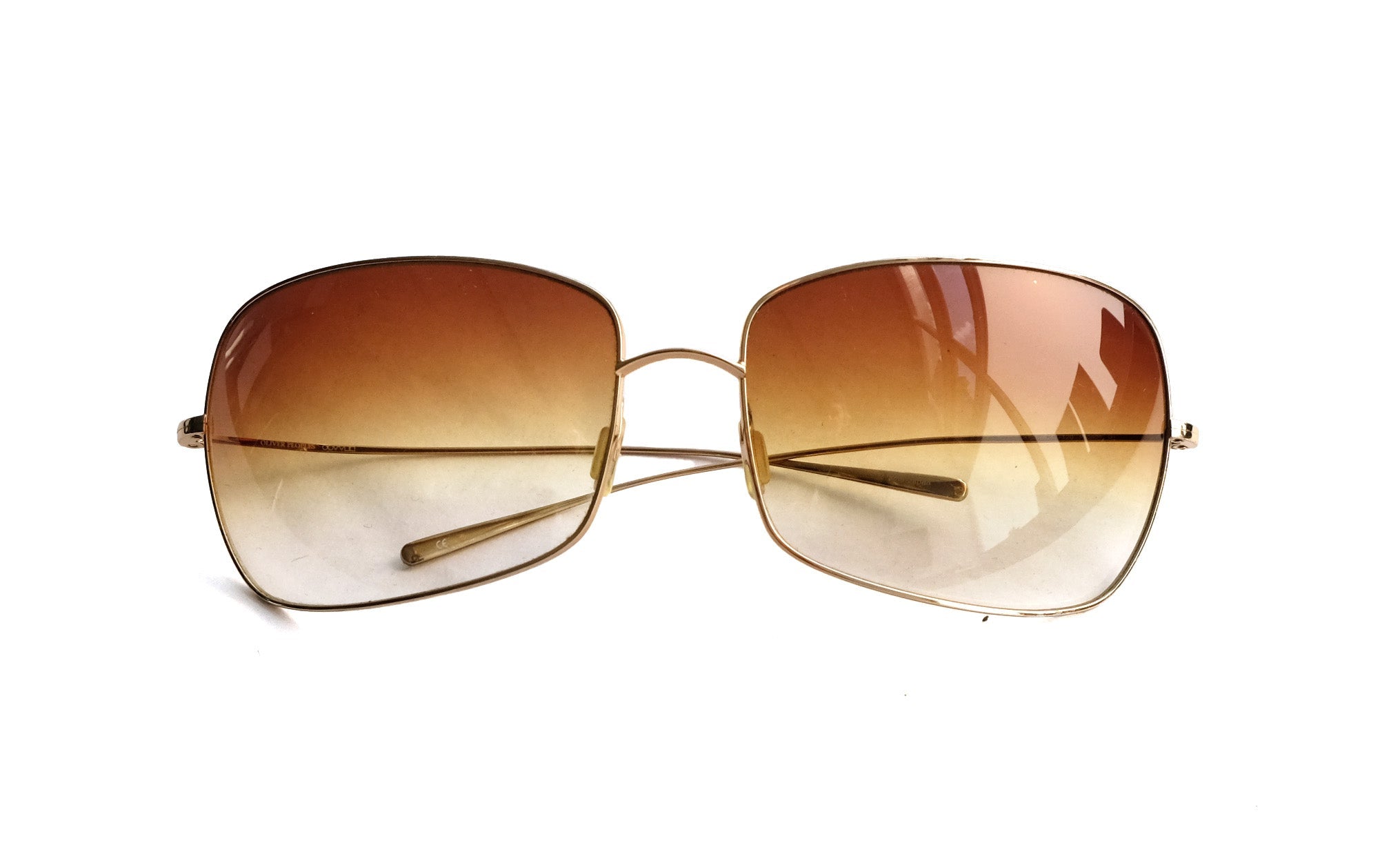 Oliver Peoples classic gold wire rimmed sunglasses with ombré lenses.