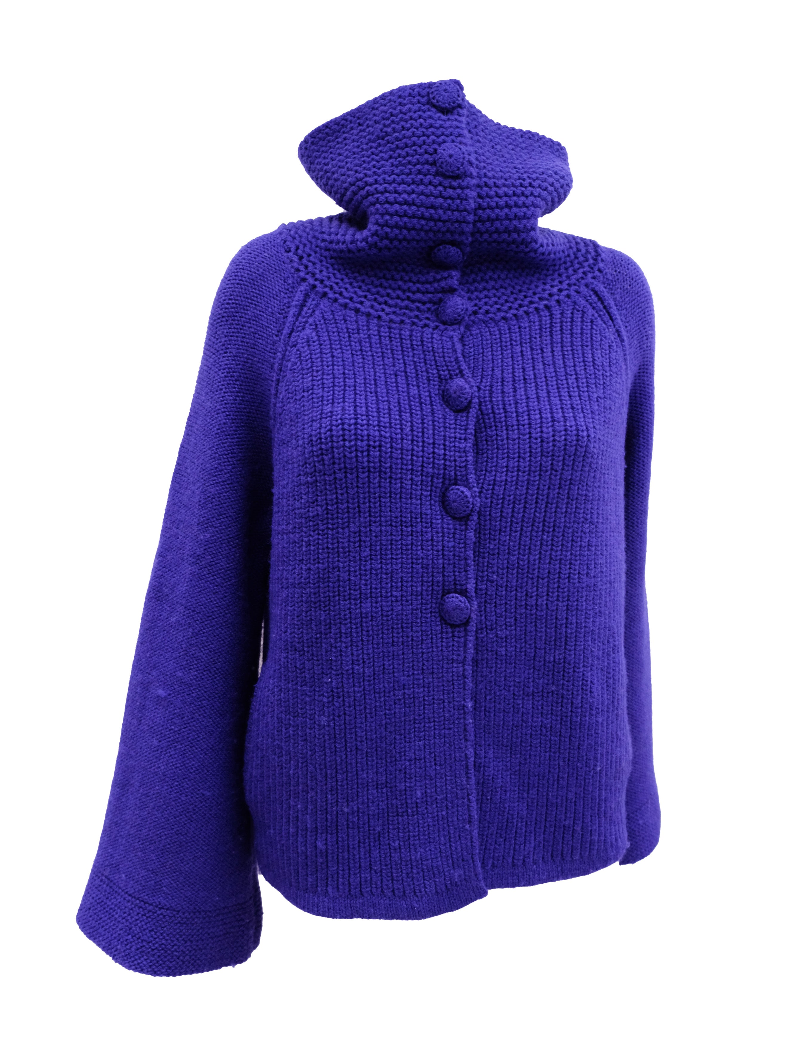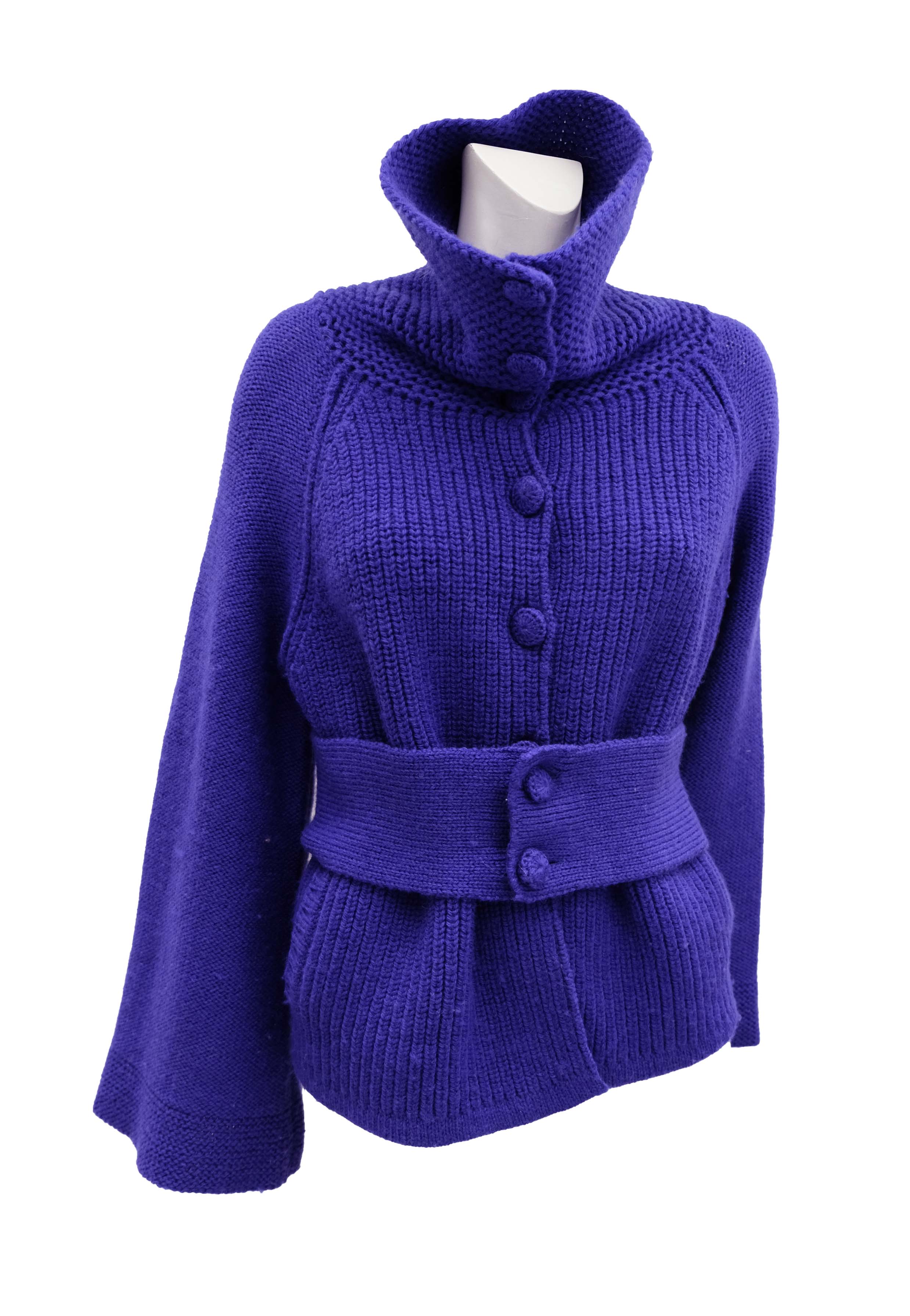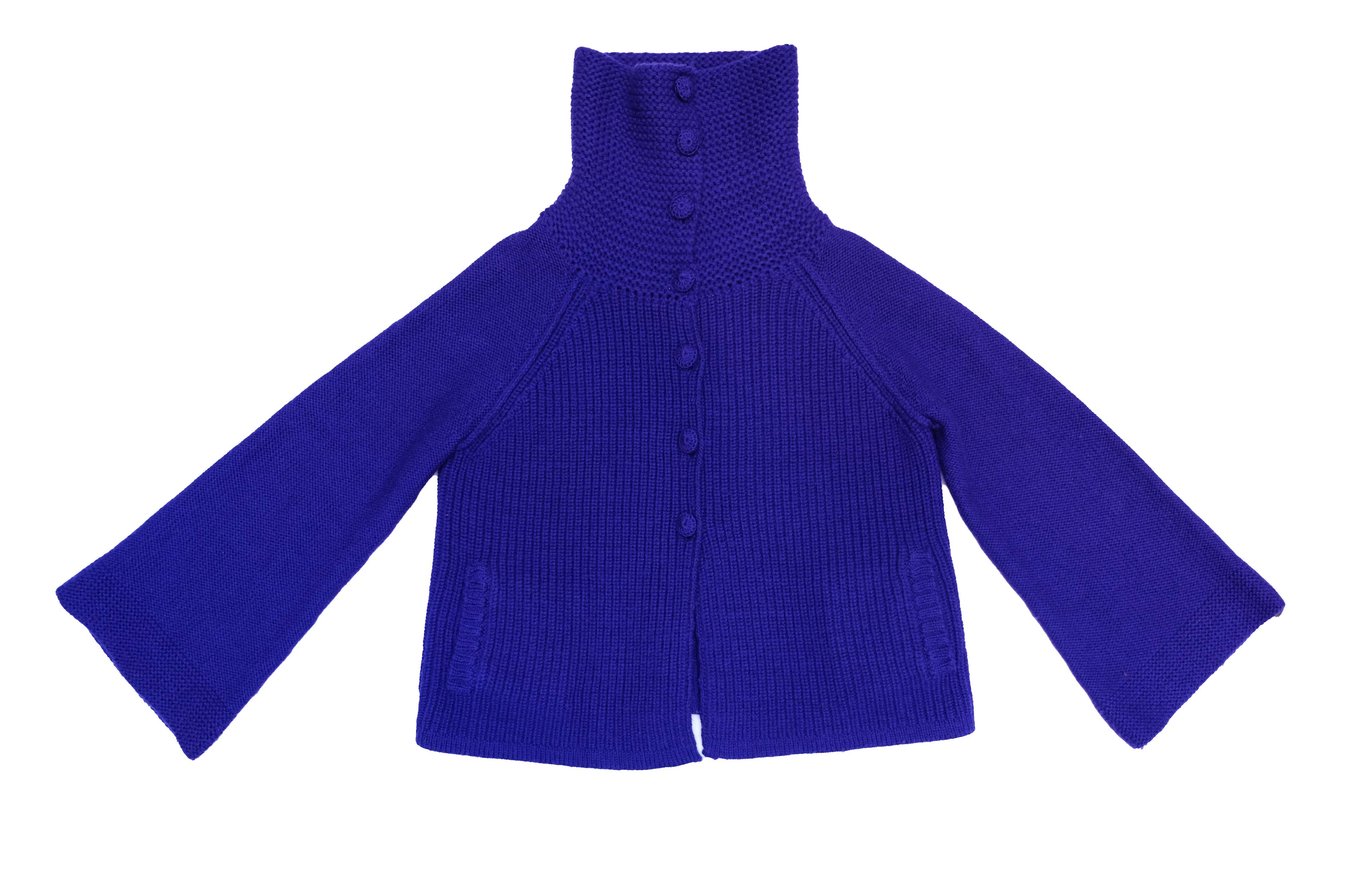 A chunky hand knitted jacket or cardigan by Sonia Rykiel in intense purplish blue wool.