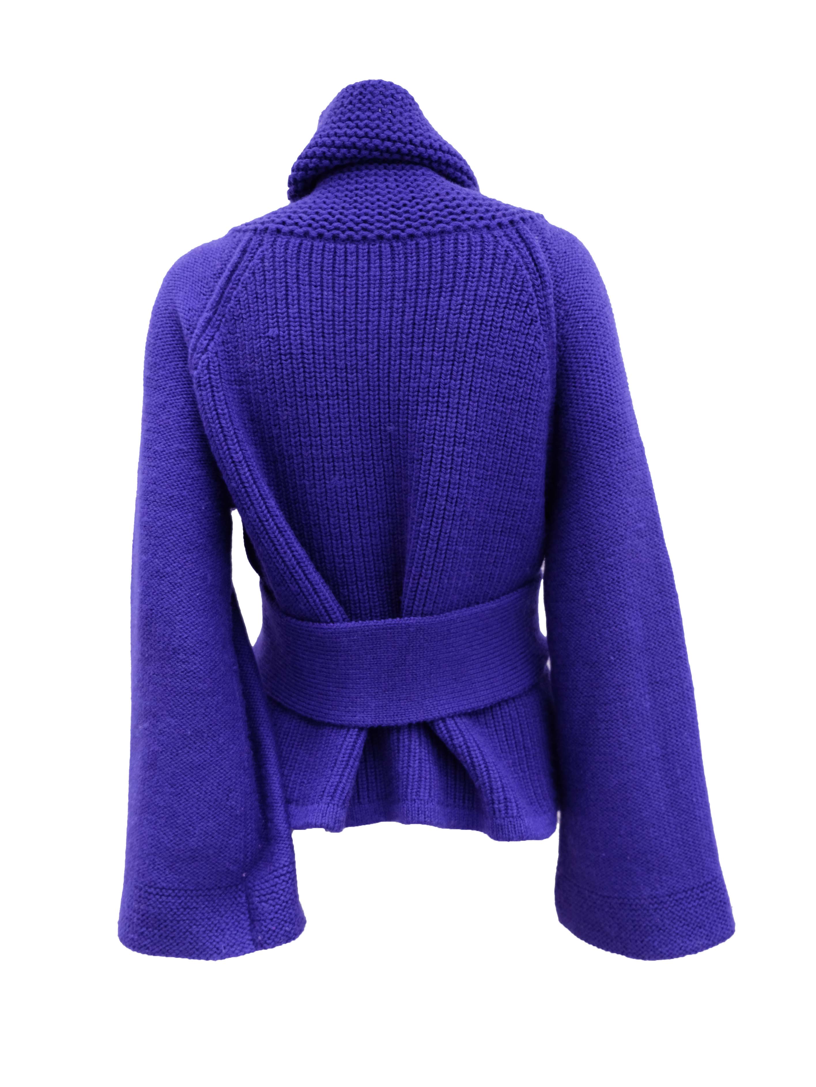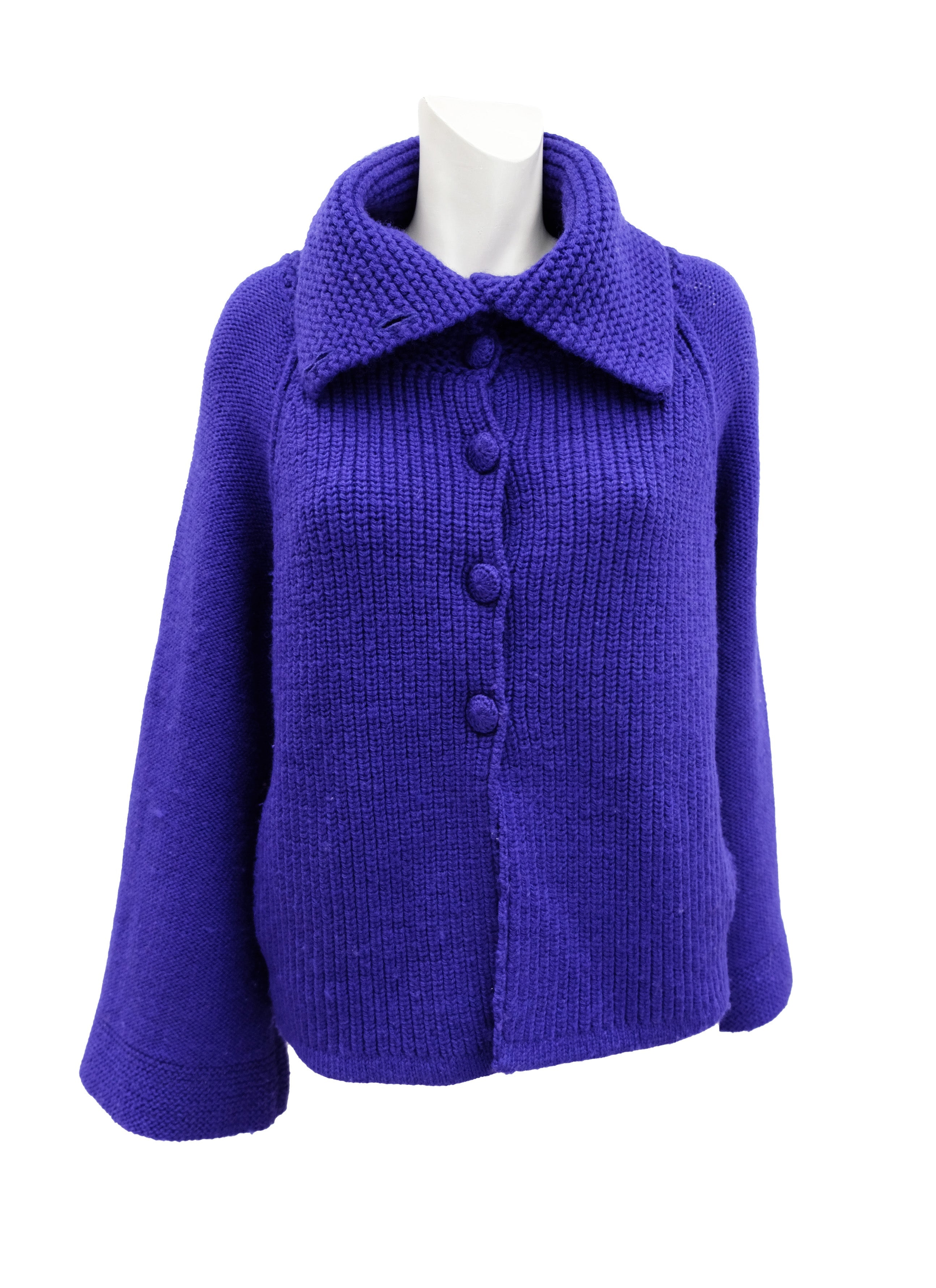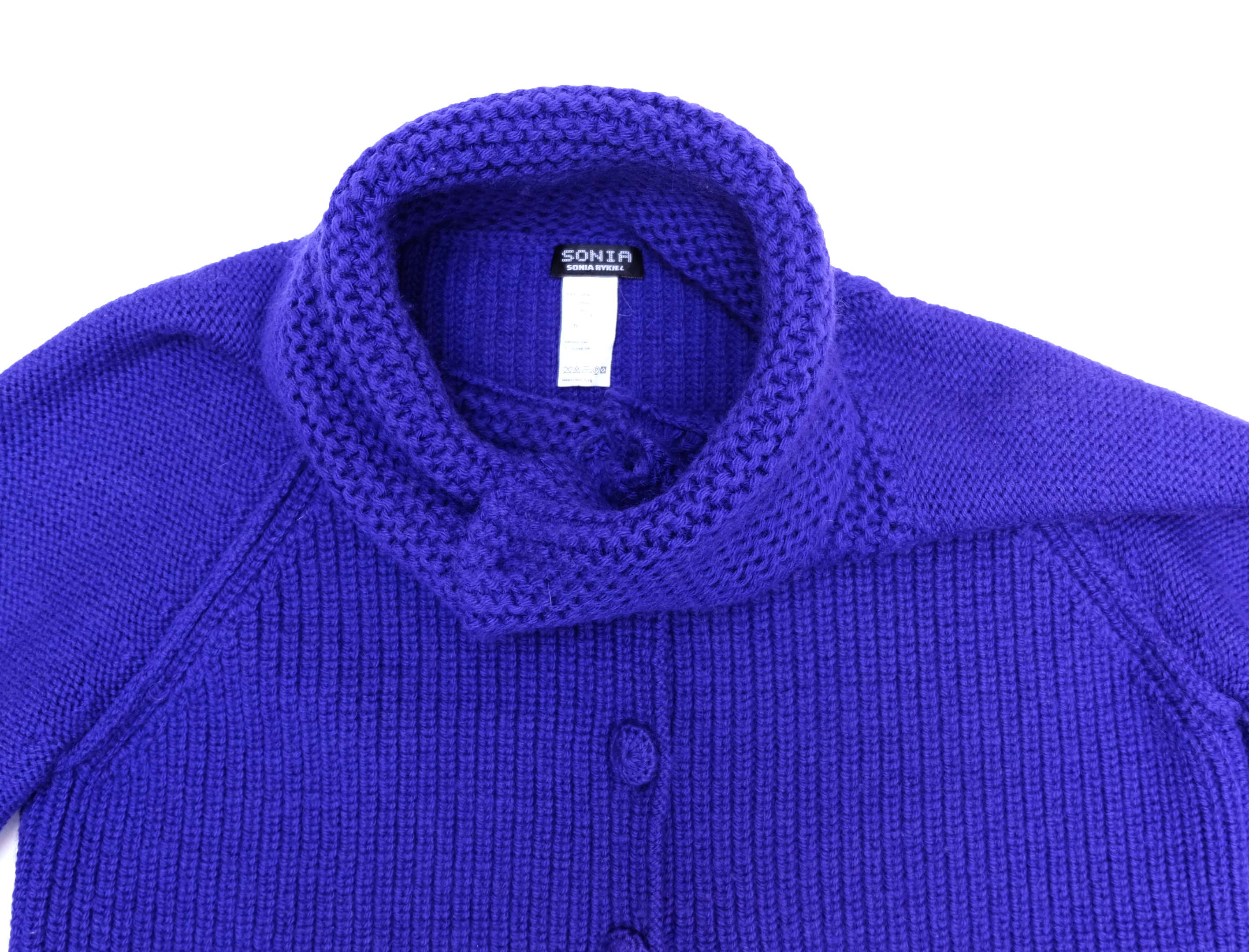 A chunky hand knitted jacket or cardigan by Sonia Rykiel in intense purplish blue wool.