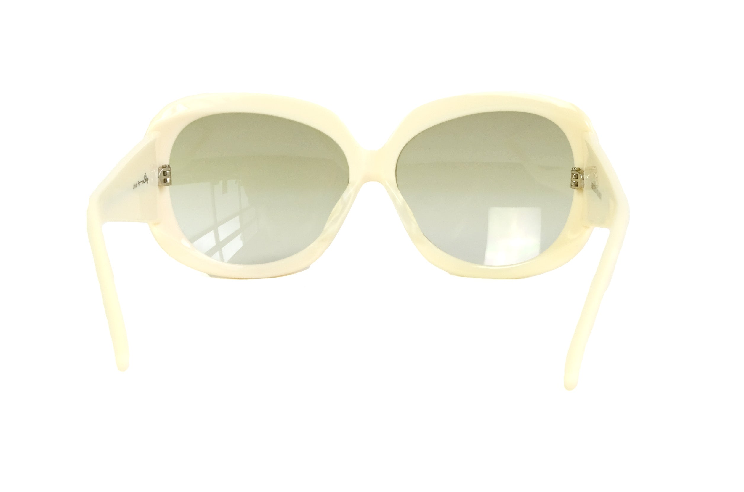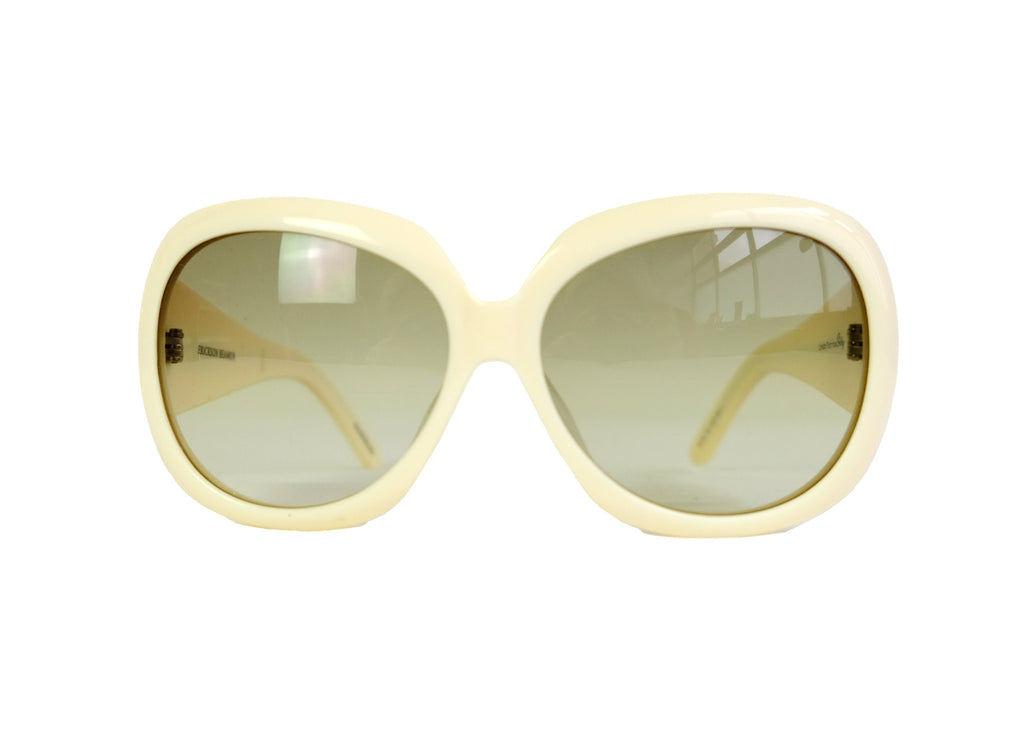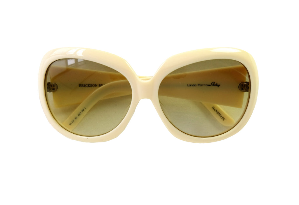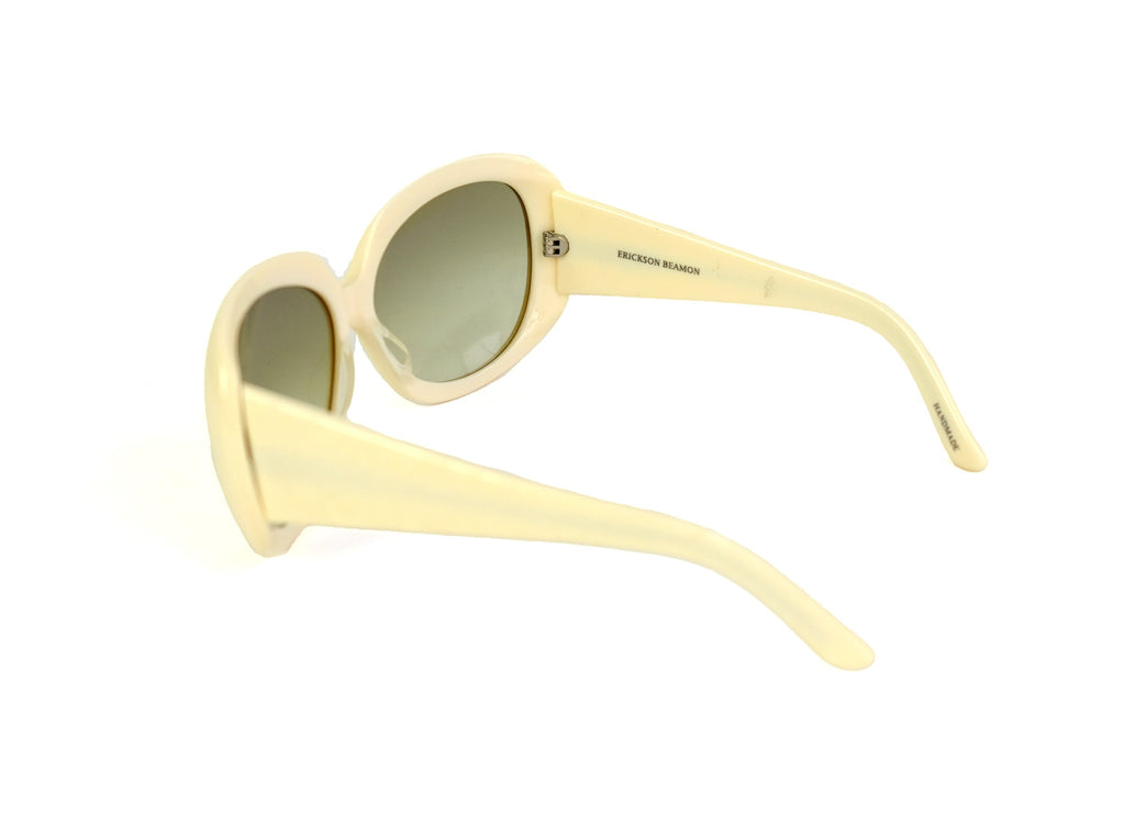 A wonderful pair of 1990s vintage sunglasses by Erickson Beamon, in cream plastic with greenish lenses.