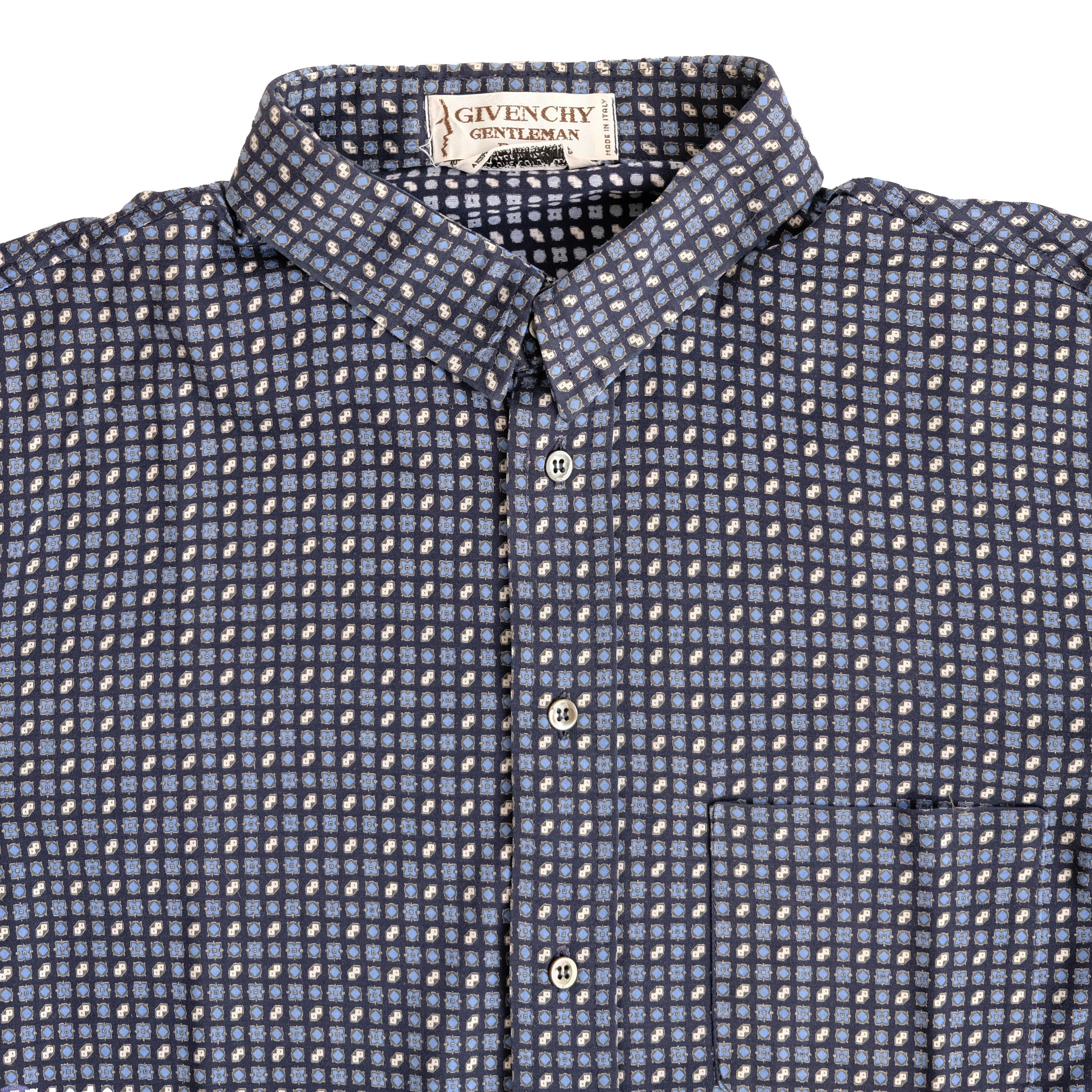 Givenchy 1980s Vintage Man's Shirt in Navy Geometric Print, Medium