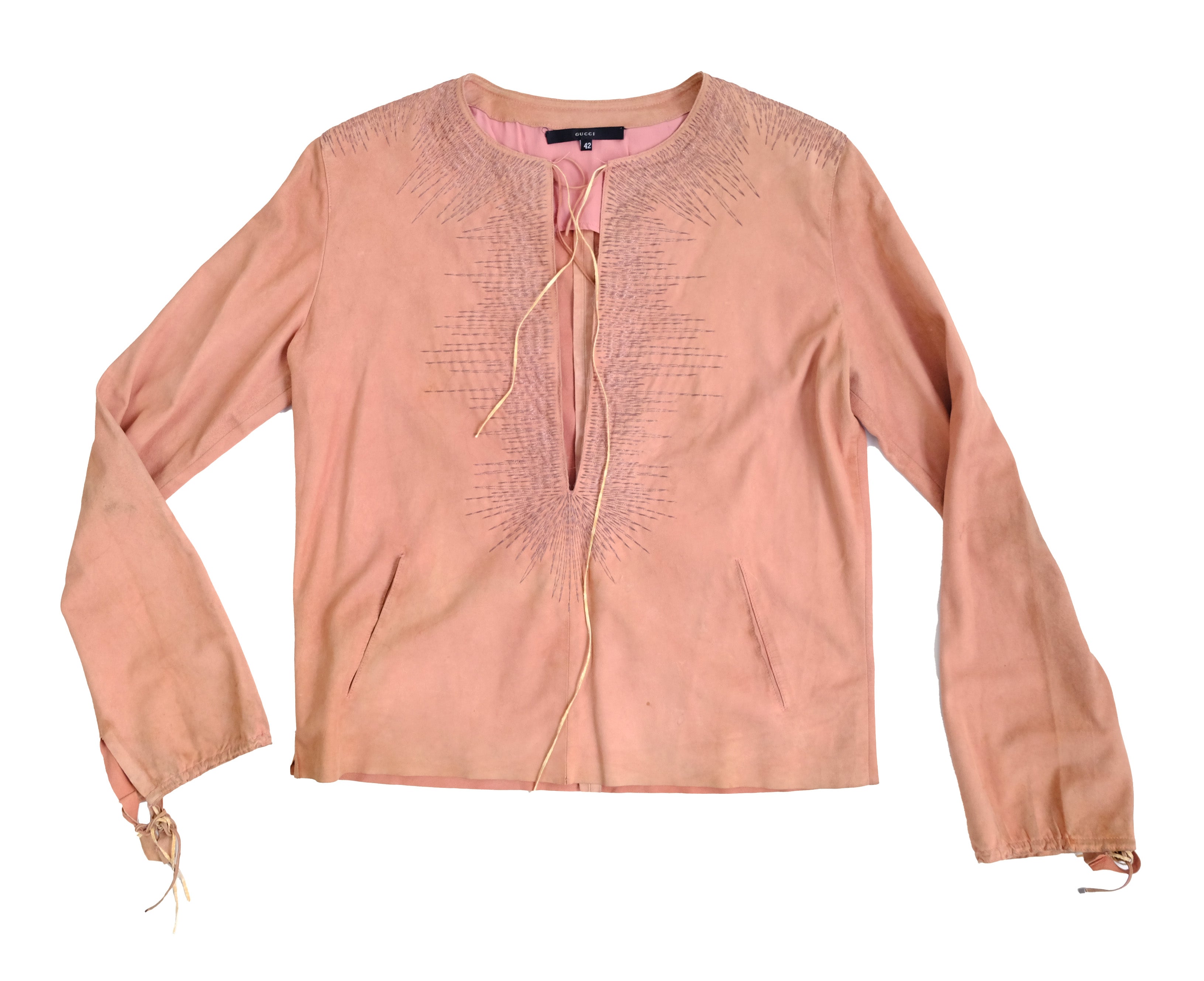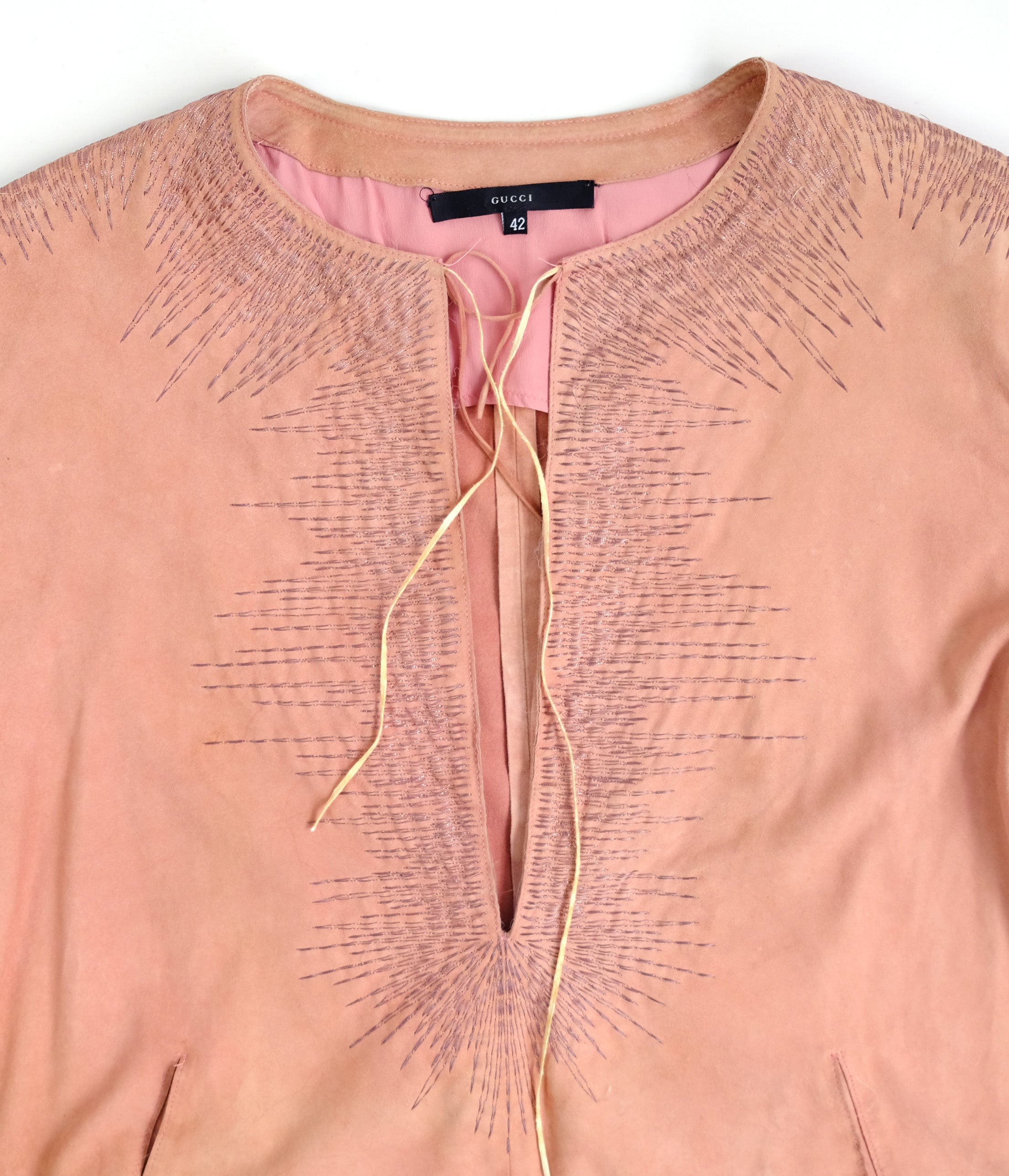 Gucci Vintage Tunic Top in Pale Pink Suede, Embroidered, UK8-10