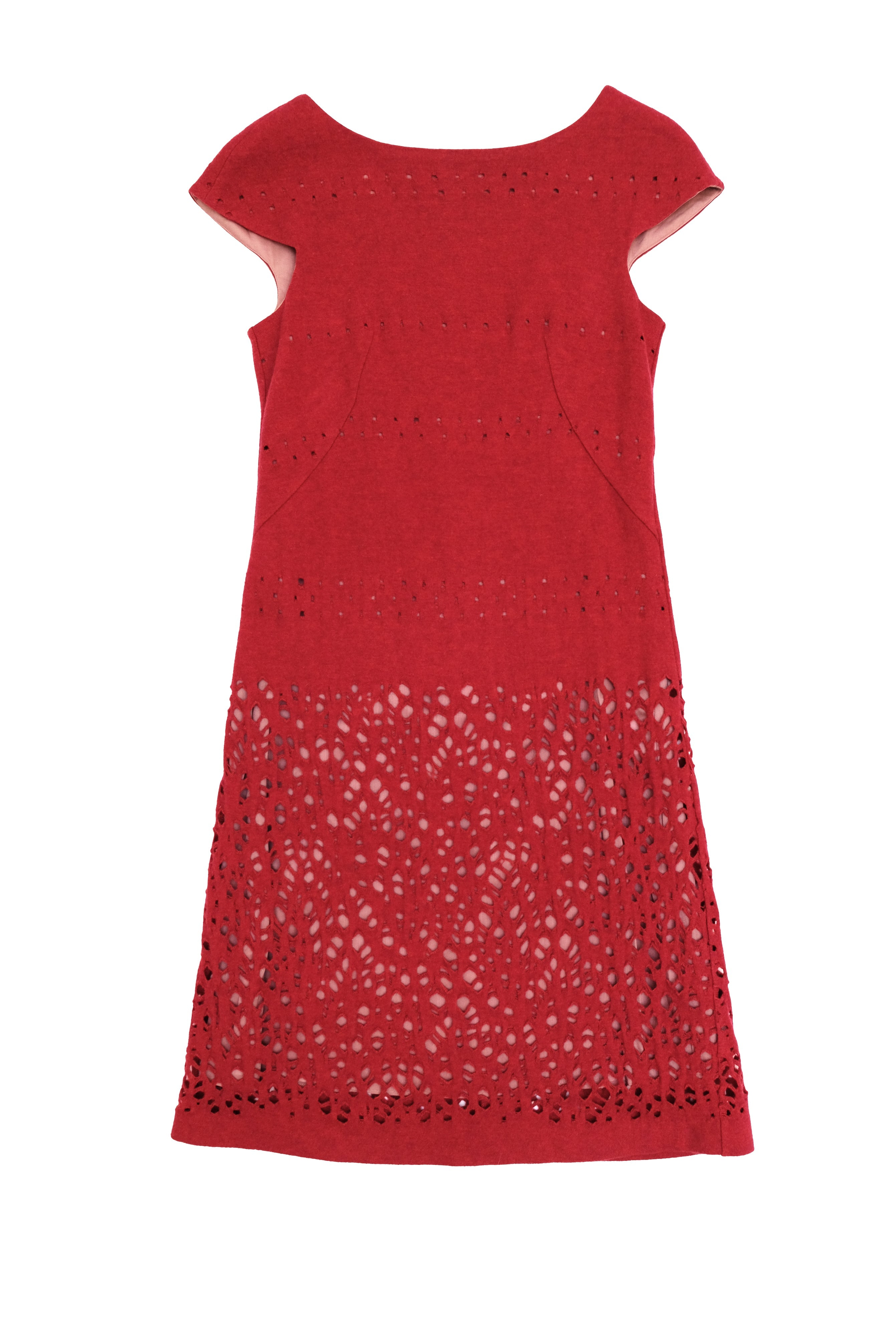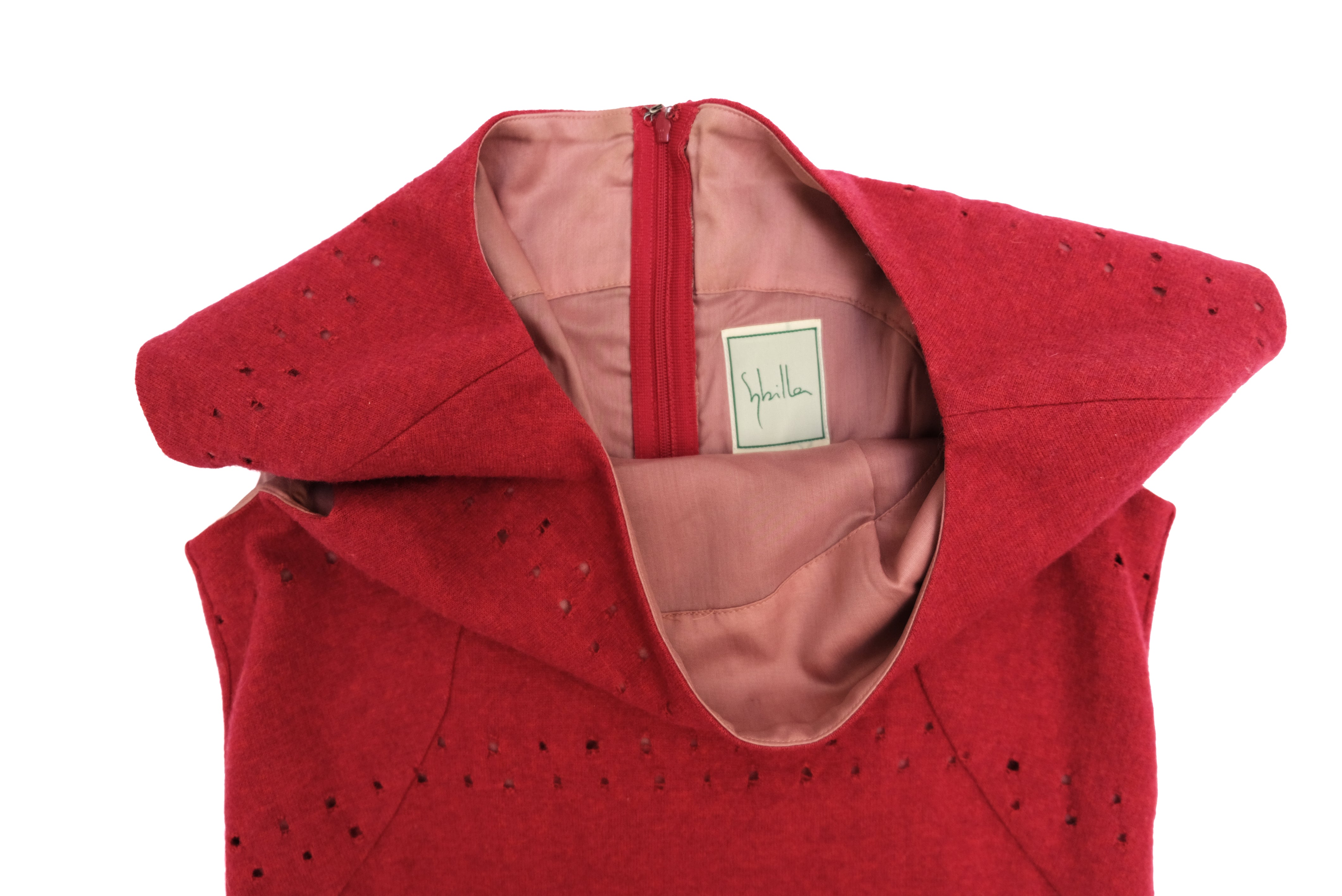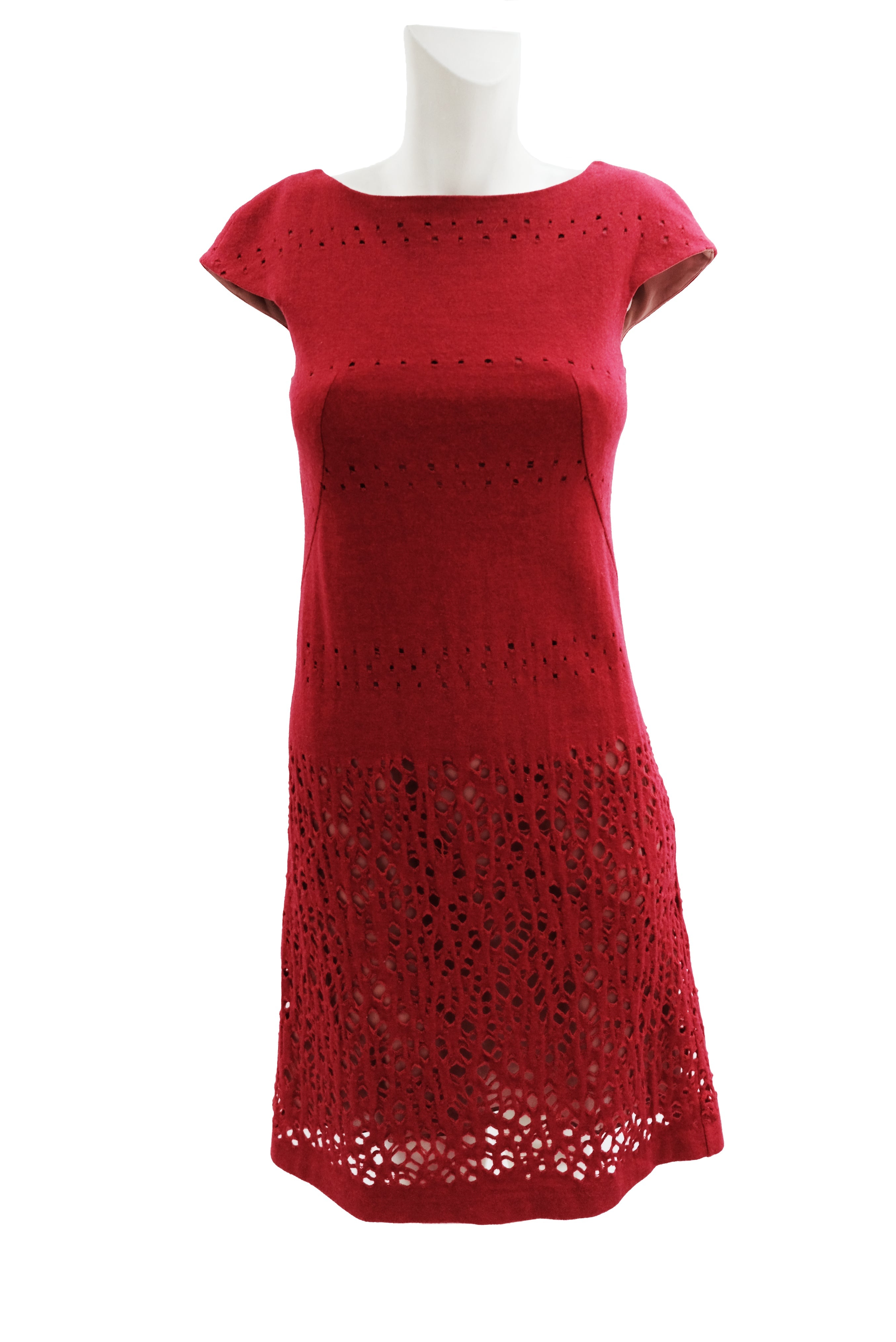 Sybilla Vintage Cut Out Shift Dress in Cherry Red Wool, UK8