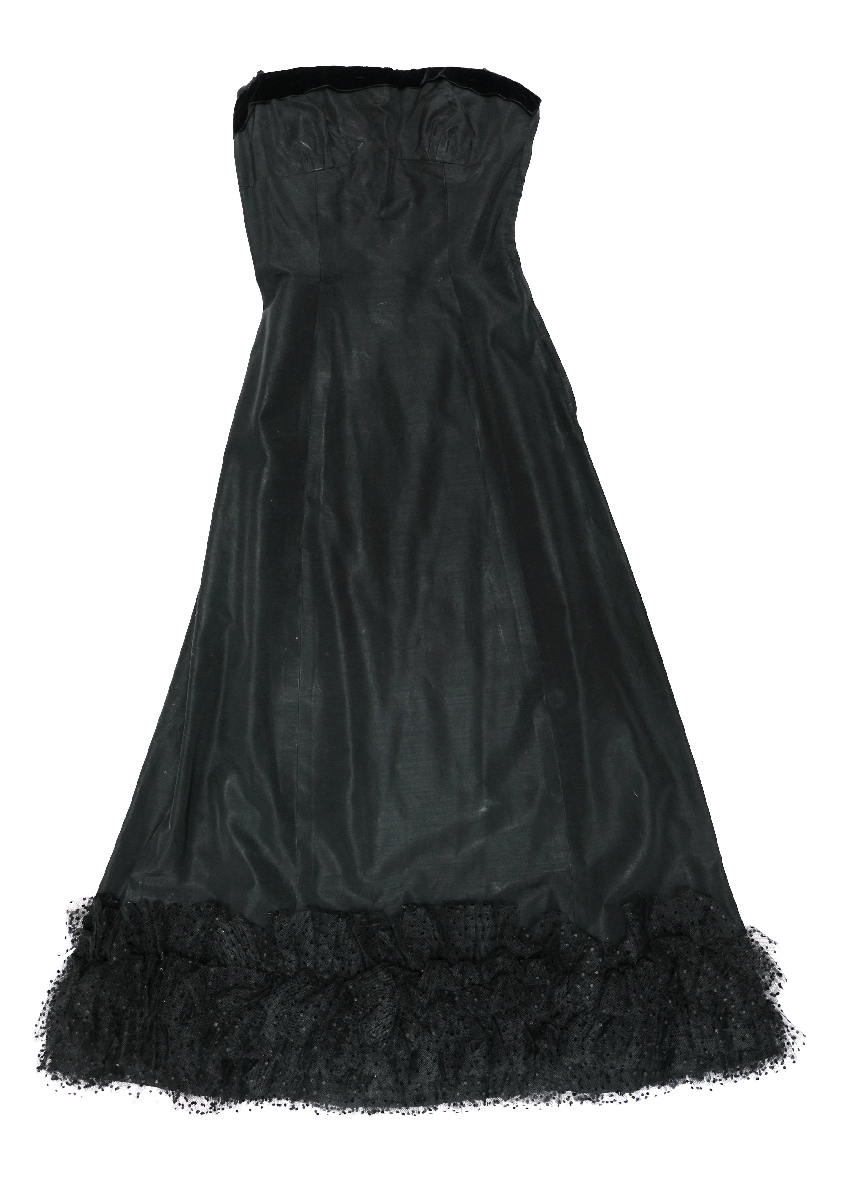 Vintage Fenwick Strapless Long Evening Dress with Net Frill, UK6-8