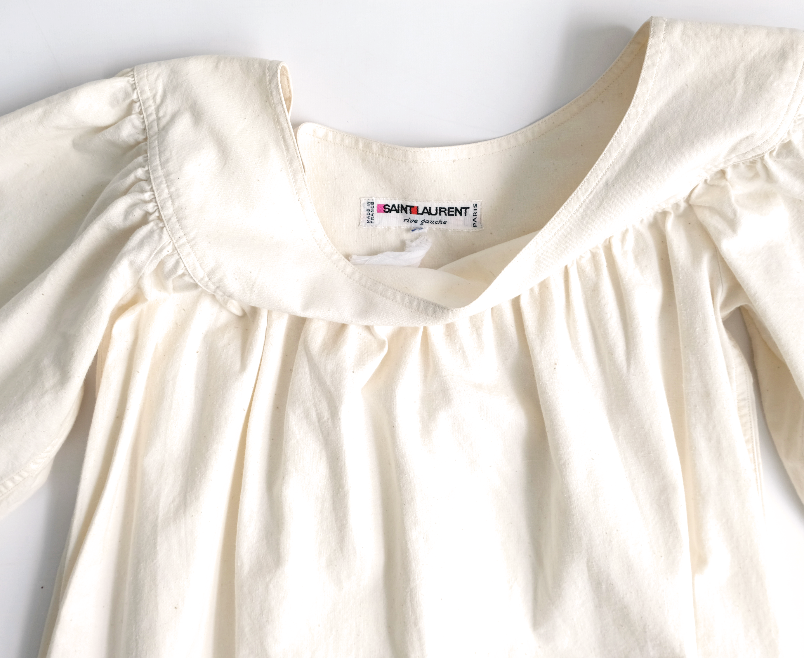 An incredible 1980s vintage smock dress by Saint Laurent Rive Gauche, in fabulous quality ivory cotton or linen with slight fleck.