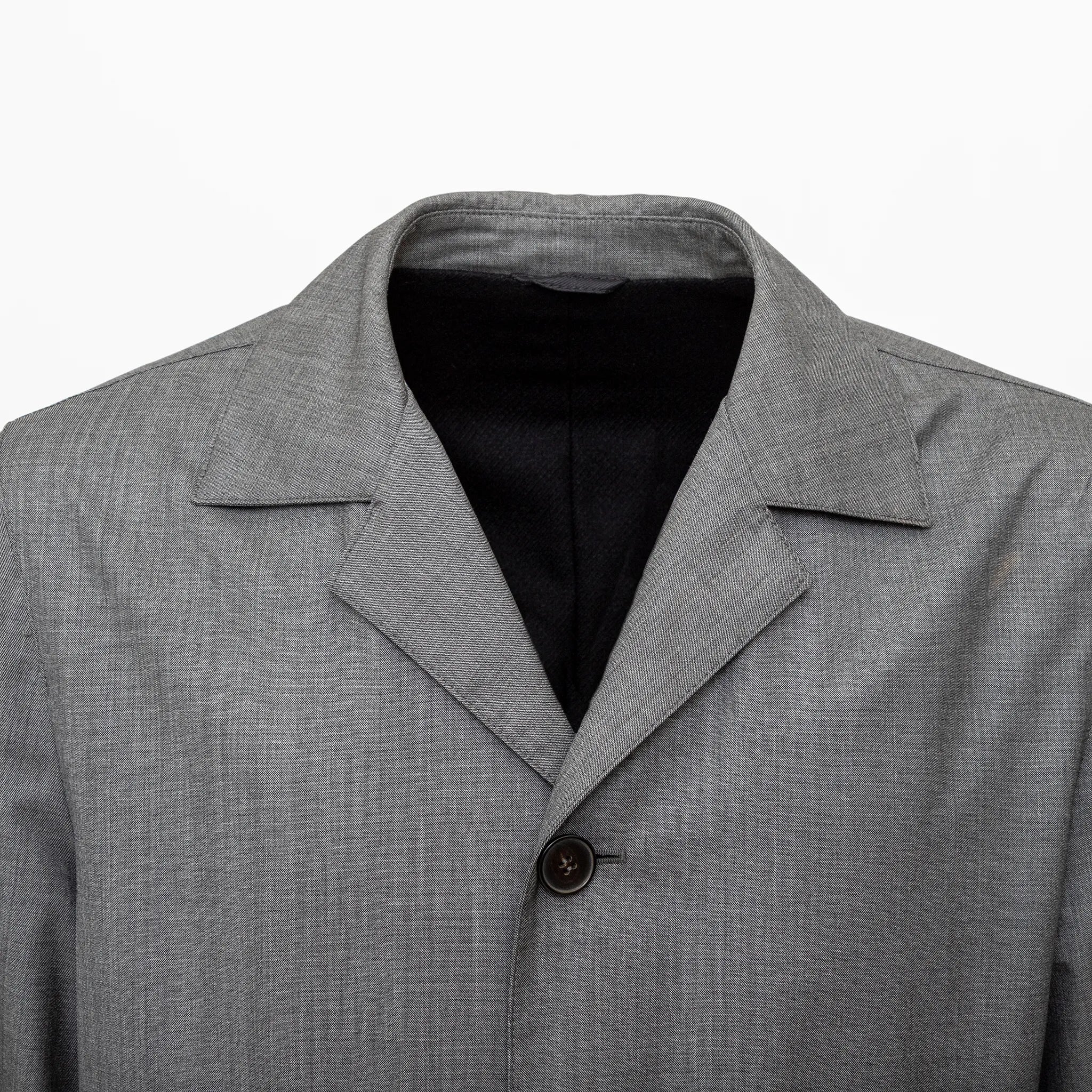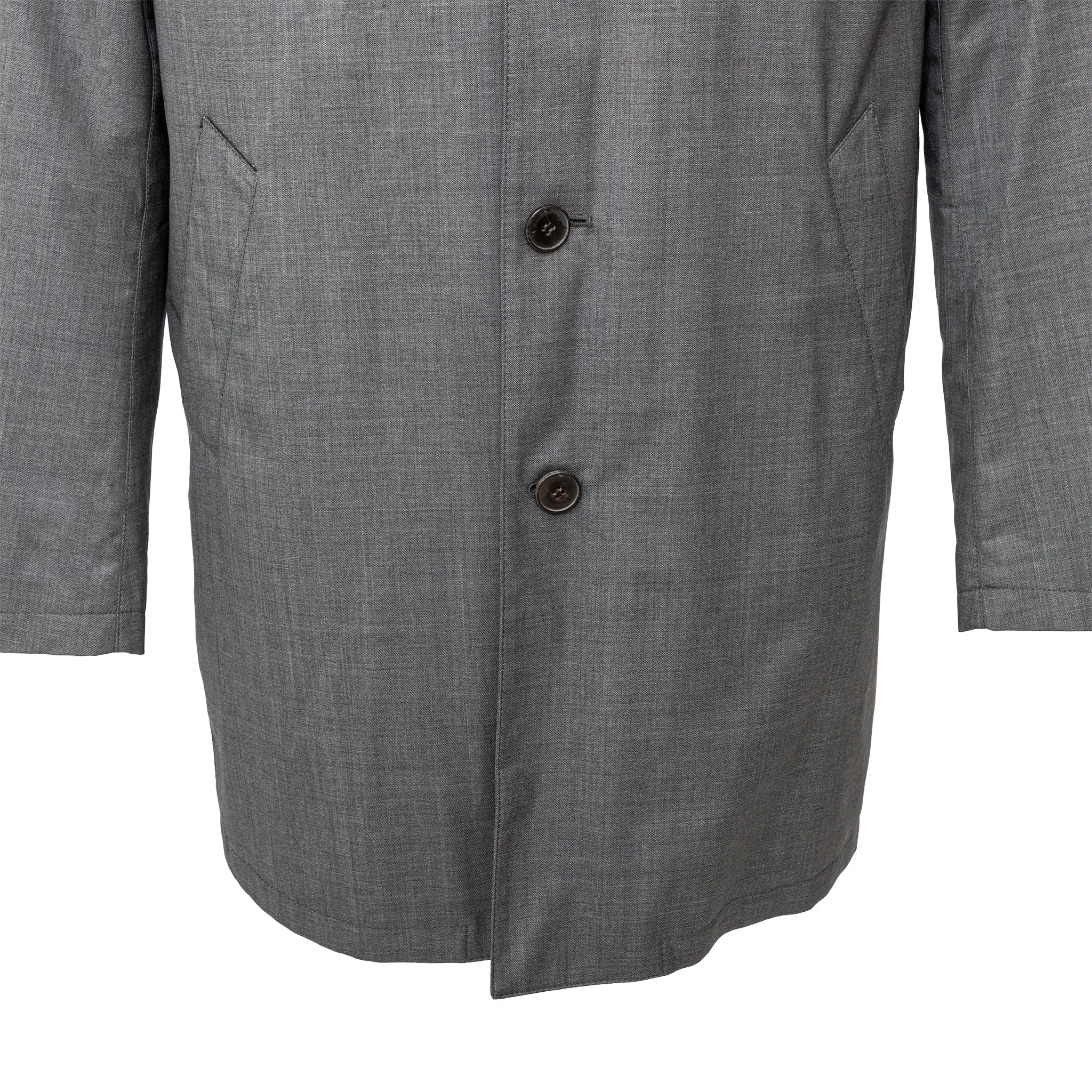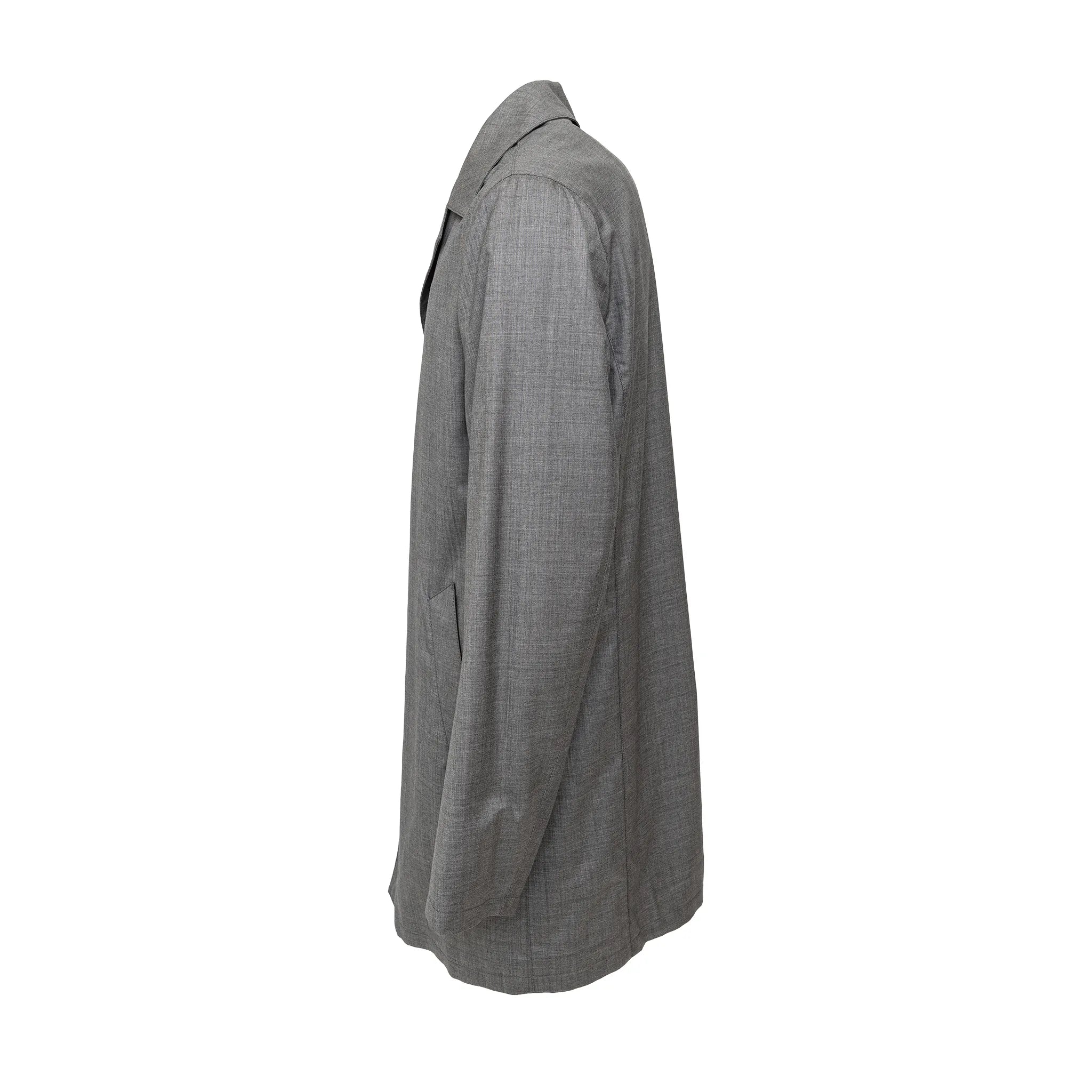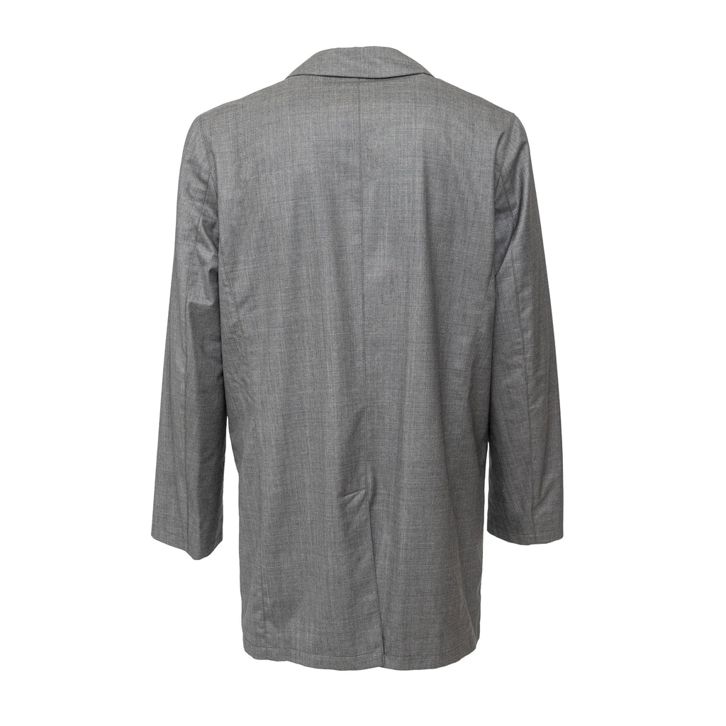 The FG Roma coat in light grey offers a sleek long silhouette with a front button closure, crafted from 100% wool.