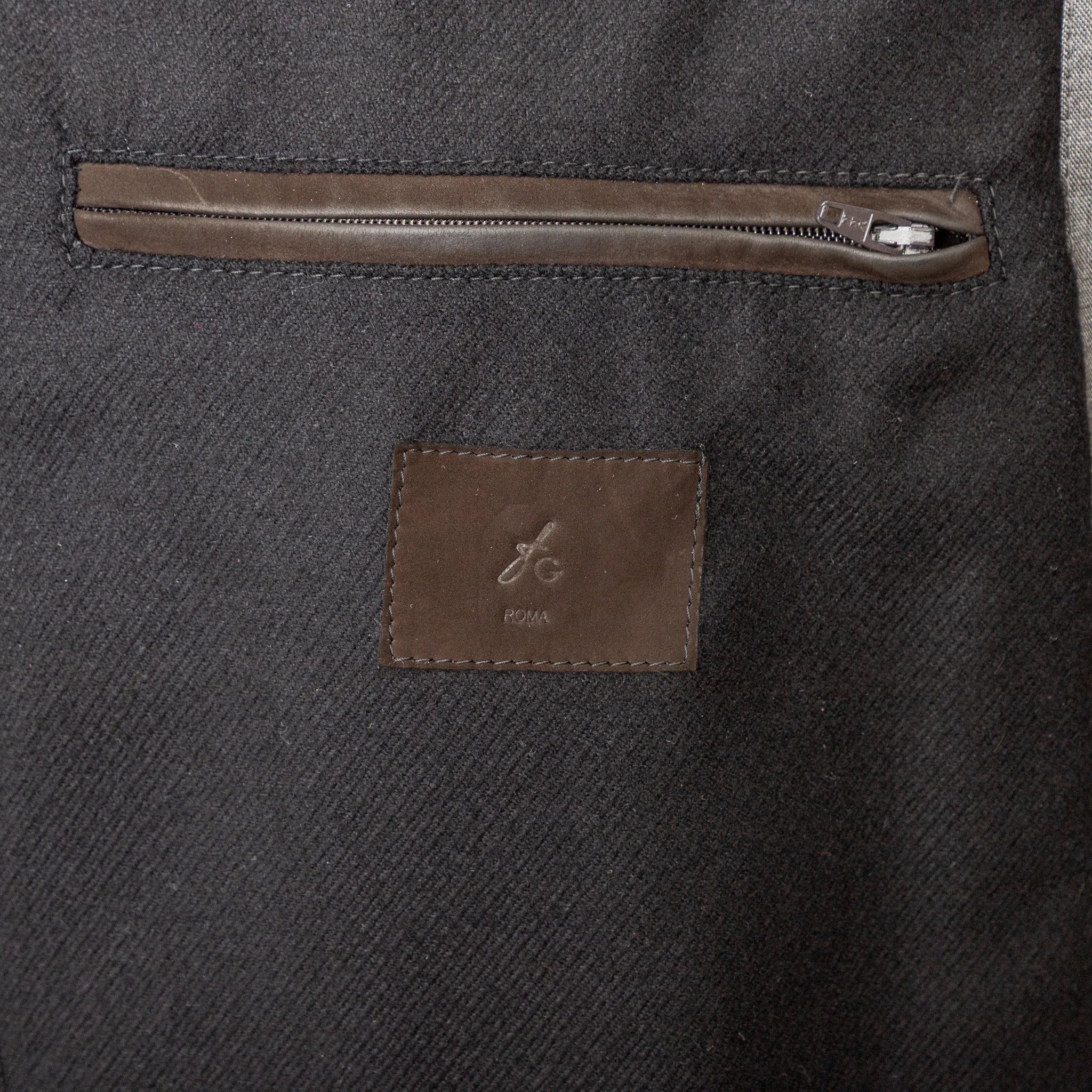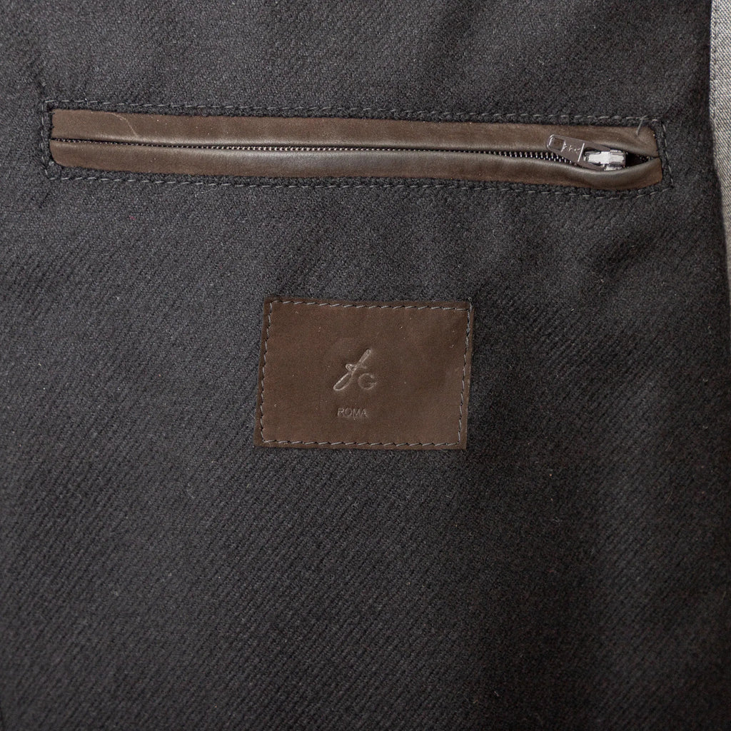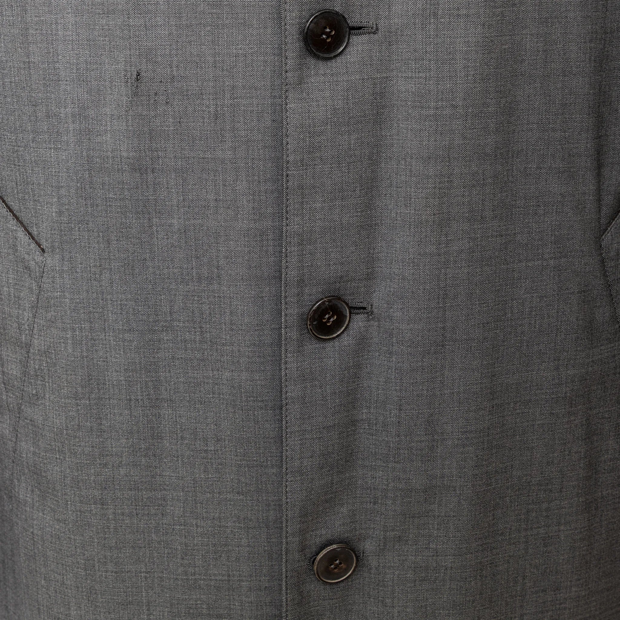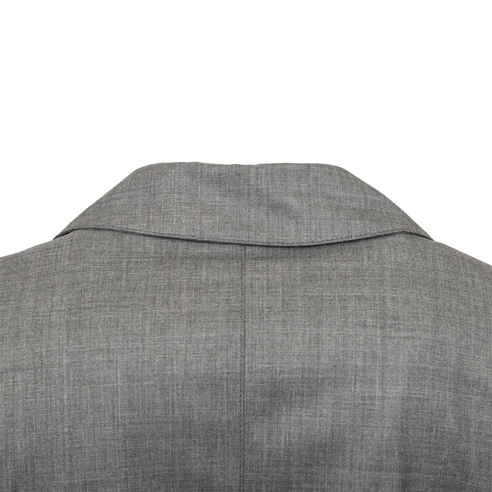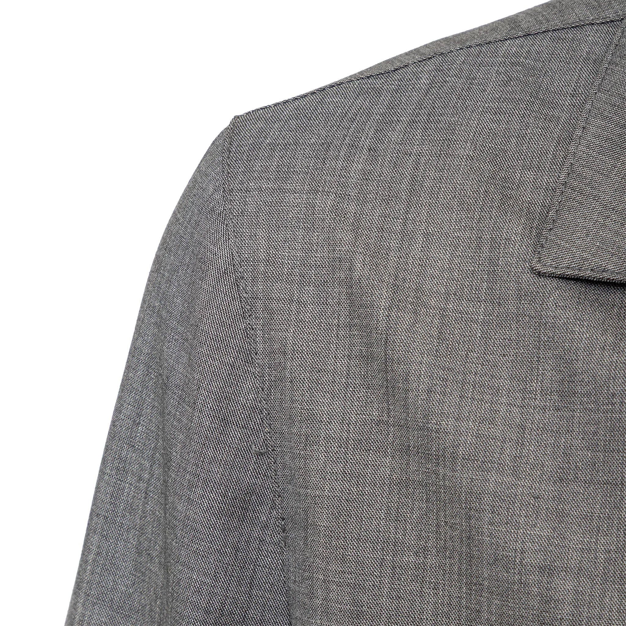 The FG Roma coat in light grey offers a sleek long silhouette with a front button closure, crafted from 100% wool.