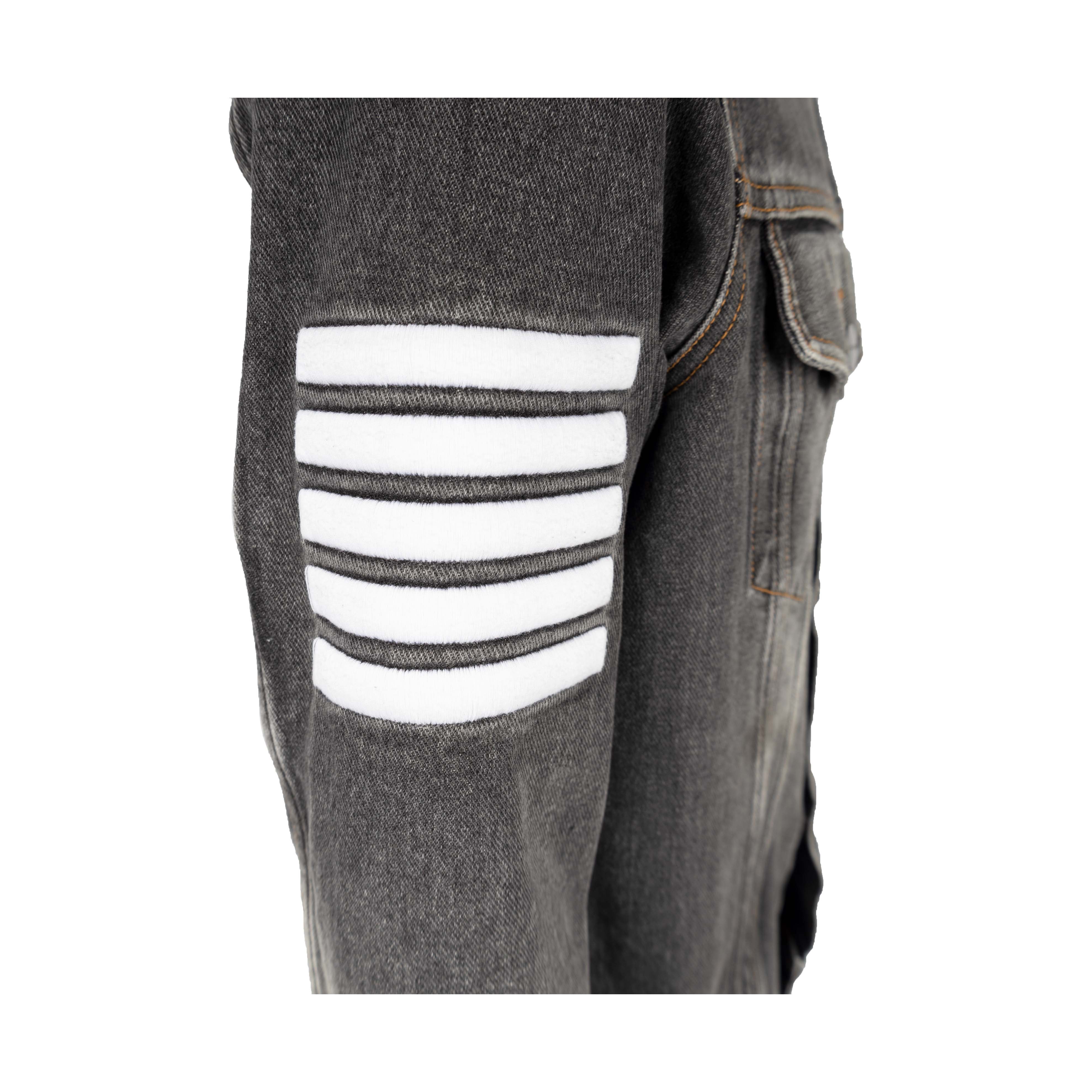 This Palm Angels Denim Jacket features a dark wash, two pockets, long sleeves, and is detailed with prints and patches, making it a timeless, stylish favorite.