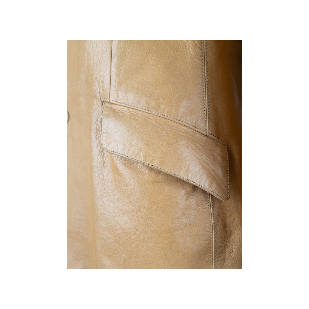 Expertly handcrafted from high-quality tan yellow leather, the Eral55 Leather Jacket has a vintage style. Featuring a notched collar and 3 front button closure to give it a classic look. With two front flap pockets, this jacket is both stylish and functional.