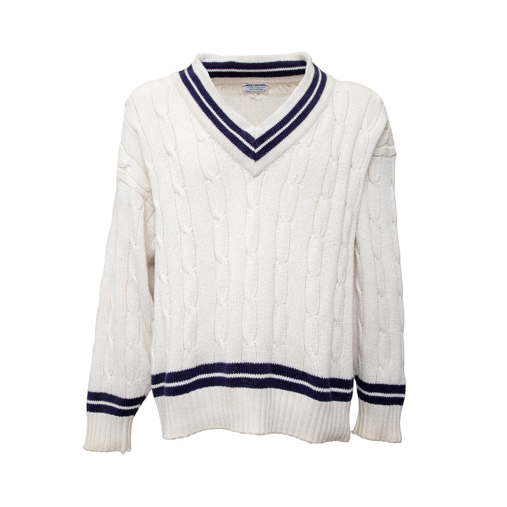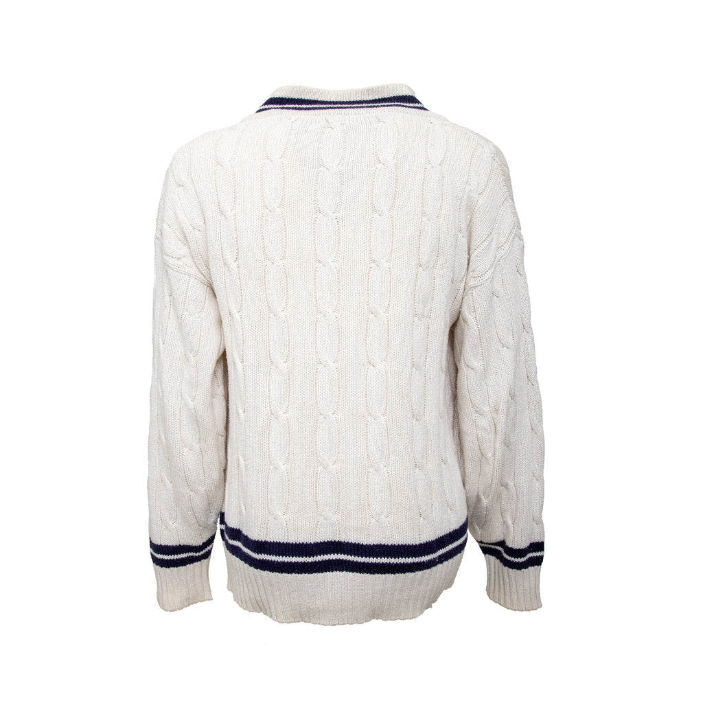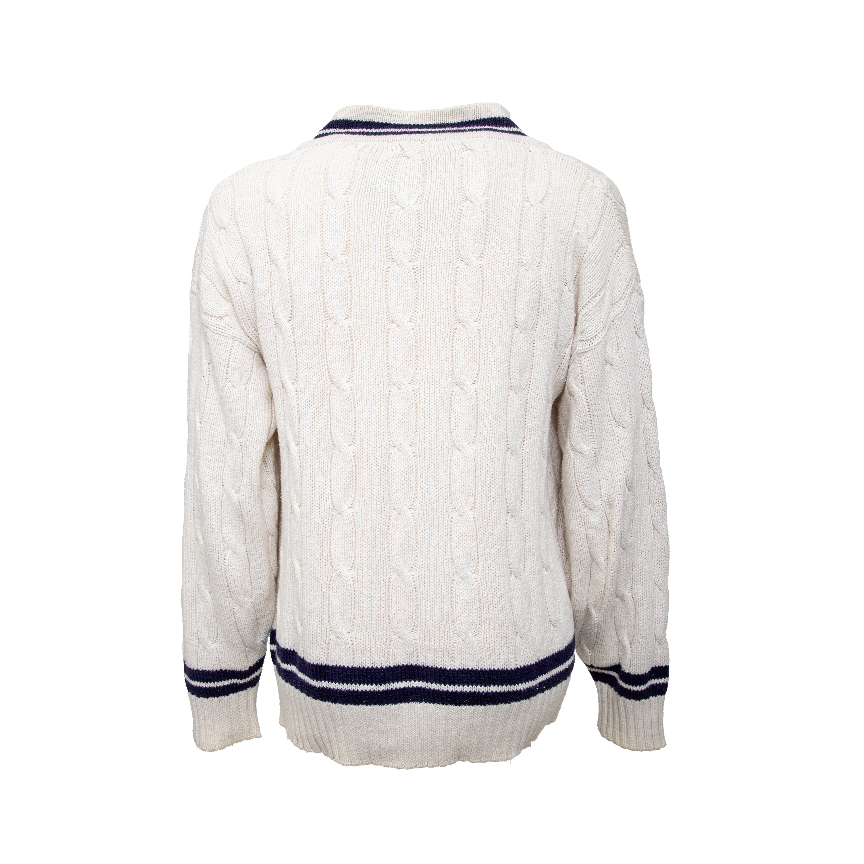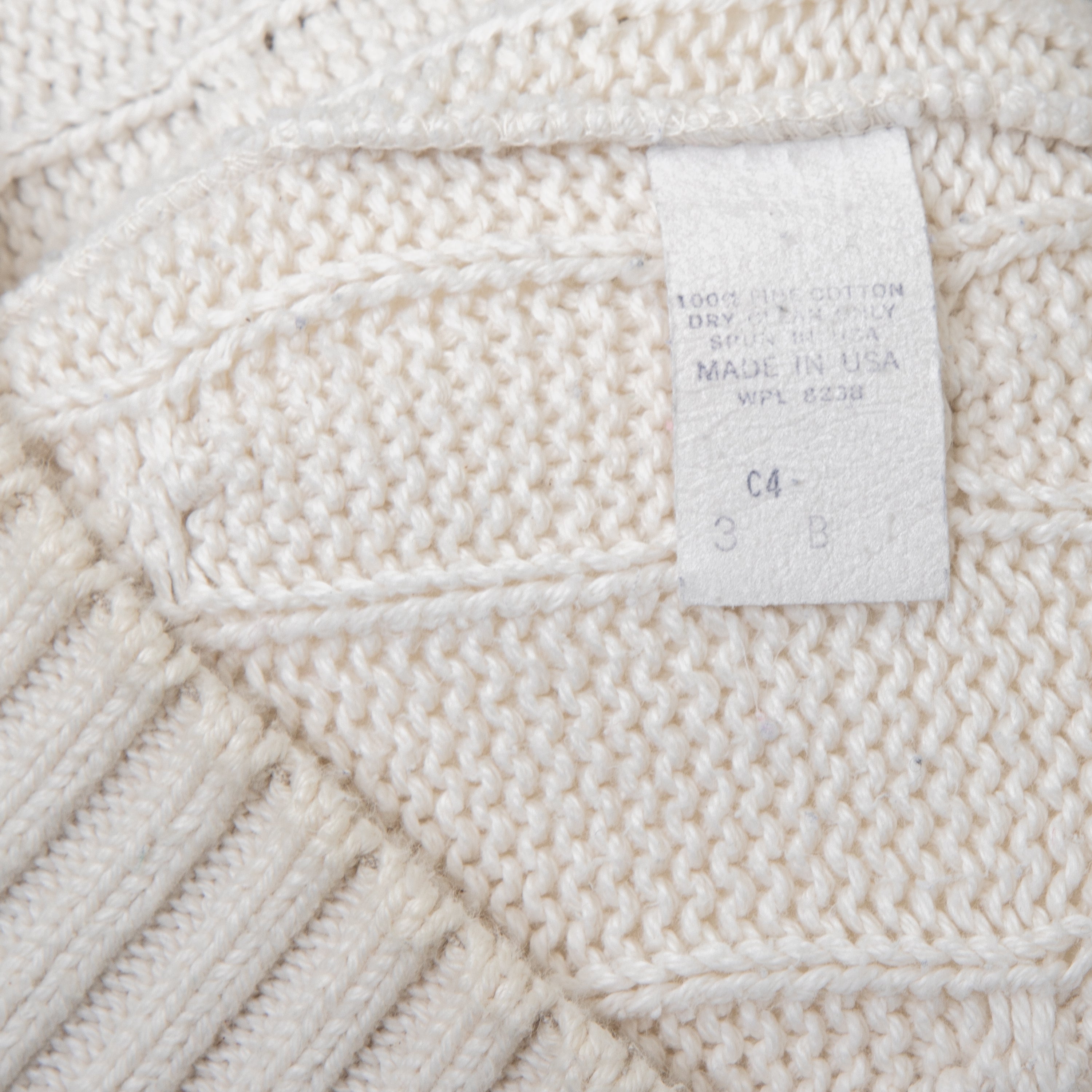 Expertly crafted from soft cotton, the Brooks Brothers Cotton Knit Sweater is a classic addition to any wardrobe. It features cable stitching in rope pattern and v-neck design, accented with a blue stripe. The off-white color and stripe details at the hem and sleeve hem make this sweater a classic knitwear staple.
