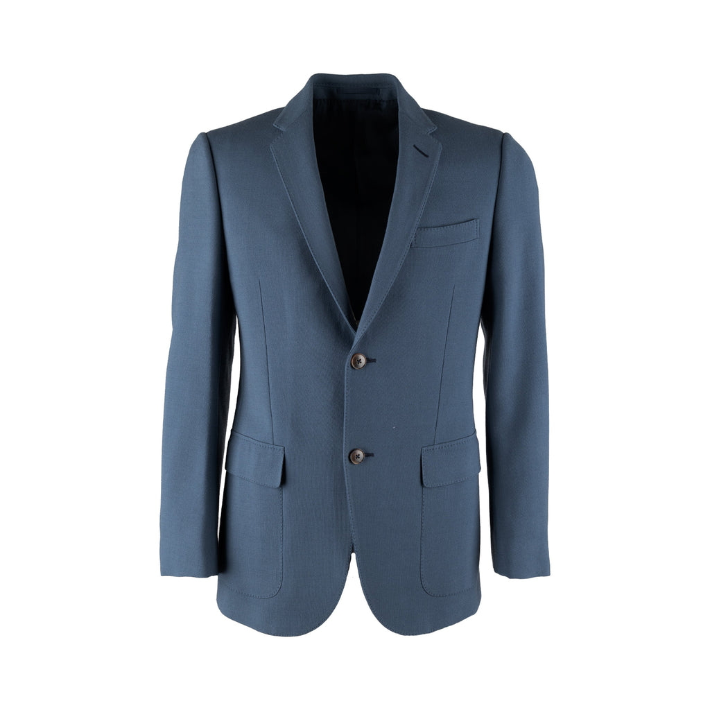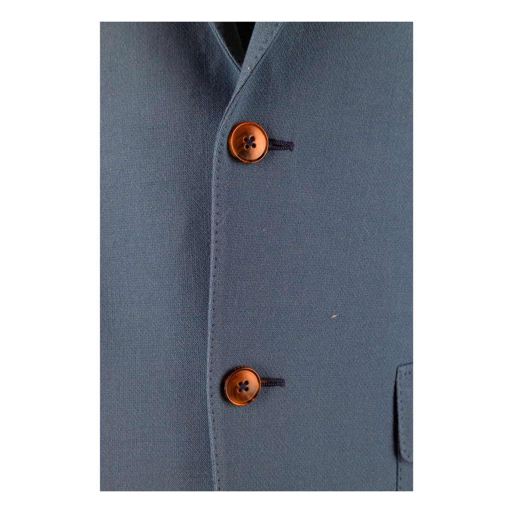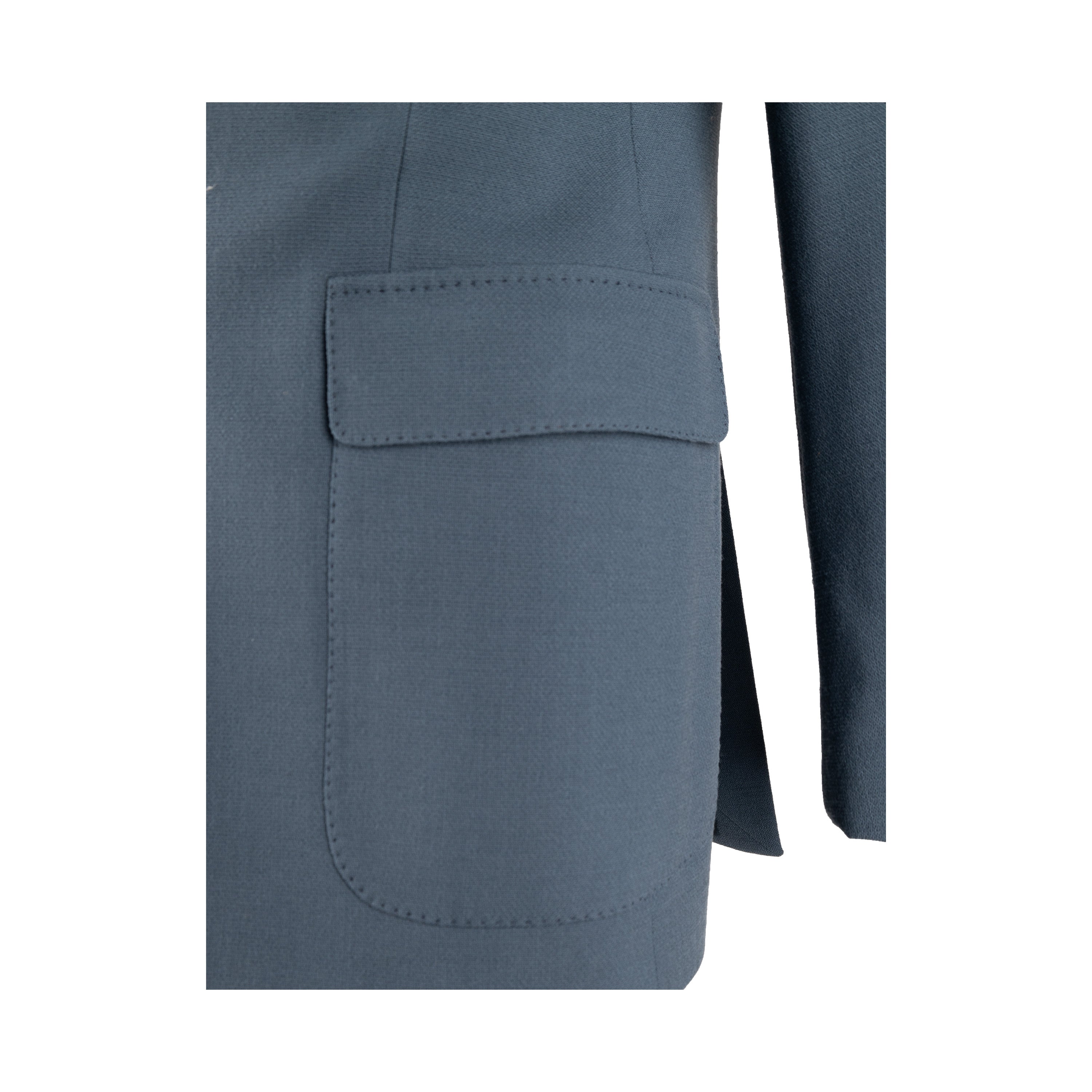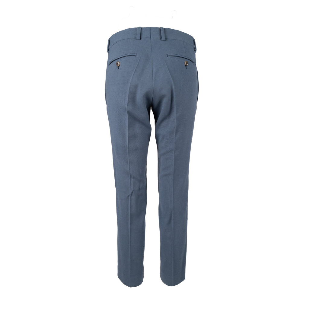 This classic Gucci Blue Suit from the 2000s features a blend of wool and elastane for a comfortable, tailored fit. Details include a notched lapel collar with two front buttons, along with front flap pockets and tailored pants with a front zip closure.