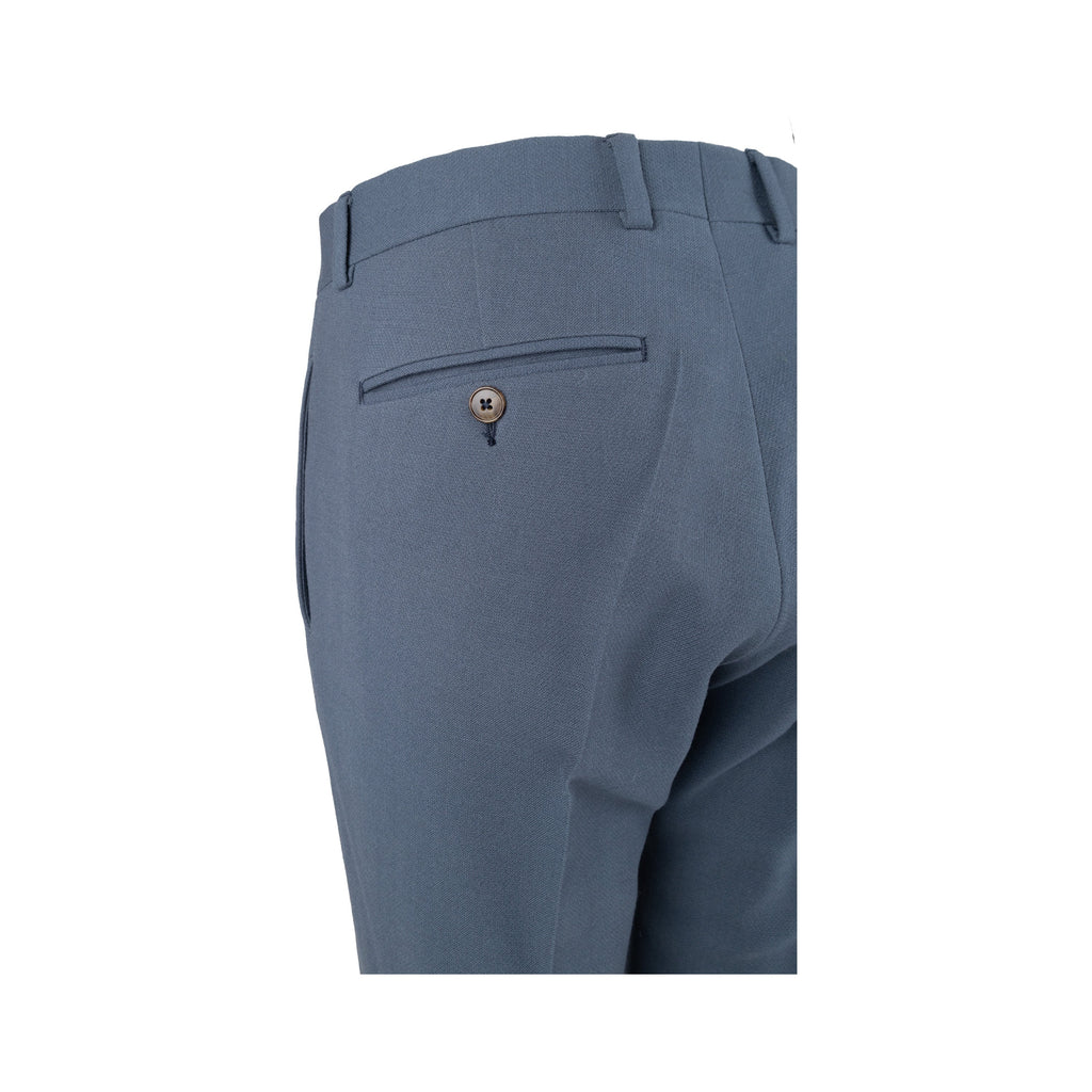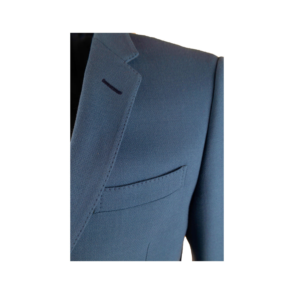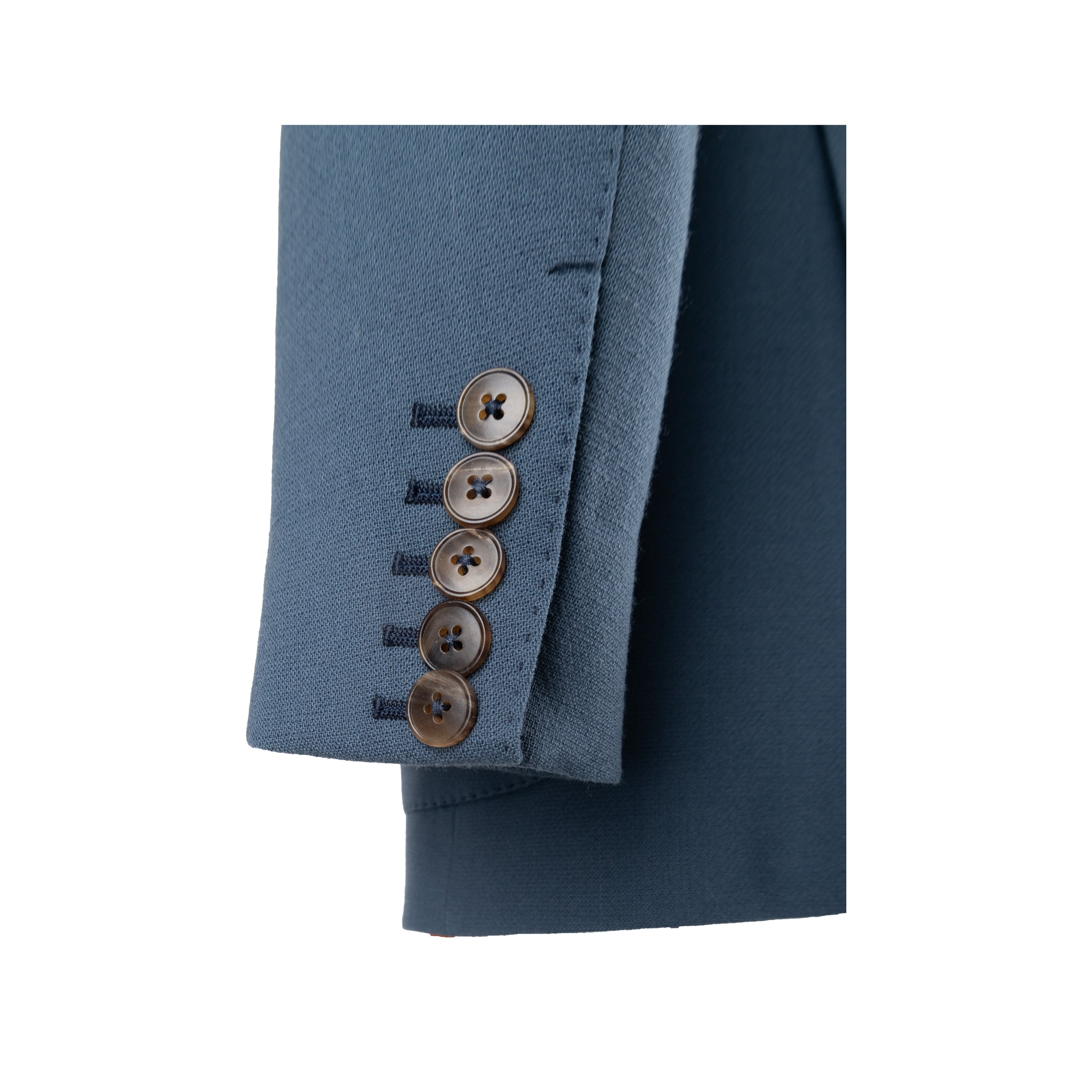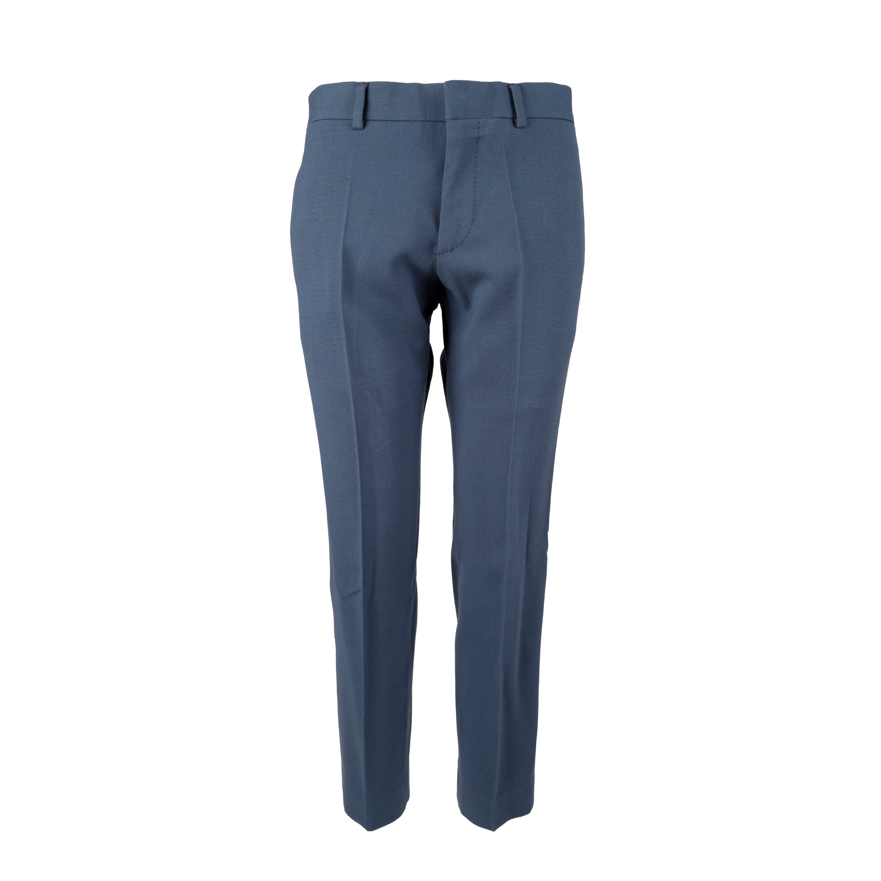 This classic Gucci Blue Suit from the 2000s features a blend of wool and elastane for a comfortable, tailored fit. Details include a notched lapel collar with two front buttons, along with front flap pockets and tailored pants with a front zip closure.