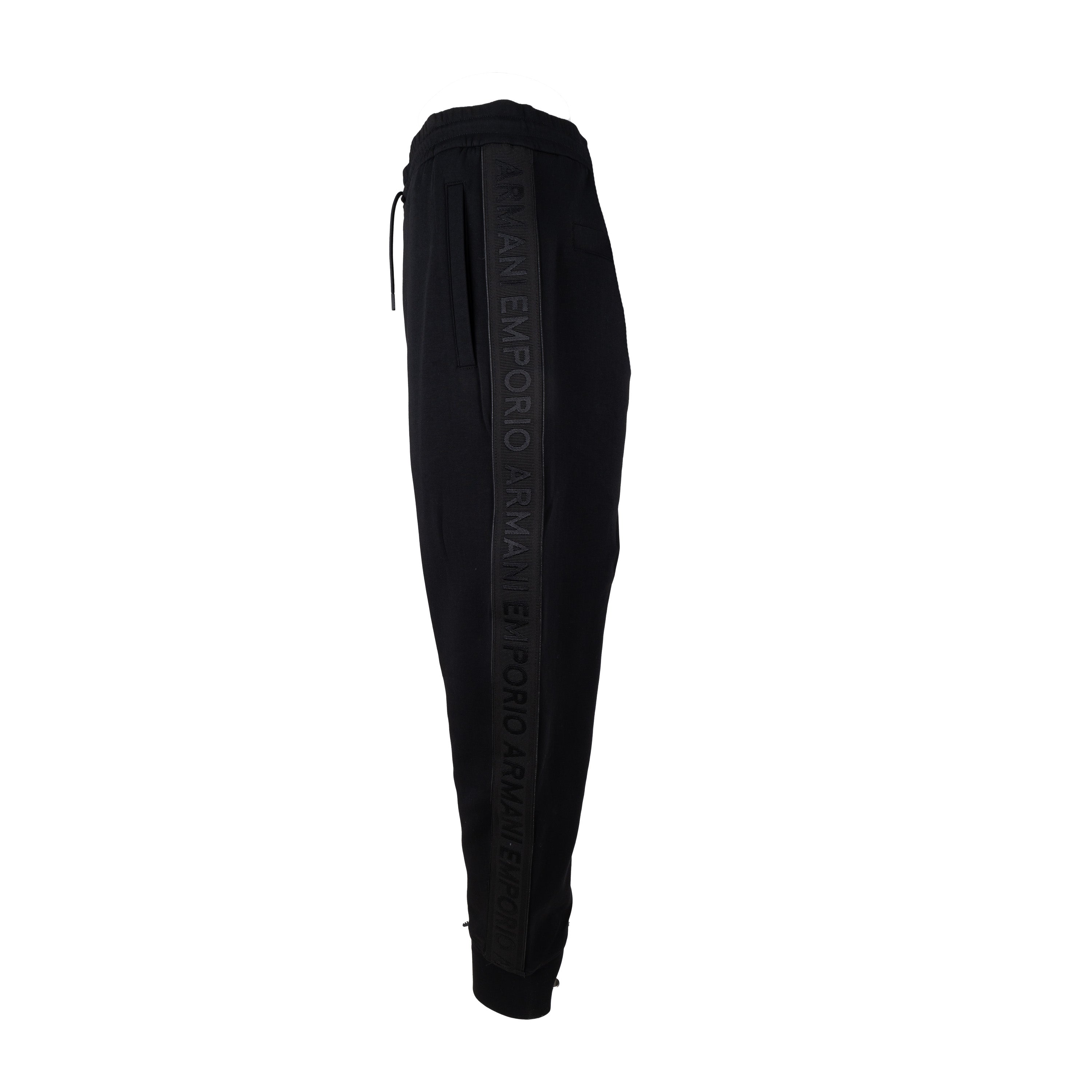 These track pants by Emporio Armani are crafted from a cotton blend fabric, offering a sleek and slim fit. It features logo tape detailing on the side as well as a drawstring fastening.