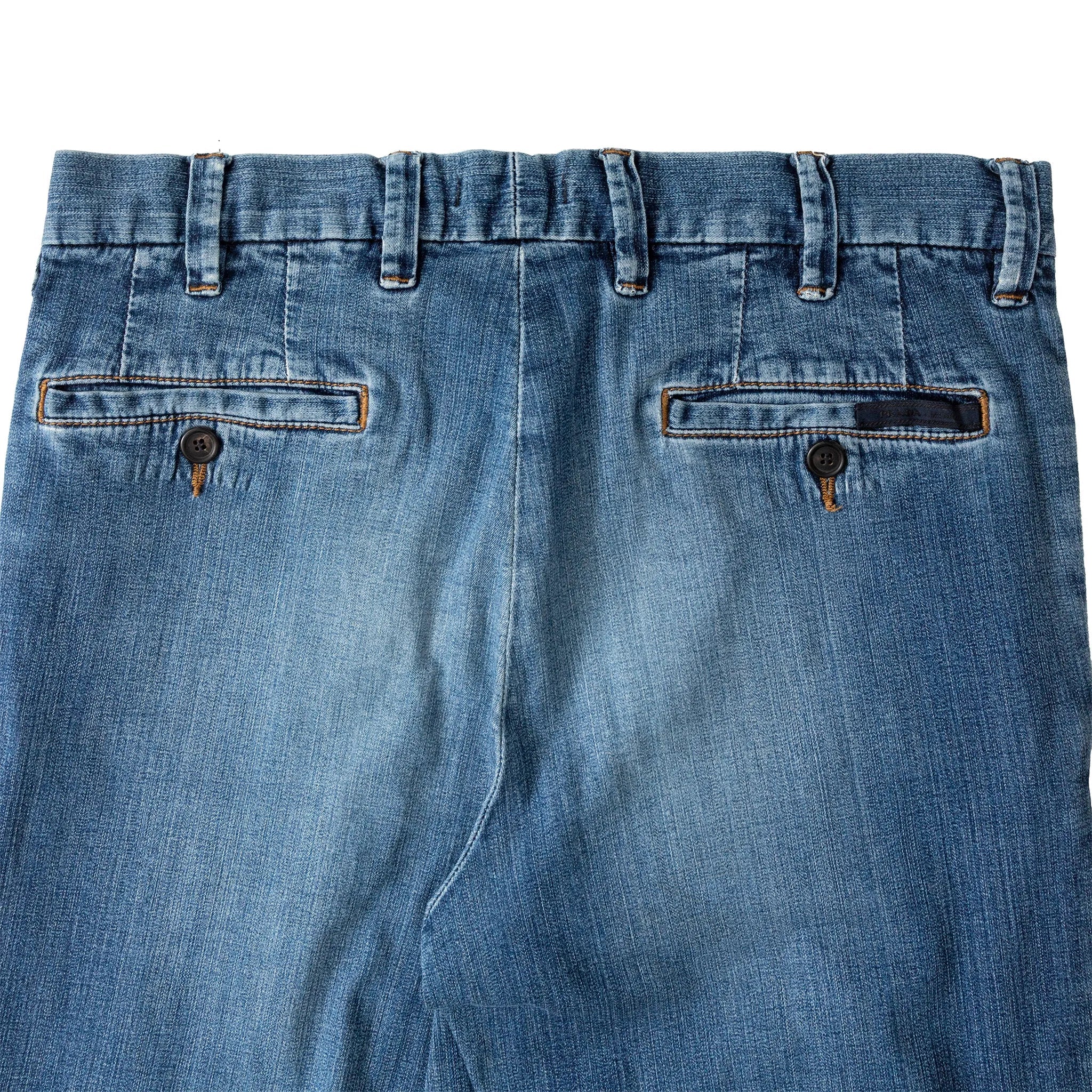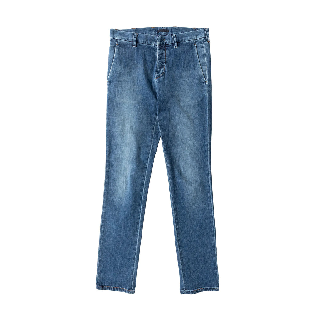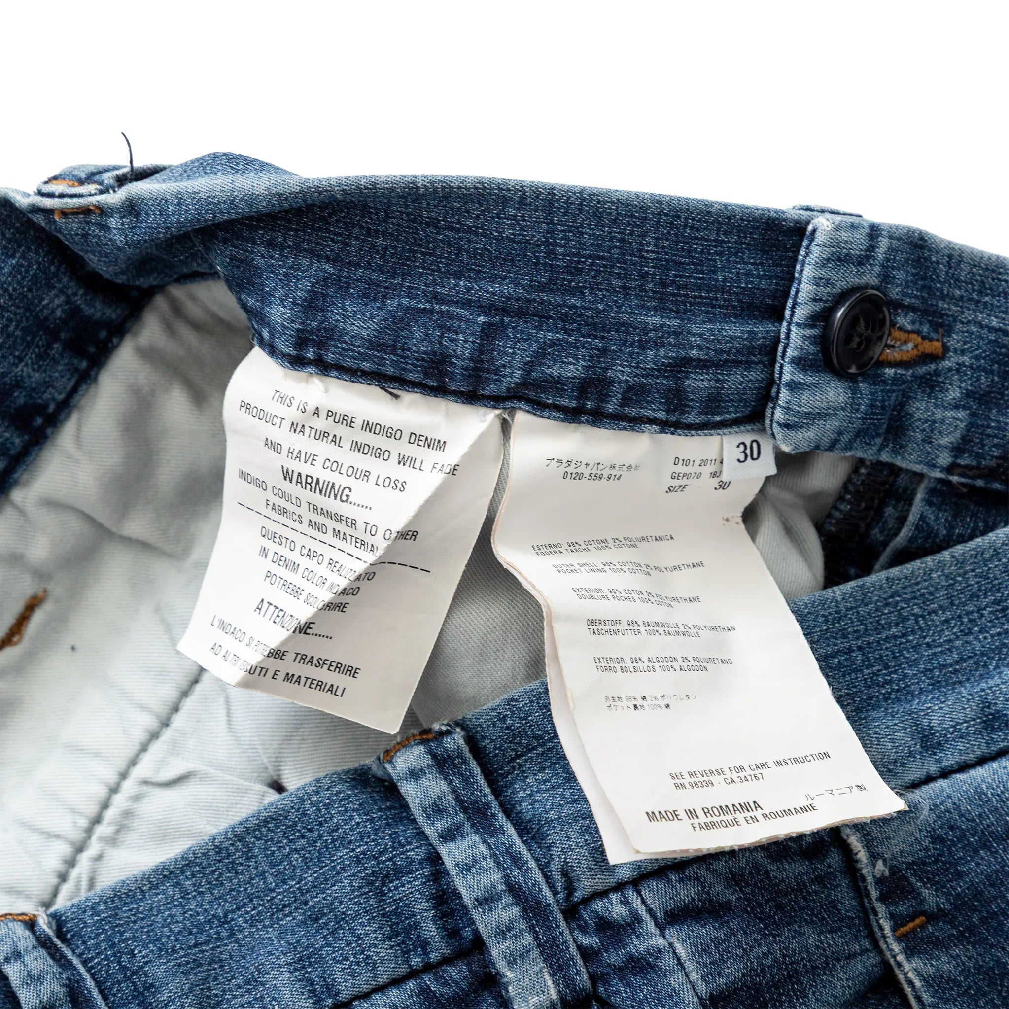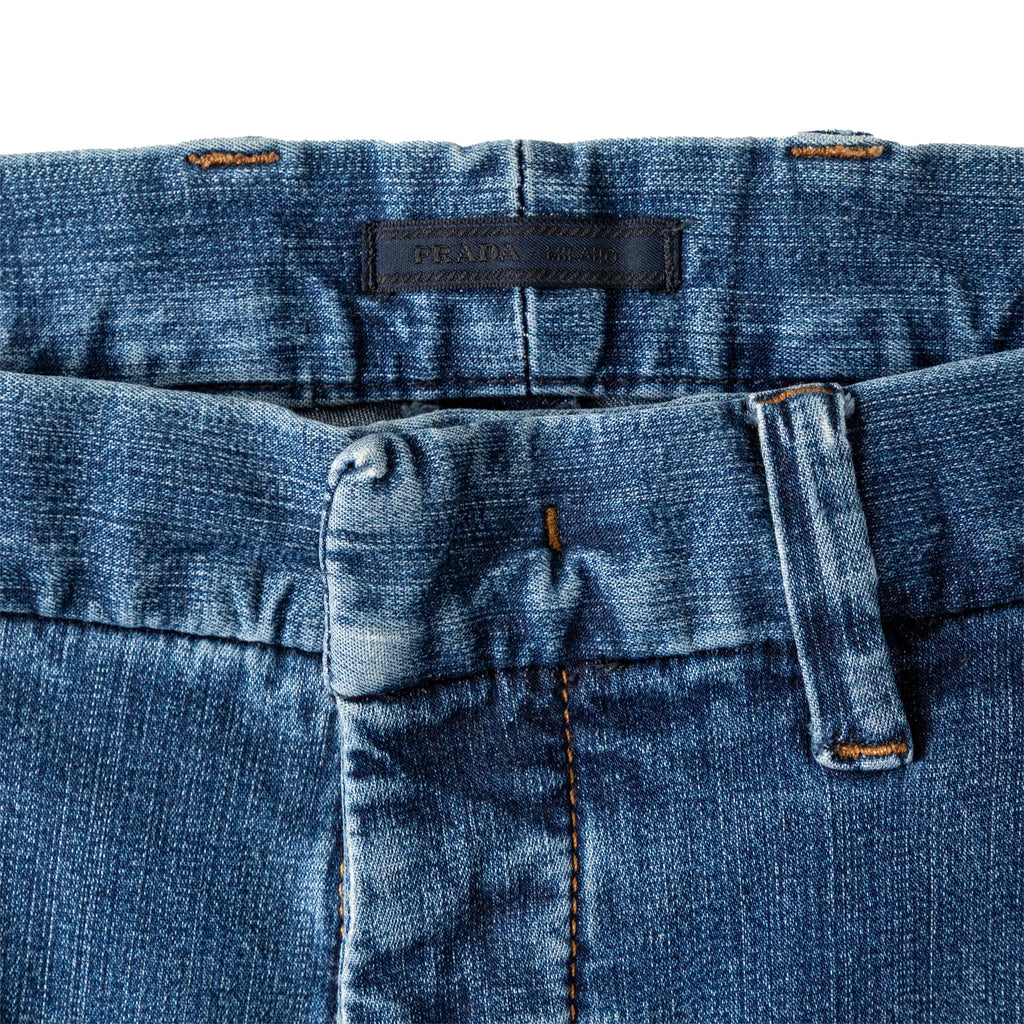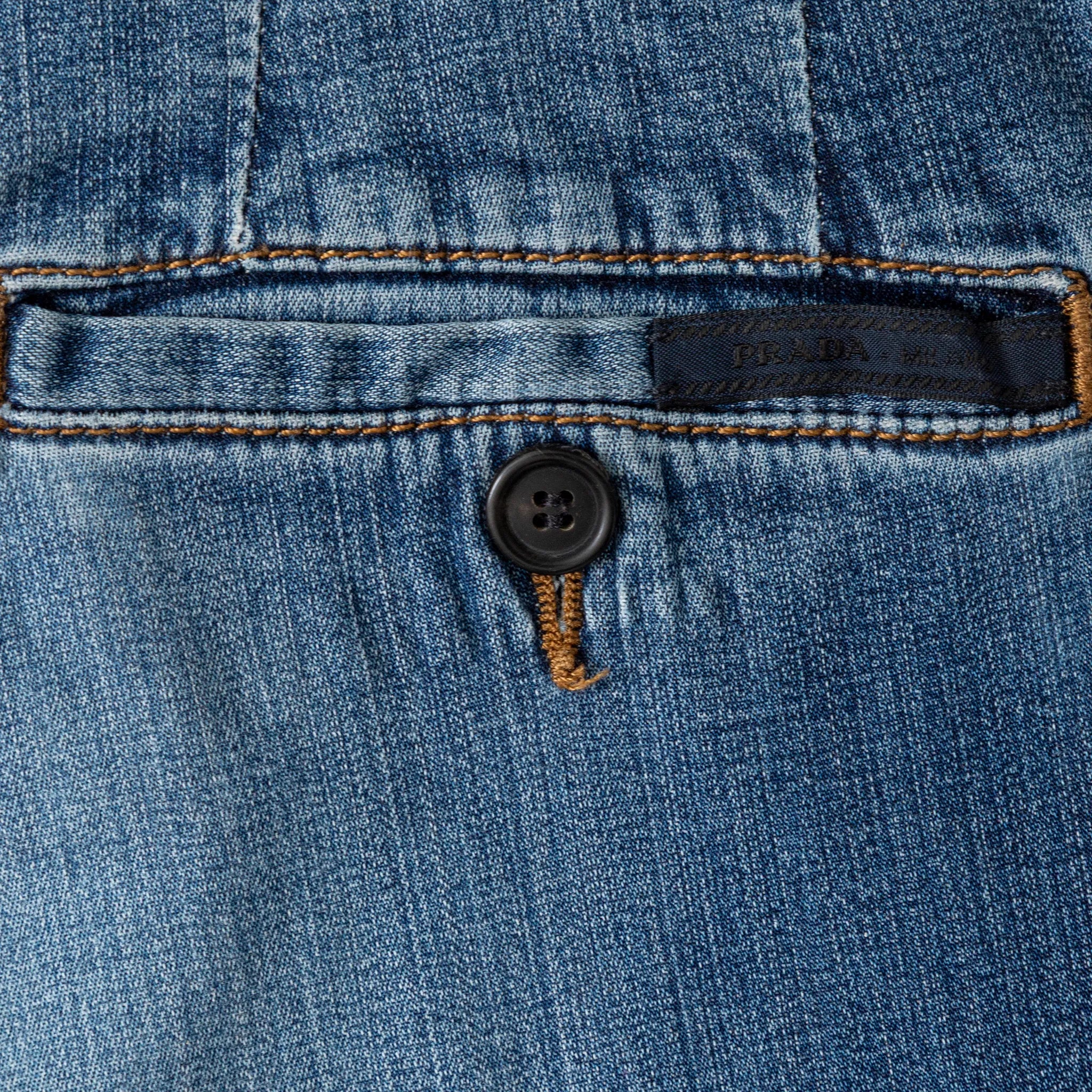Prada indigo denim pants with a tight fit, button closure, and elastane for comfort. A classic design with a sculpted and comfortable fit.