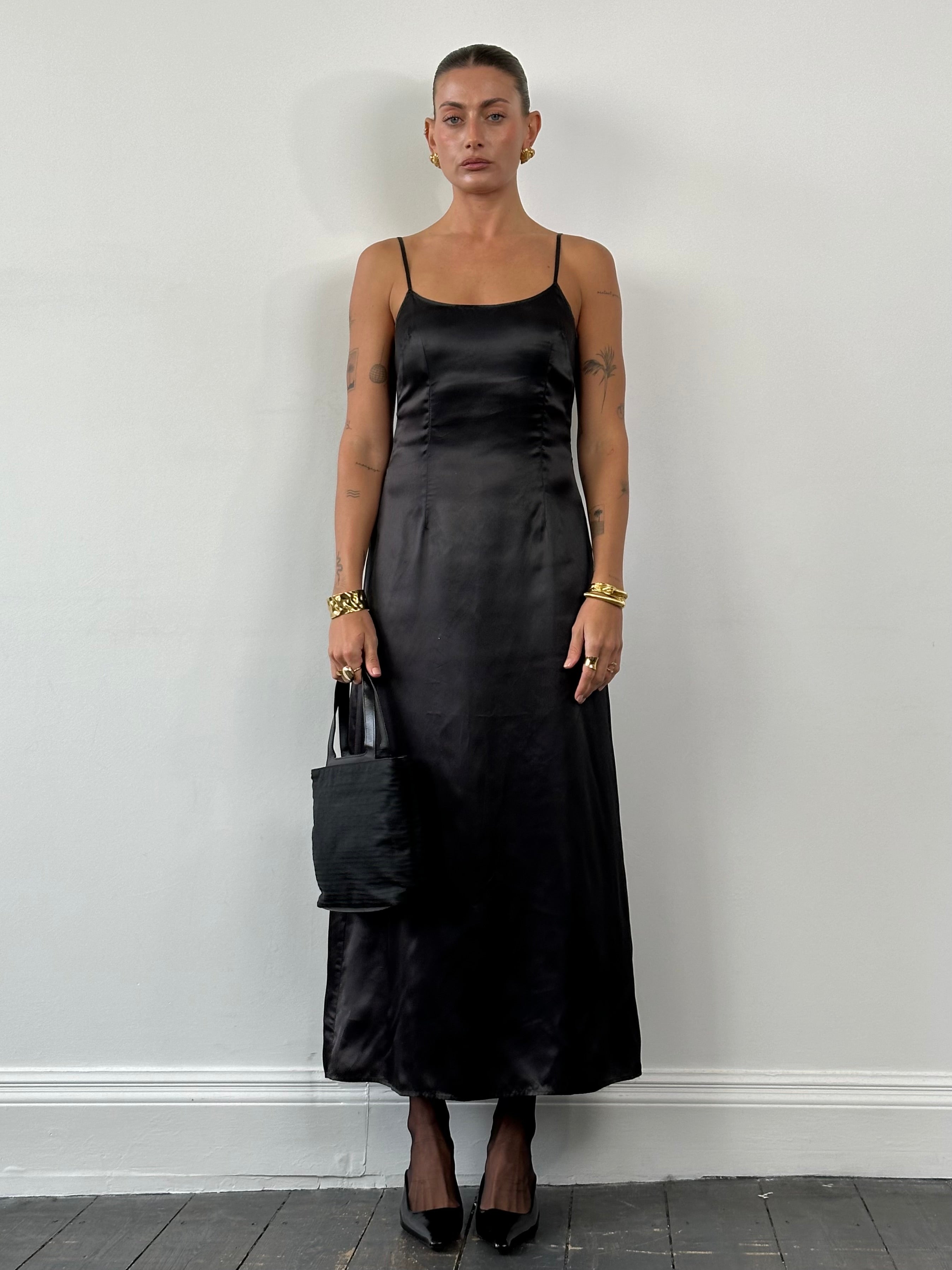 ~ Bias-cut maxi slip silhouette with subtle hem flare