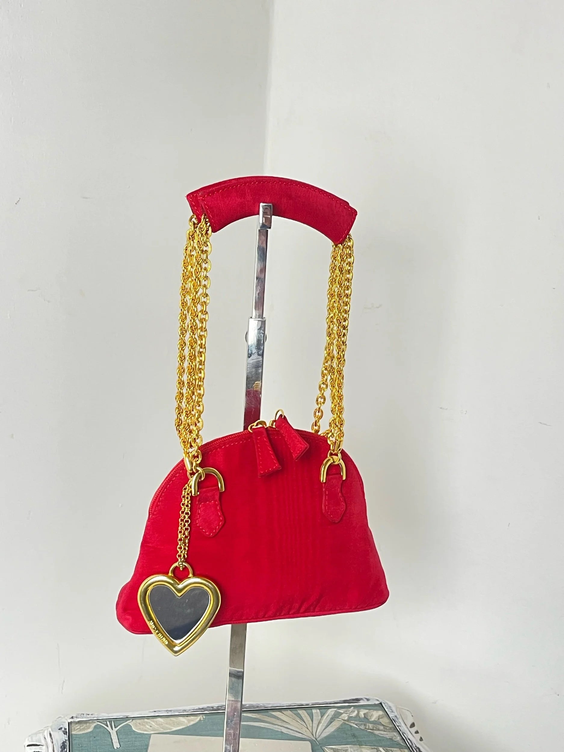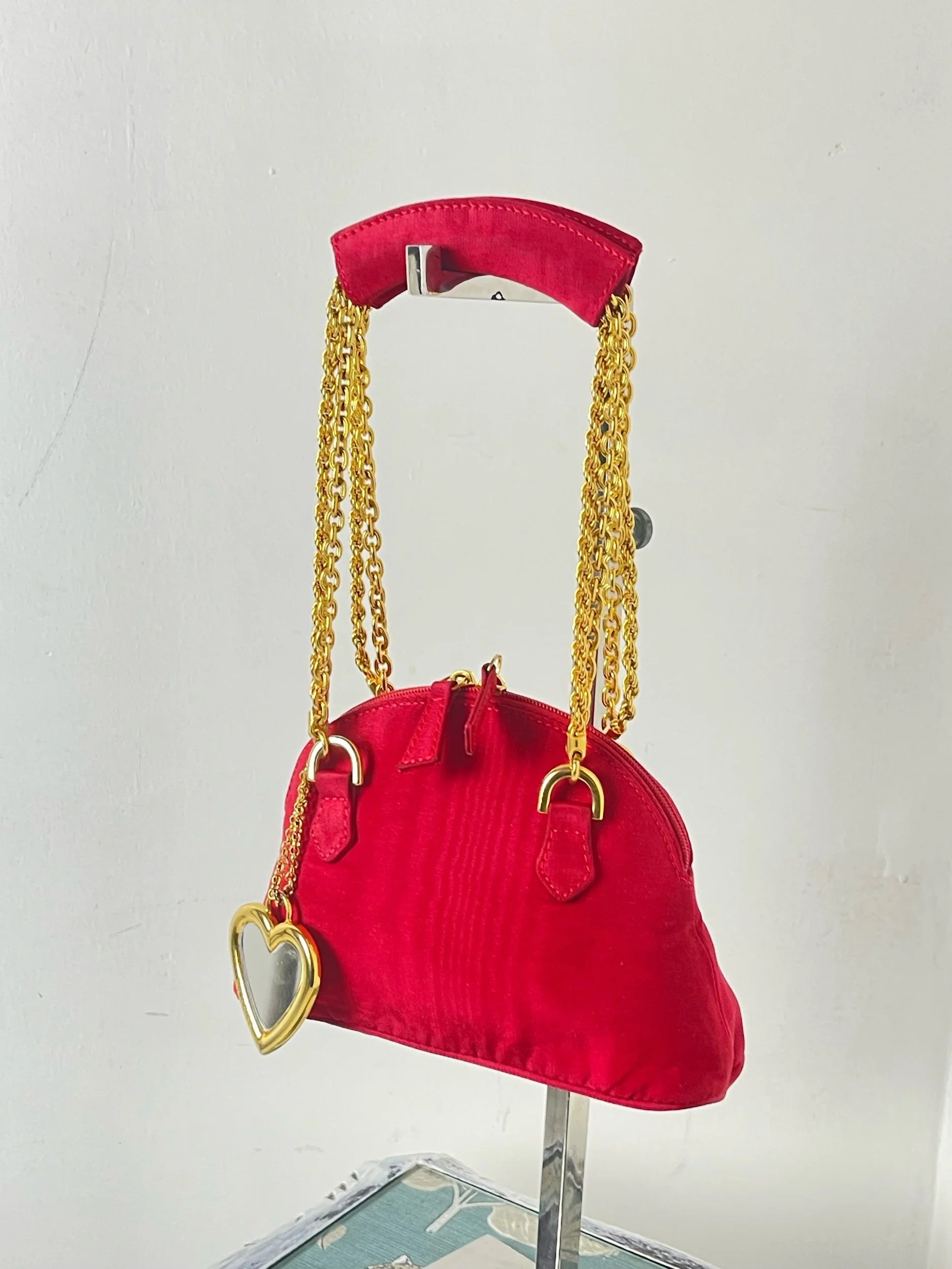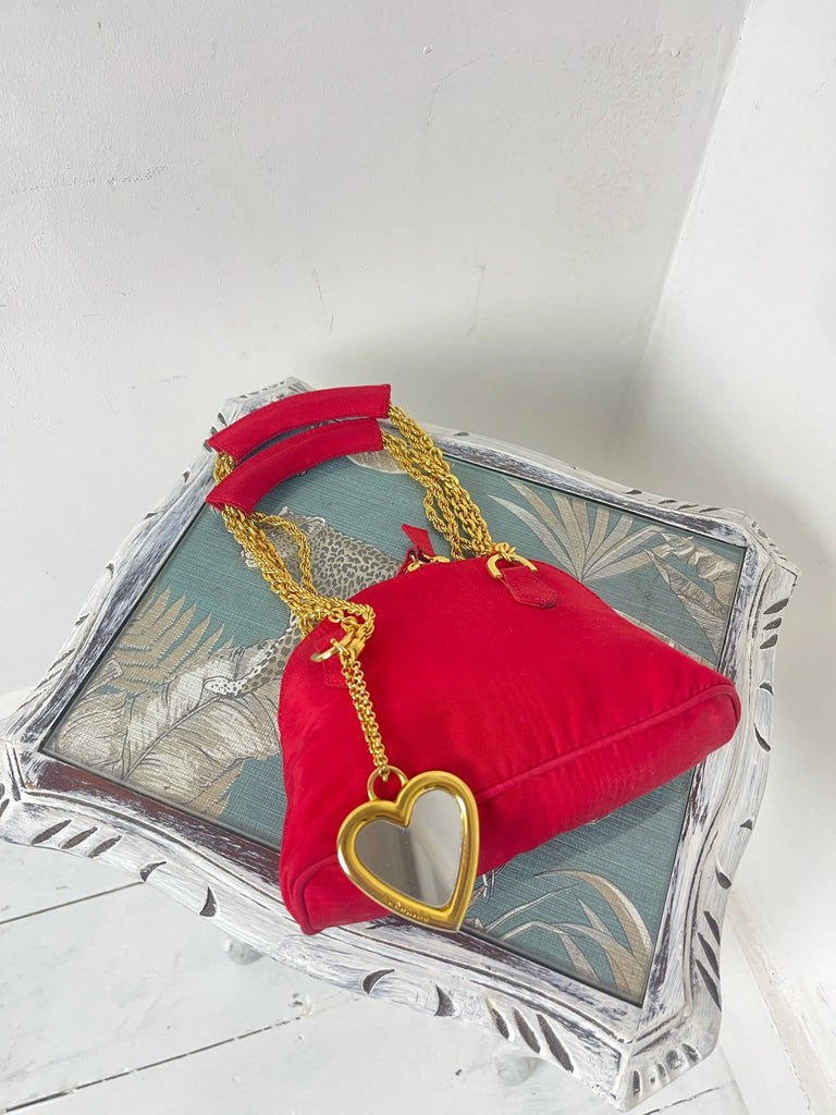 Moschino by Redwall 90s Miniature Evening Bag with Mirrored Heart Charm — Rare Collectible
