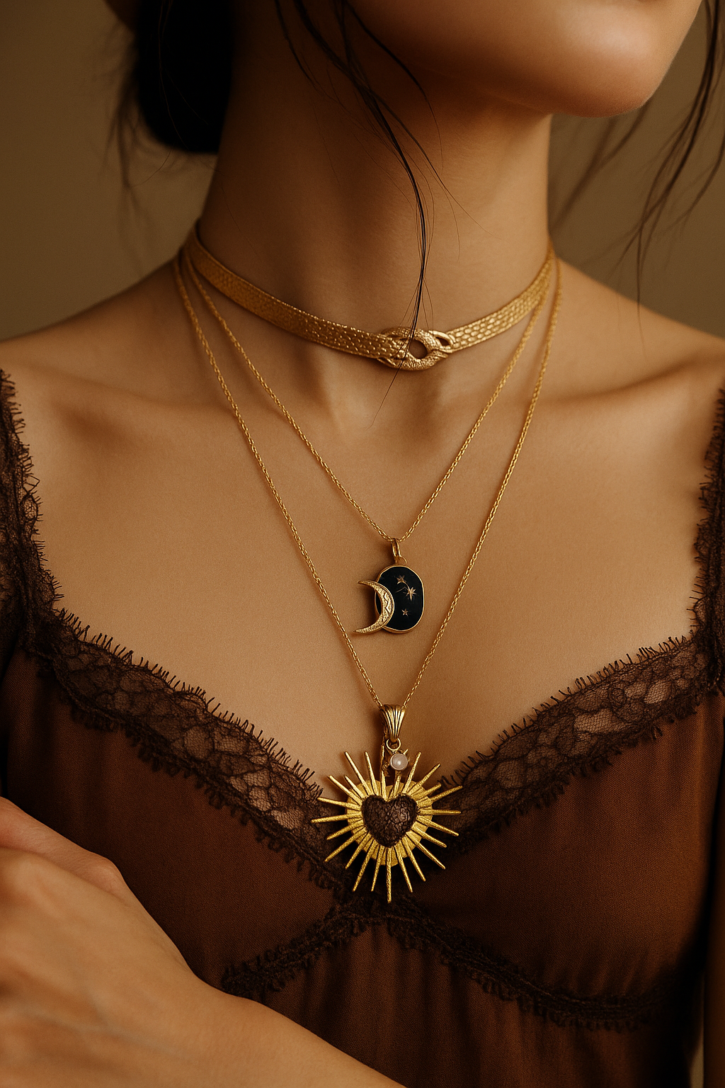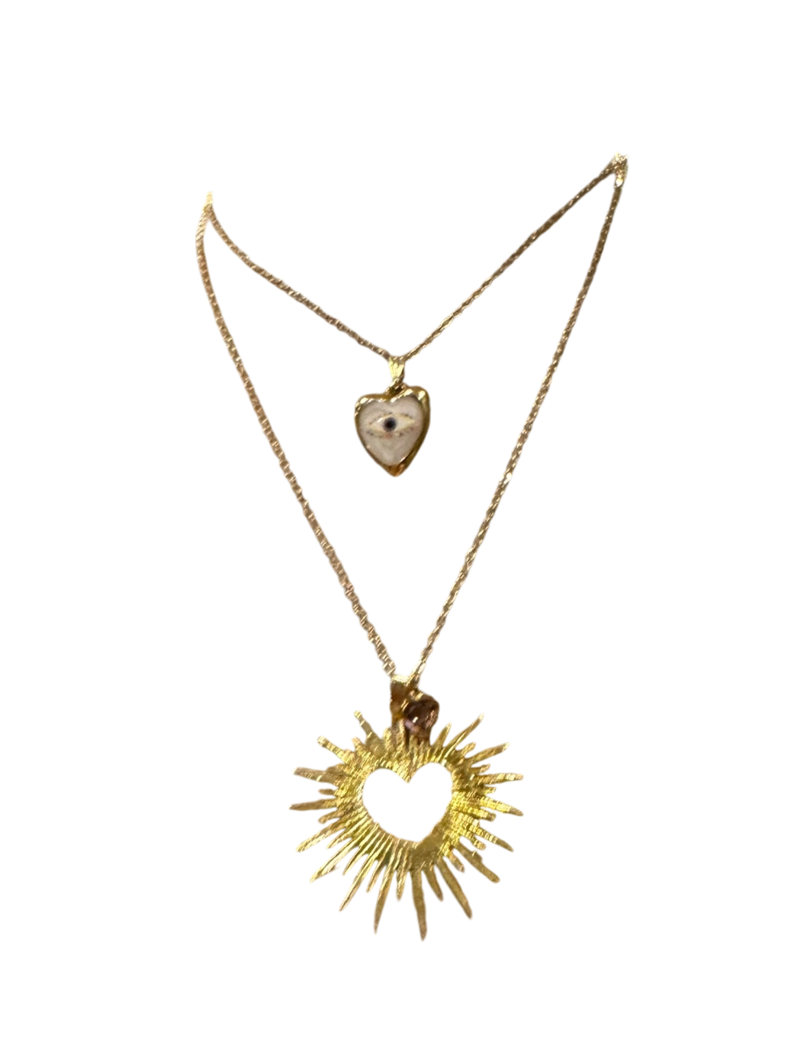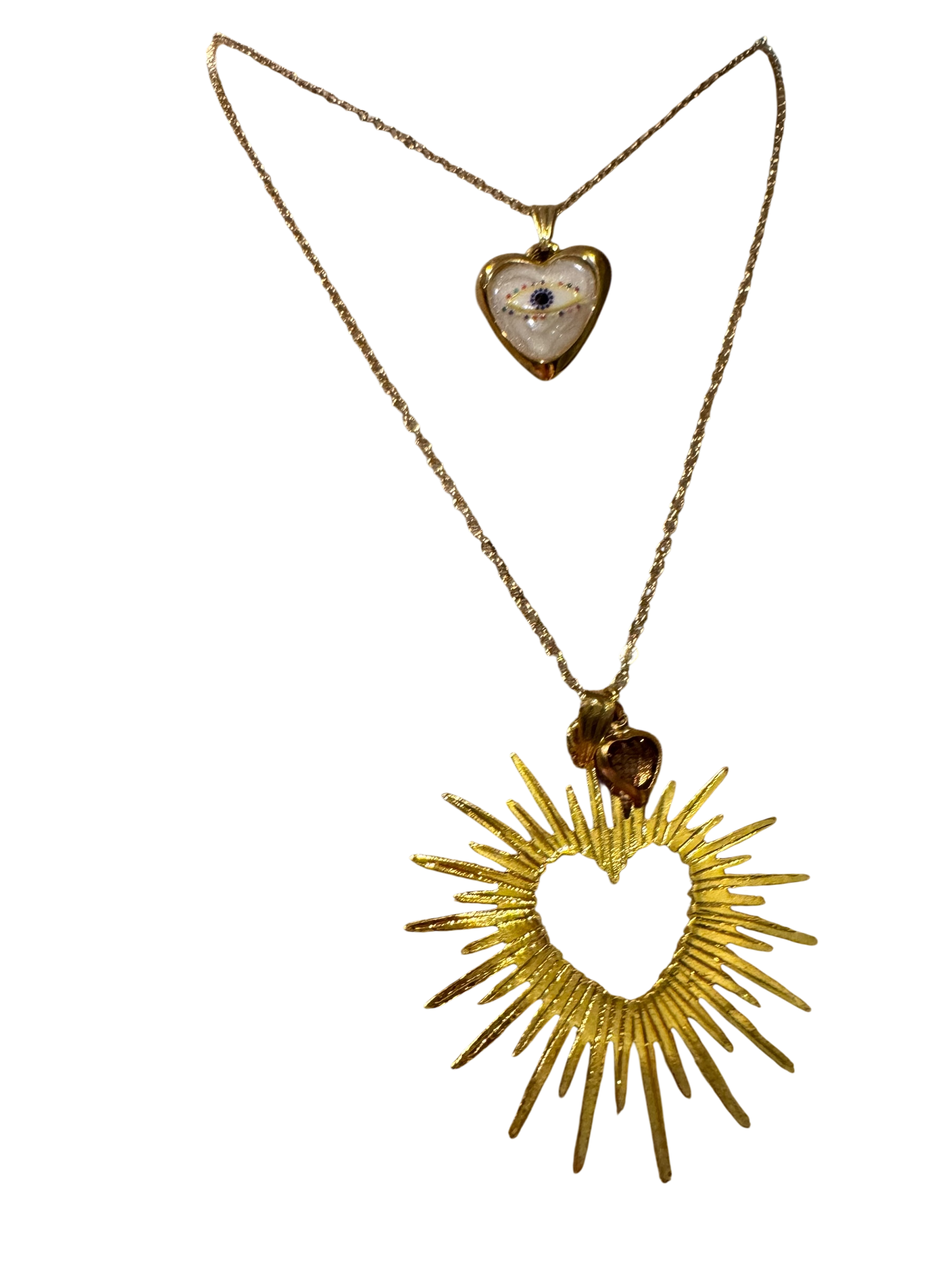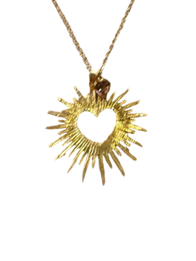 Ash, vintage 14c gold heart burst and droplet on a gold 14c chain