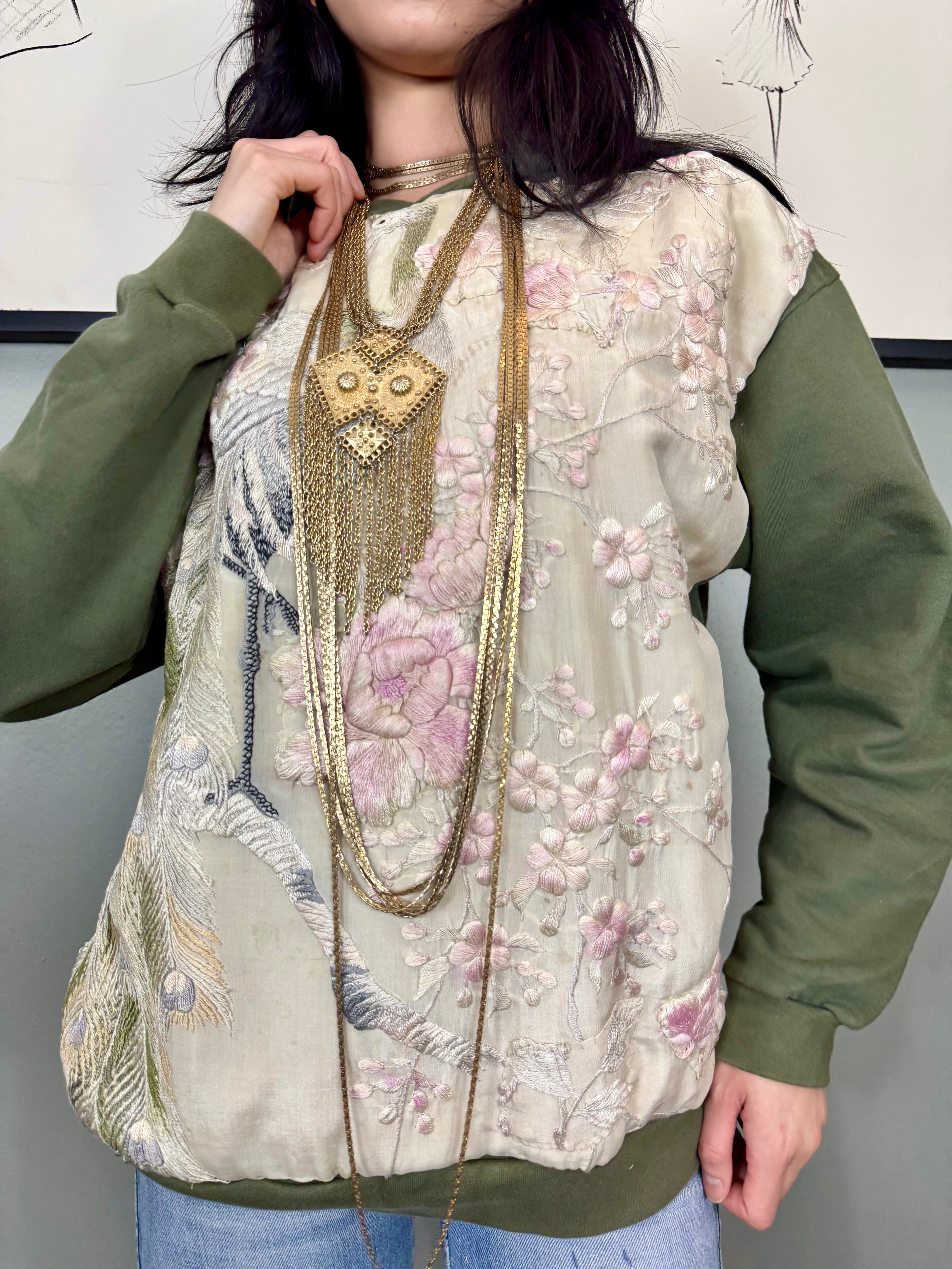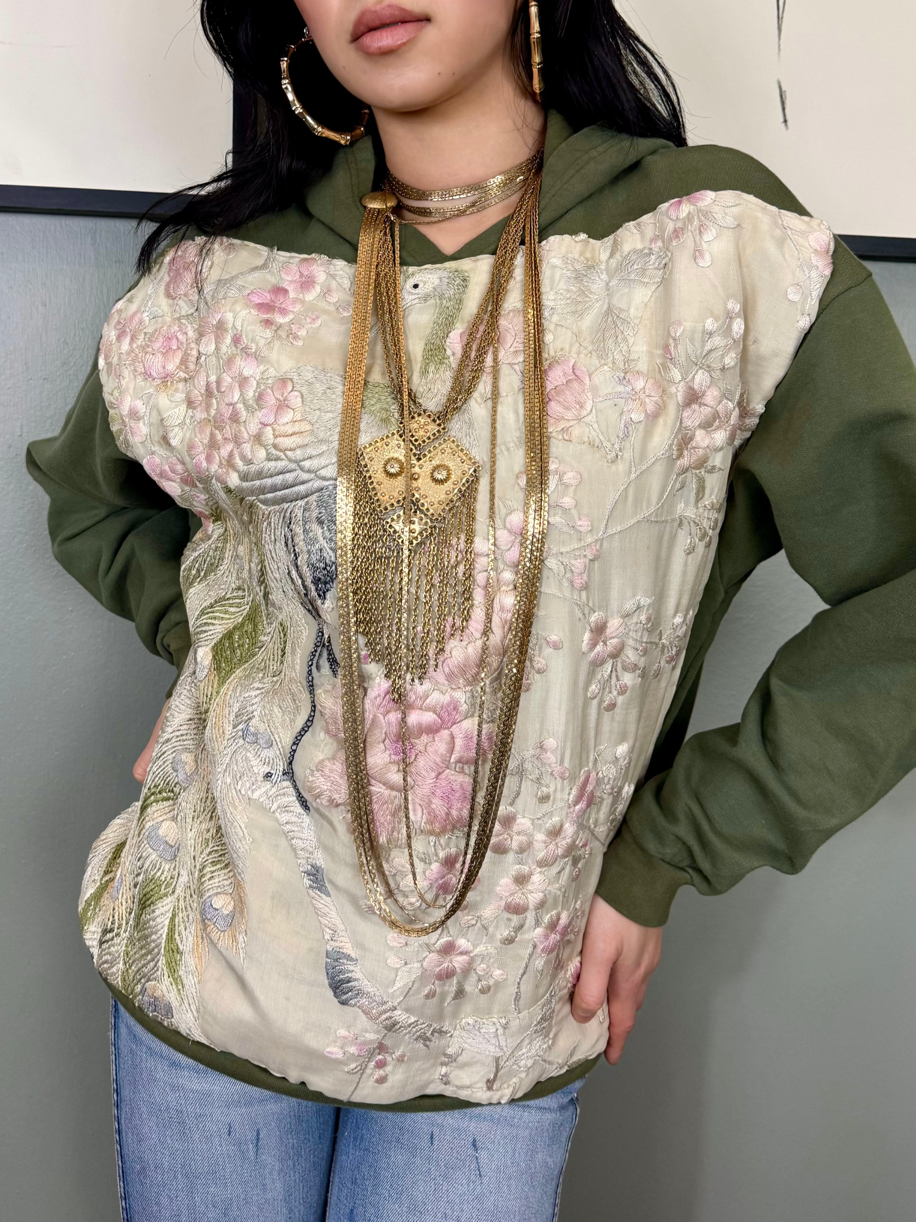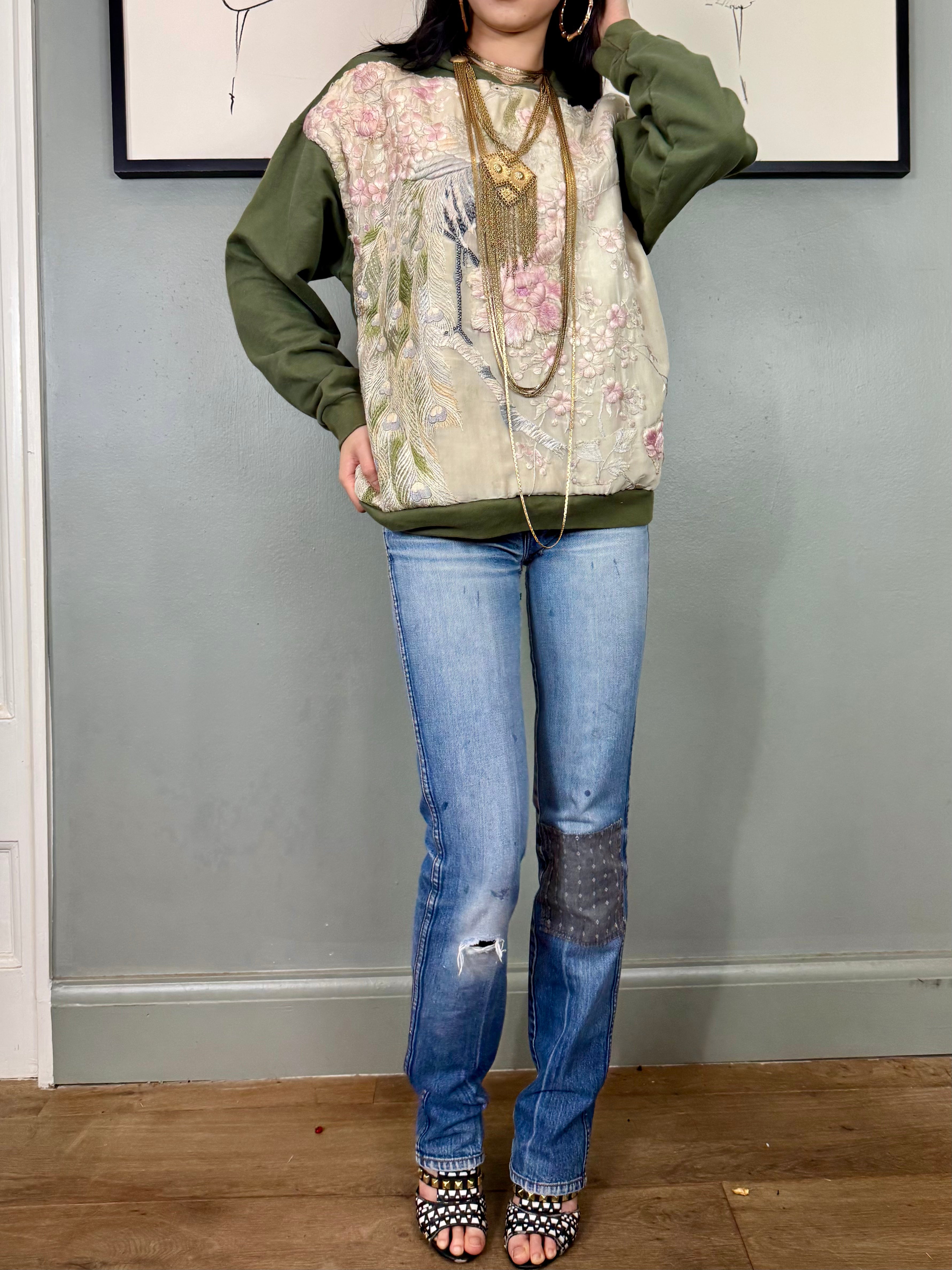 Sestra, vintage hoodie sweatshirt with embroidered silk