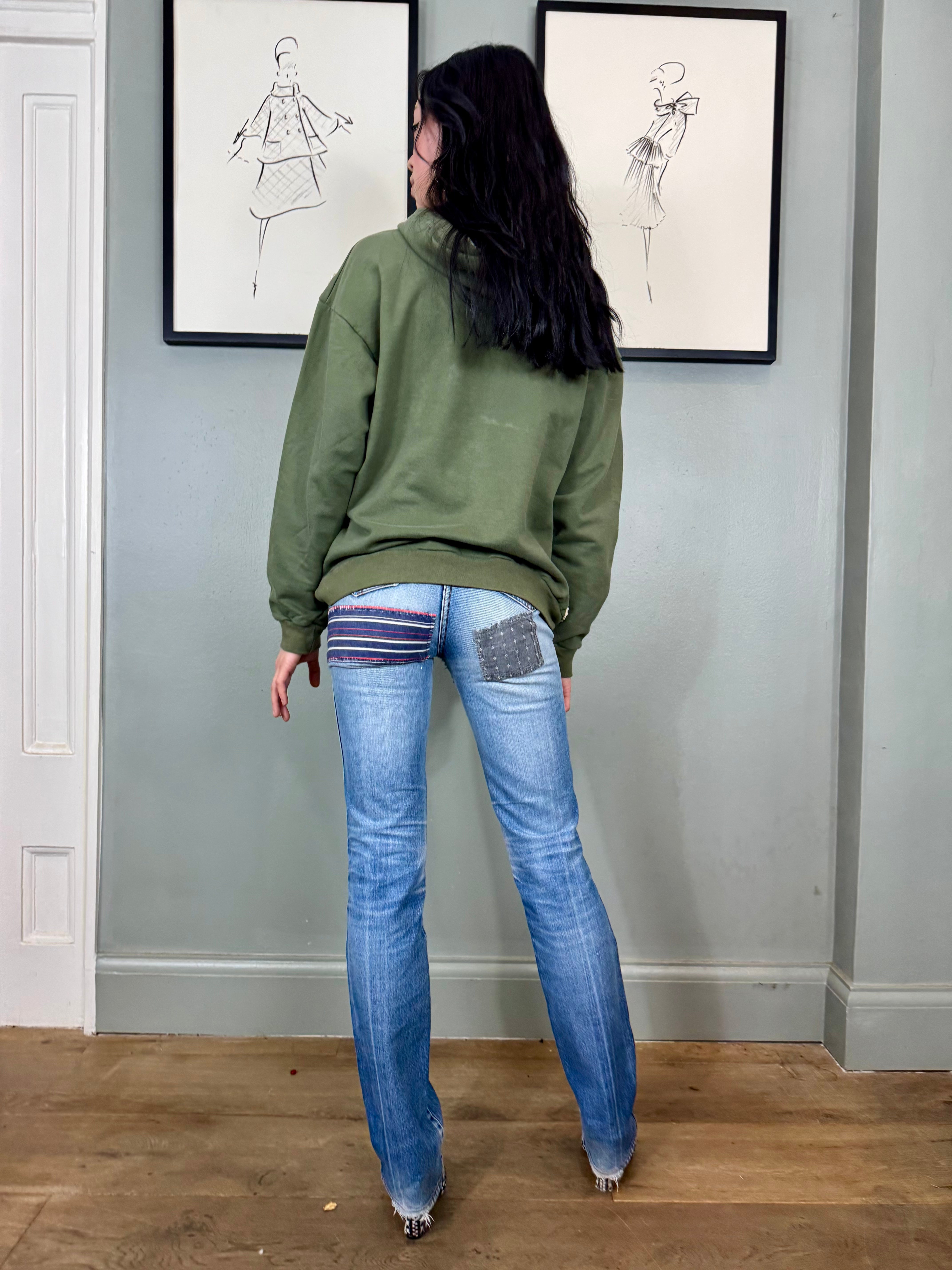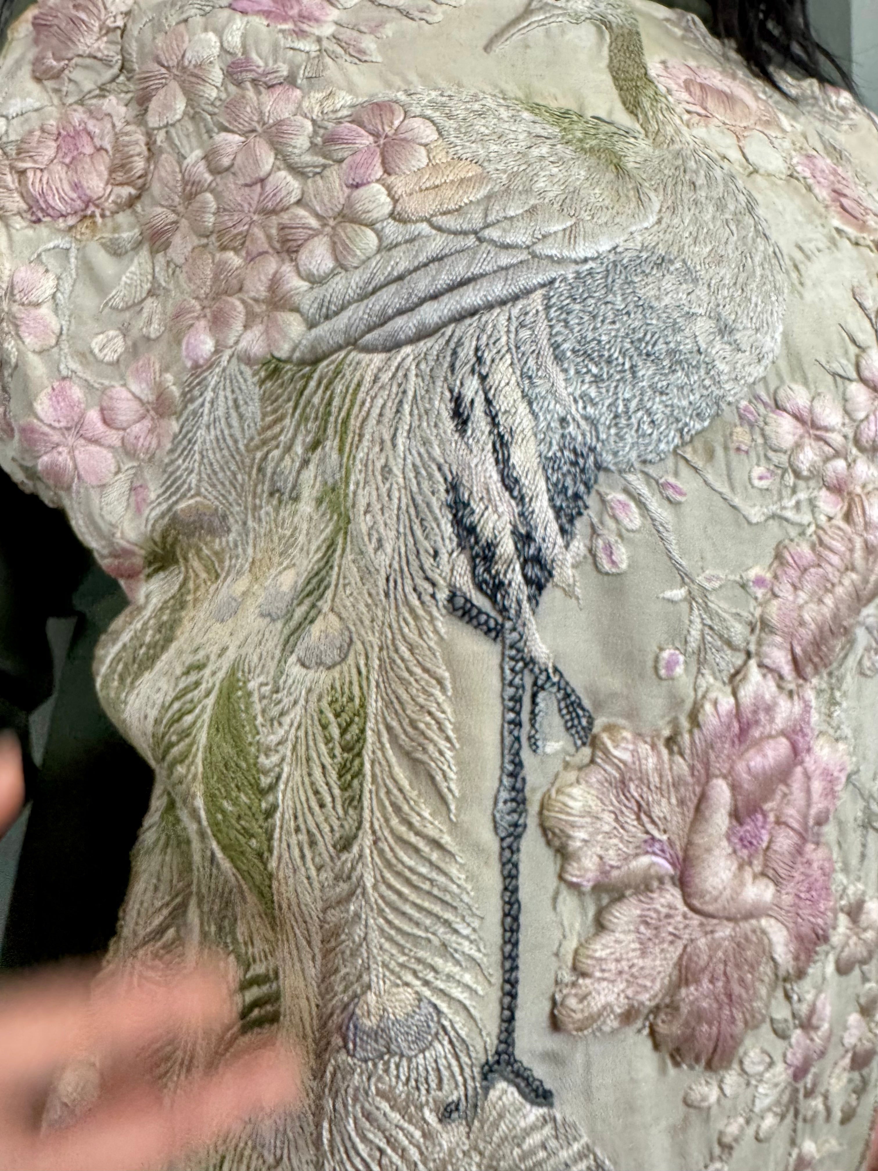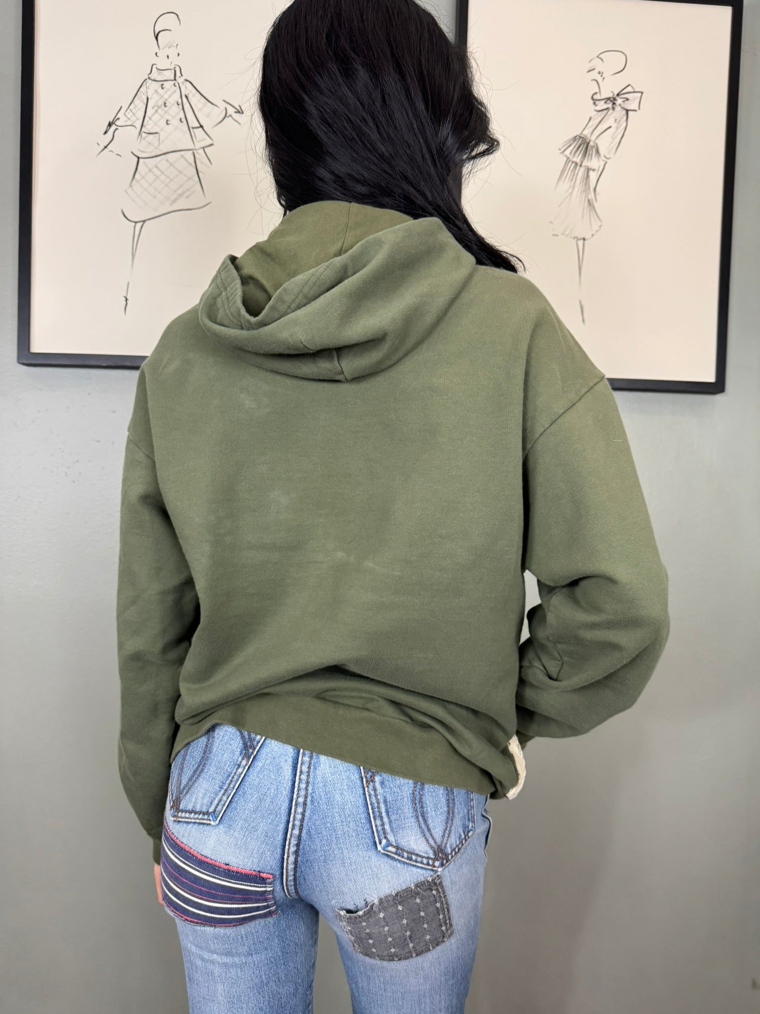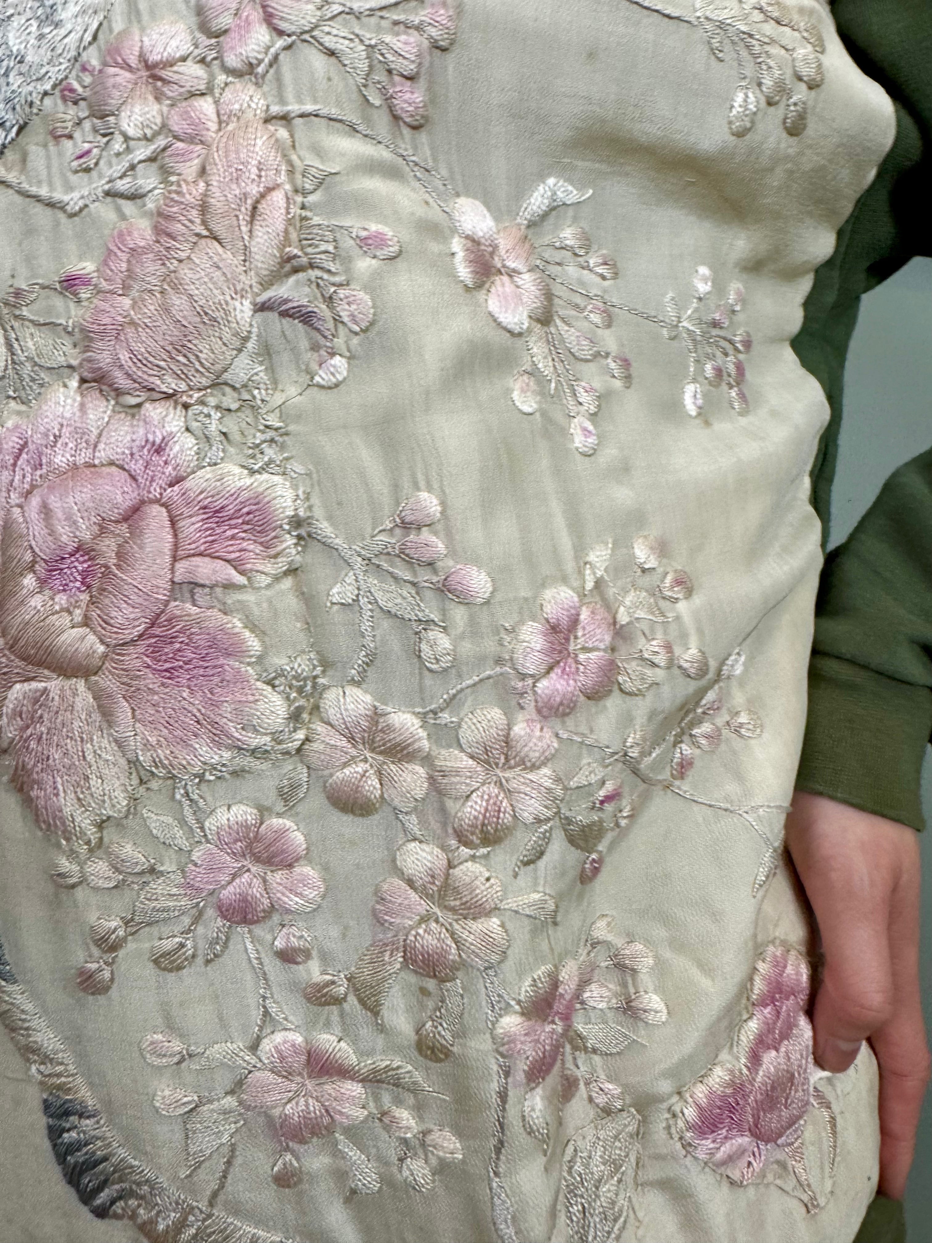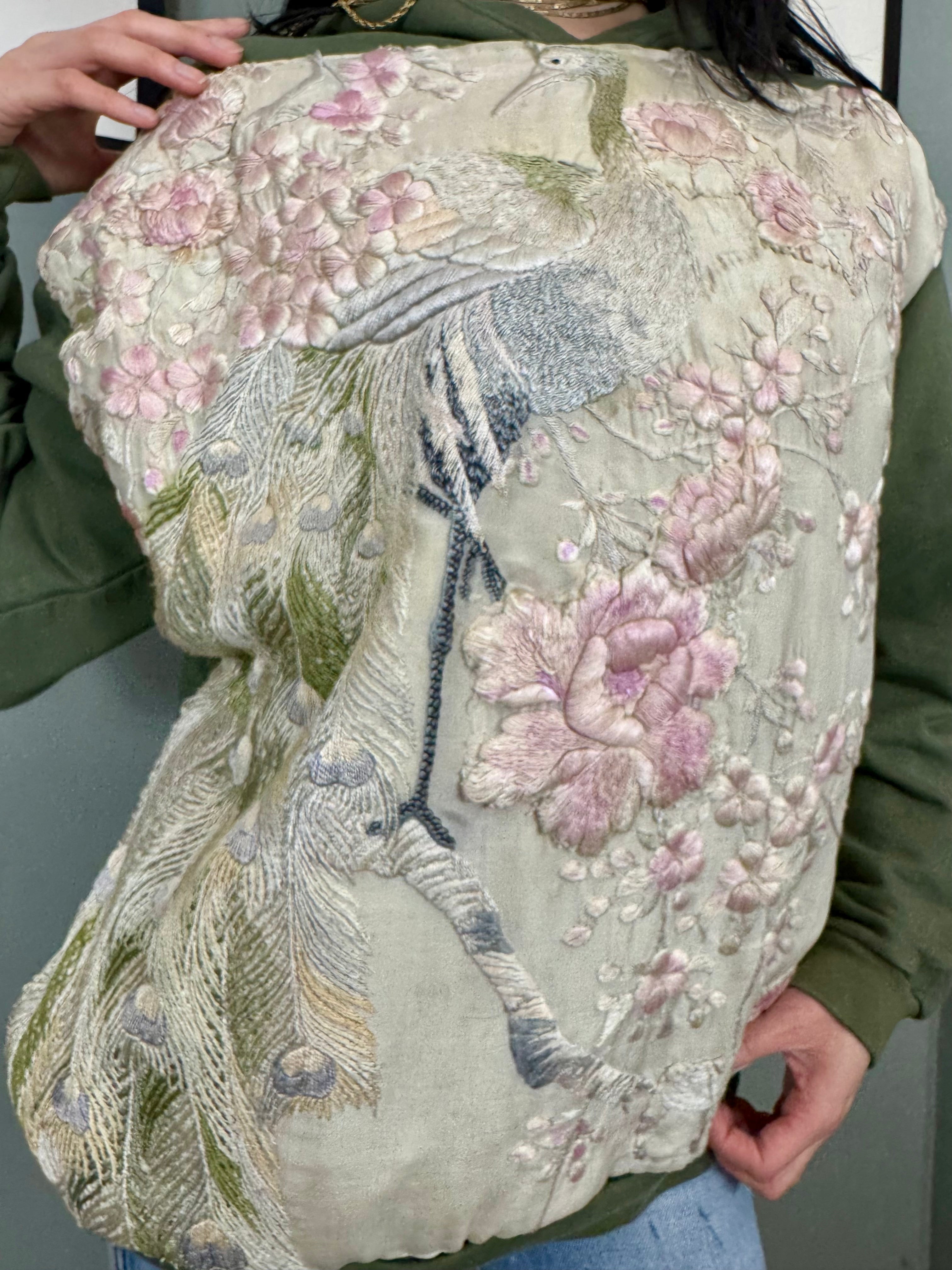 Expertly crafted with unique vintage details, the Sestra hoodie sweatshirt combines timeless style with comfortable design. The one-off piece boasts a delicate embroidered 30s silk front adorned with beautiful florals, while the hood and long sleeves add extra warmth and coverage.