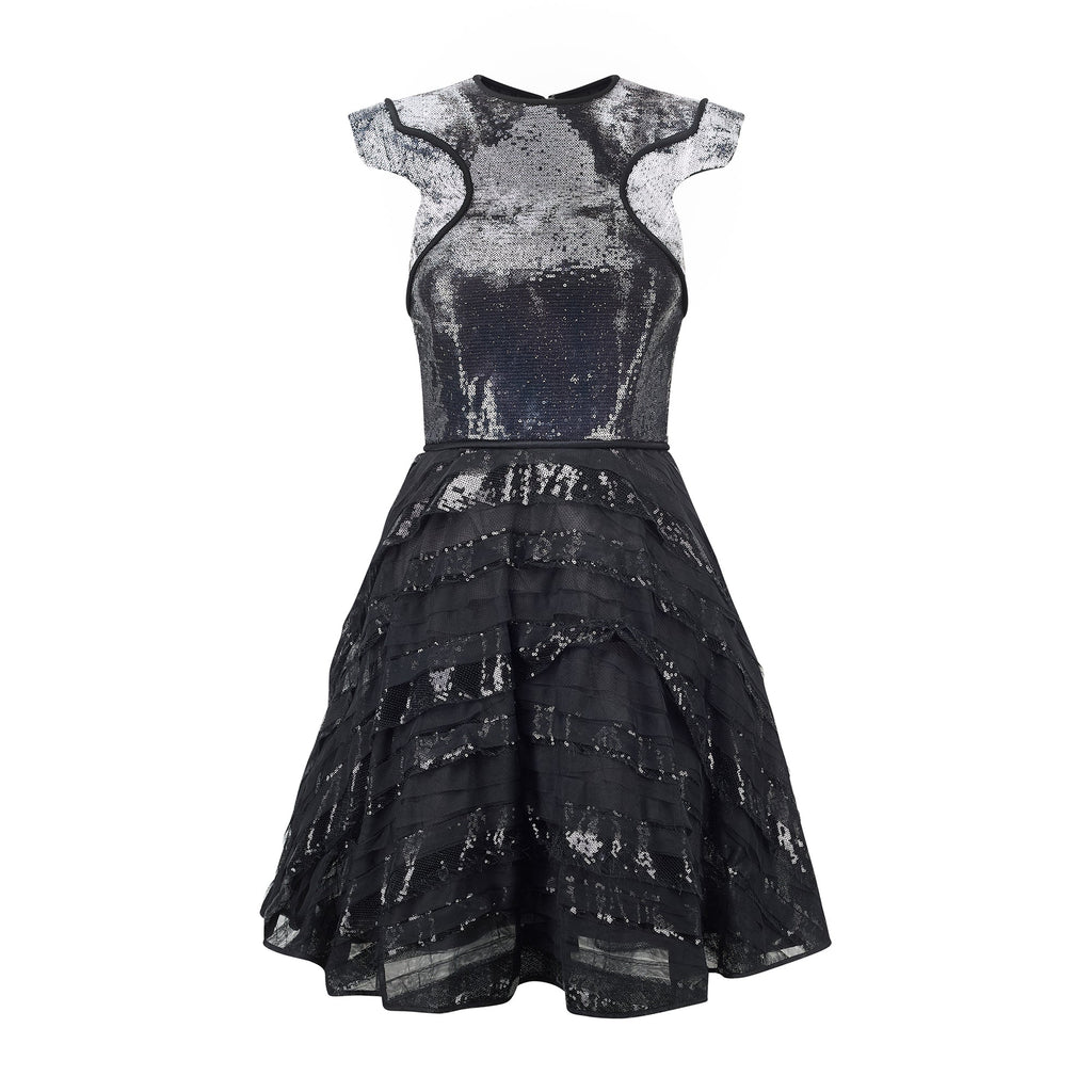 Y2K David Fielden Monochrome Sequin and Tulle Dress