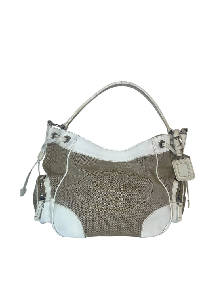 Vintage Prada Canvas & Leather Hobo Shoulder Bag (2003–2004) – With Dust Bag