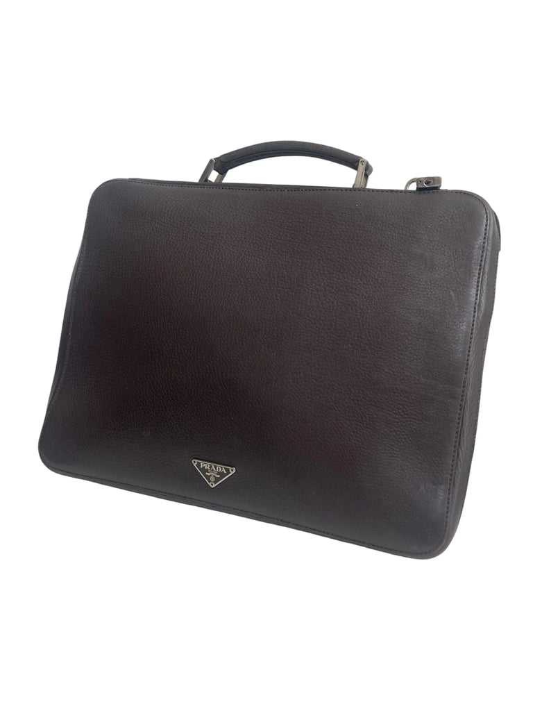 🤎 Prada Brown Leather Zip-Around Document & Laptop Bag – Unisex 🤎