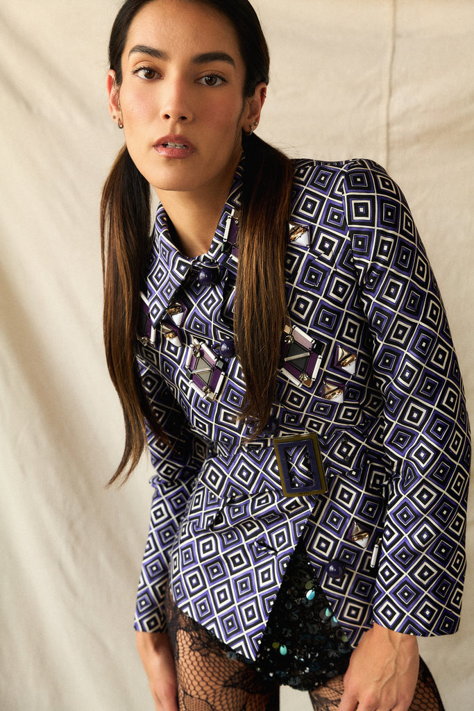Prada F/W 2012 Geometric Print Crystal & Plexi Embellished Belted Jacket-Collector piece