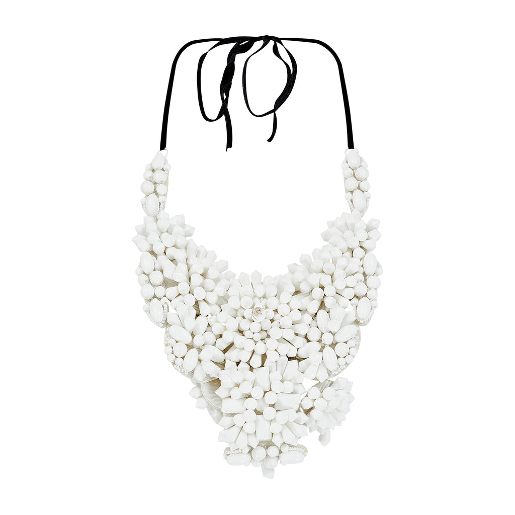 2003 Runway Documented Prada White Beaded Bib Necklace