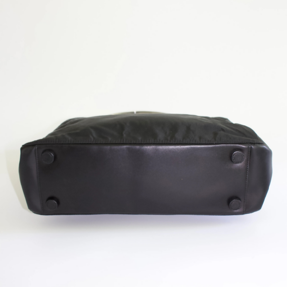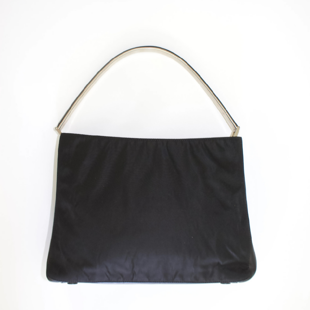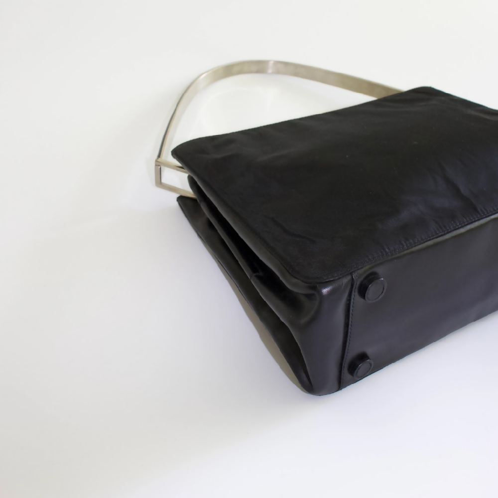PRADA FW 1998 BLACK NYLON SHOULDER BAG WITH METAL HANDLE